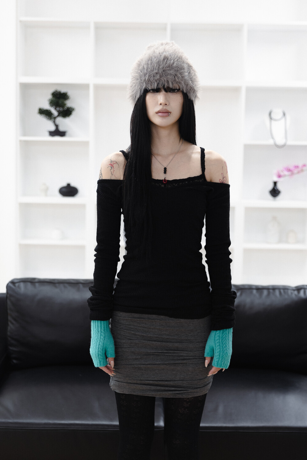 - 골지 소재감으로 몸에 맞게 유연하게 늘어남