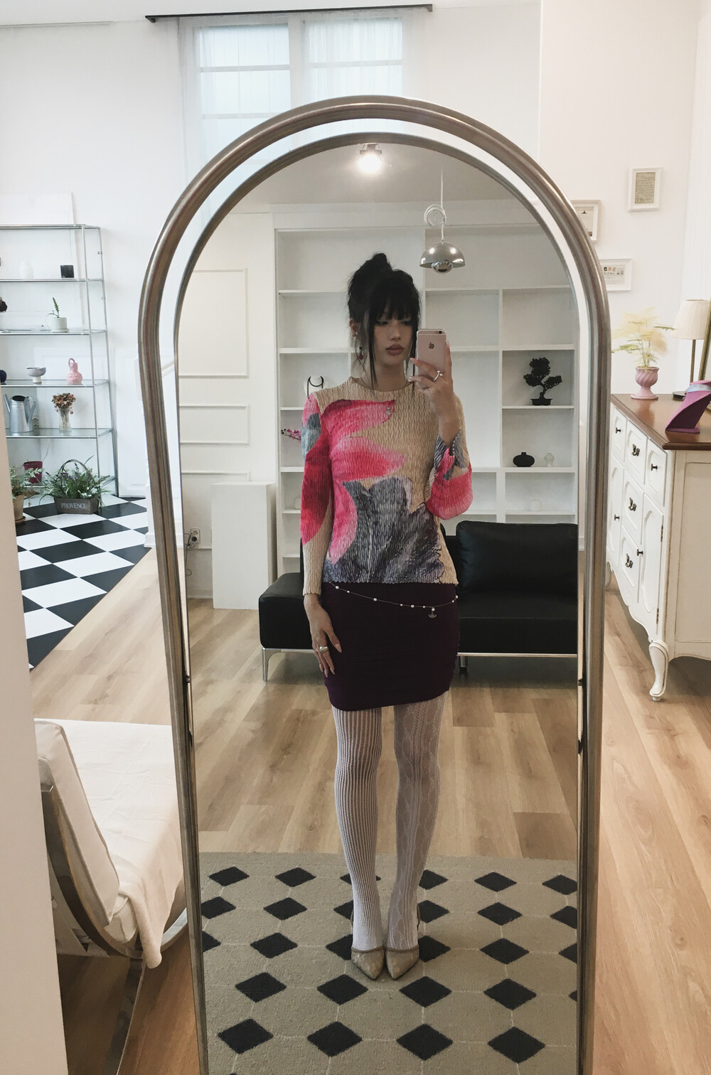 하루[春] - Color stocking (3color) RED 색상과 레이어드 착용