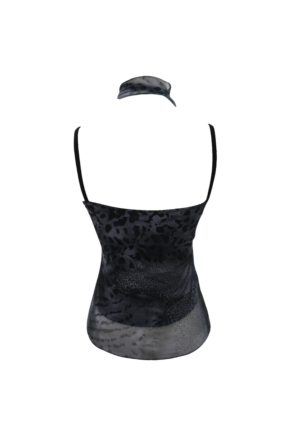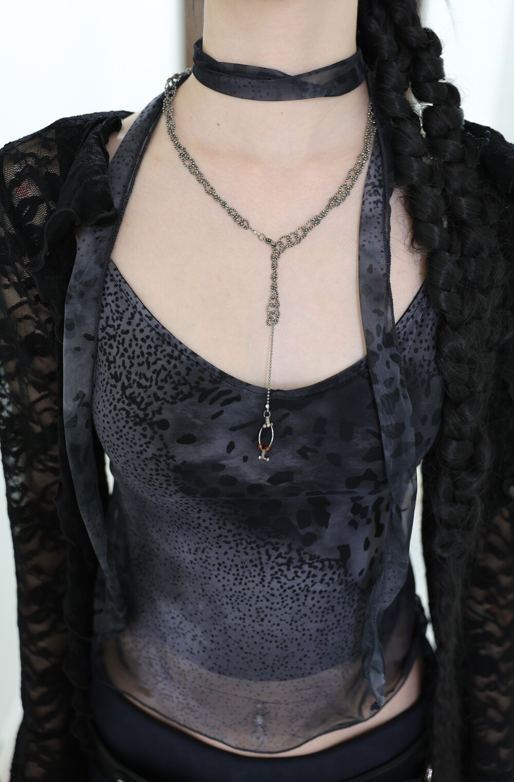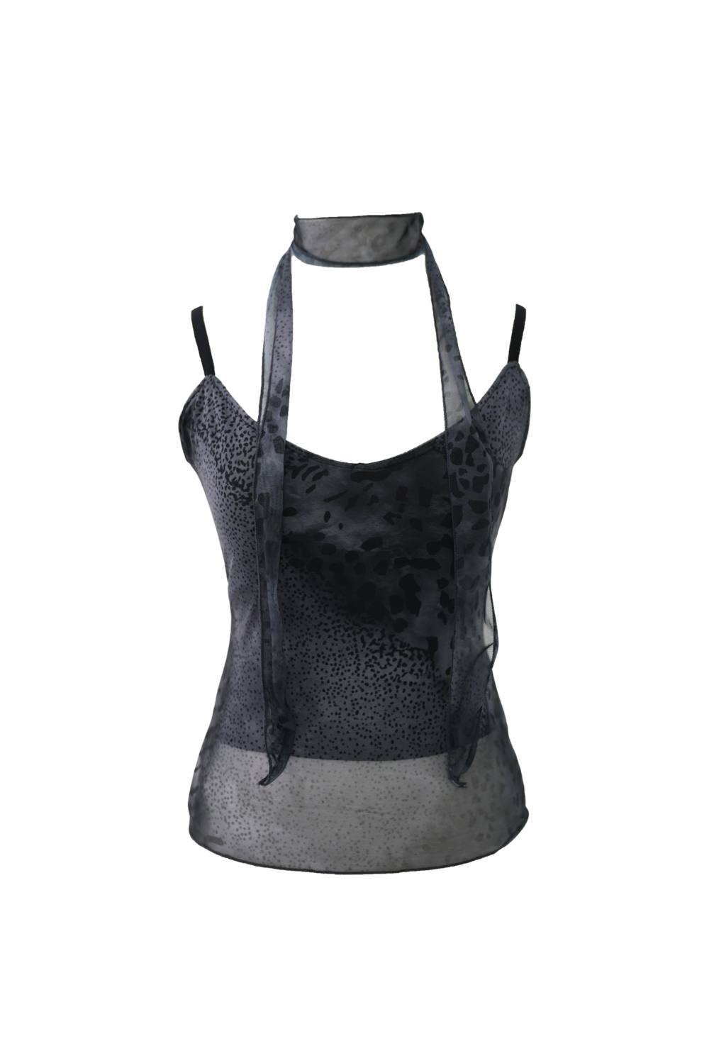 [Pink orchid house] See through leopard sleeveless (scarf set) (Black)