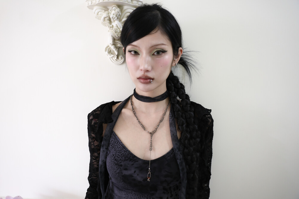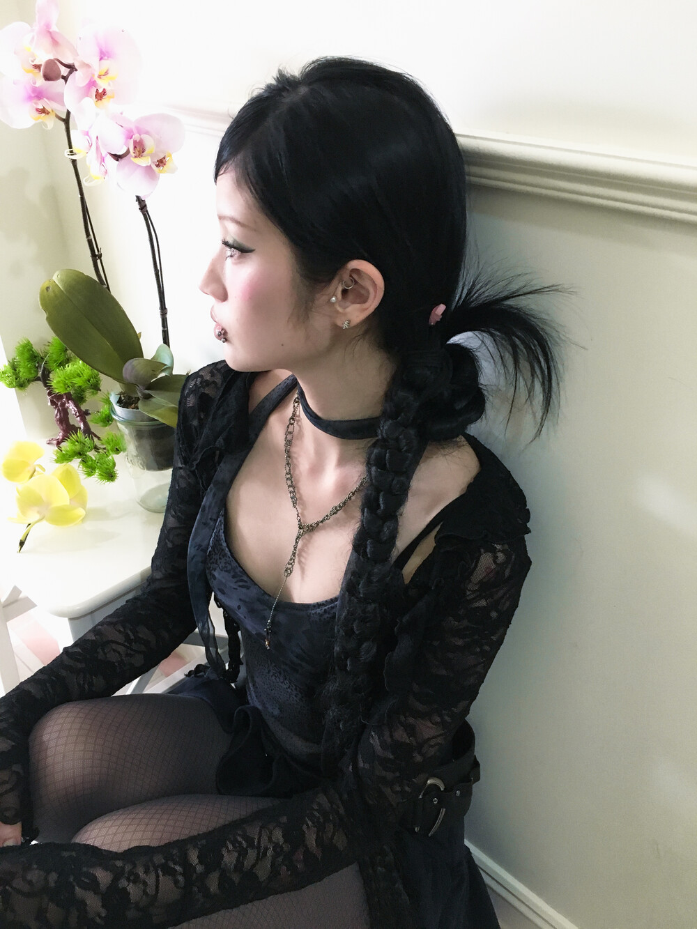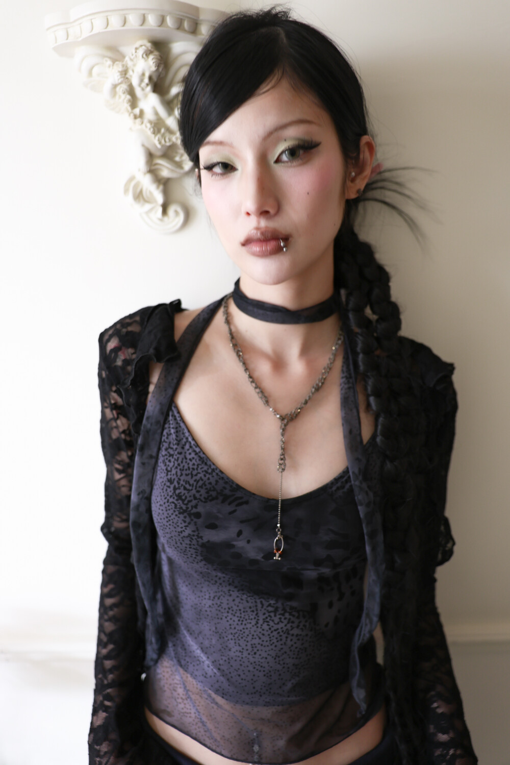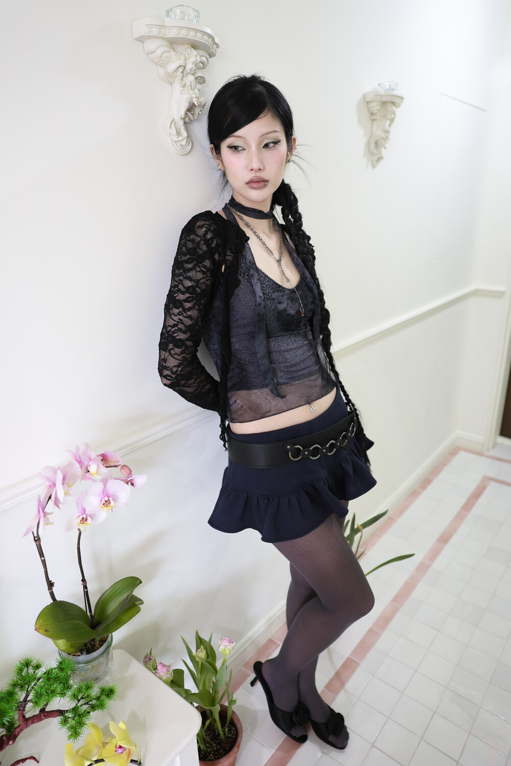 [Pink orchid house] See through leopard sleeveless (scarf set) (Black)