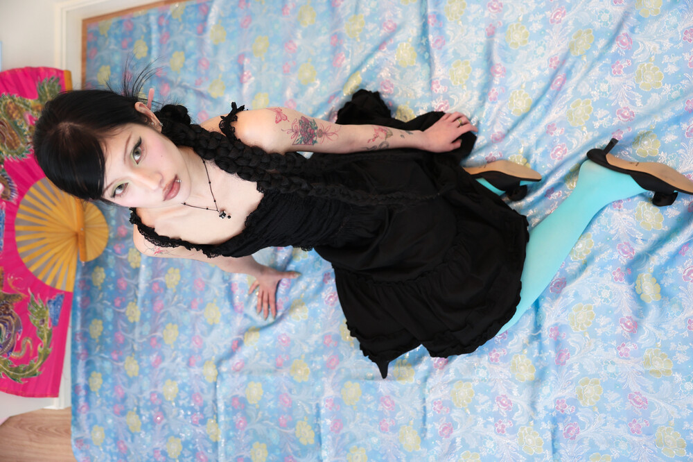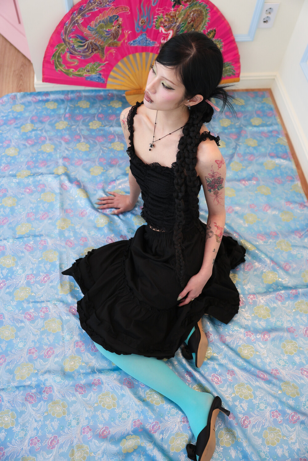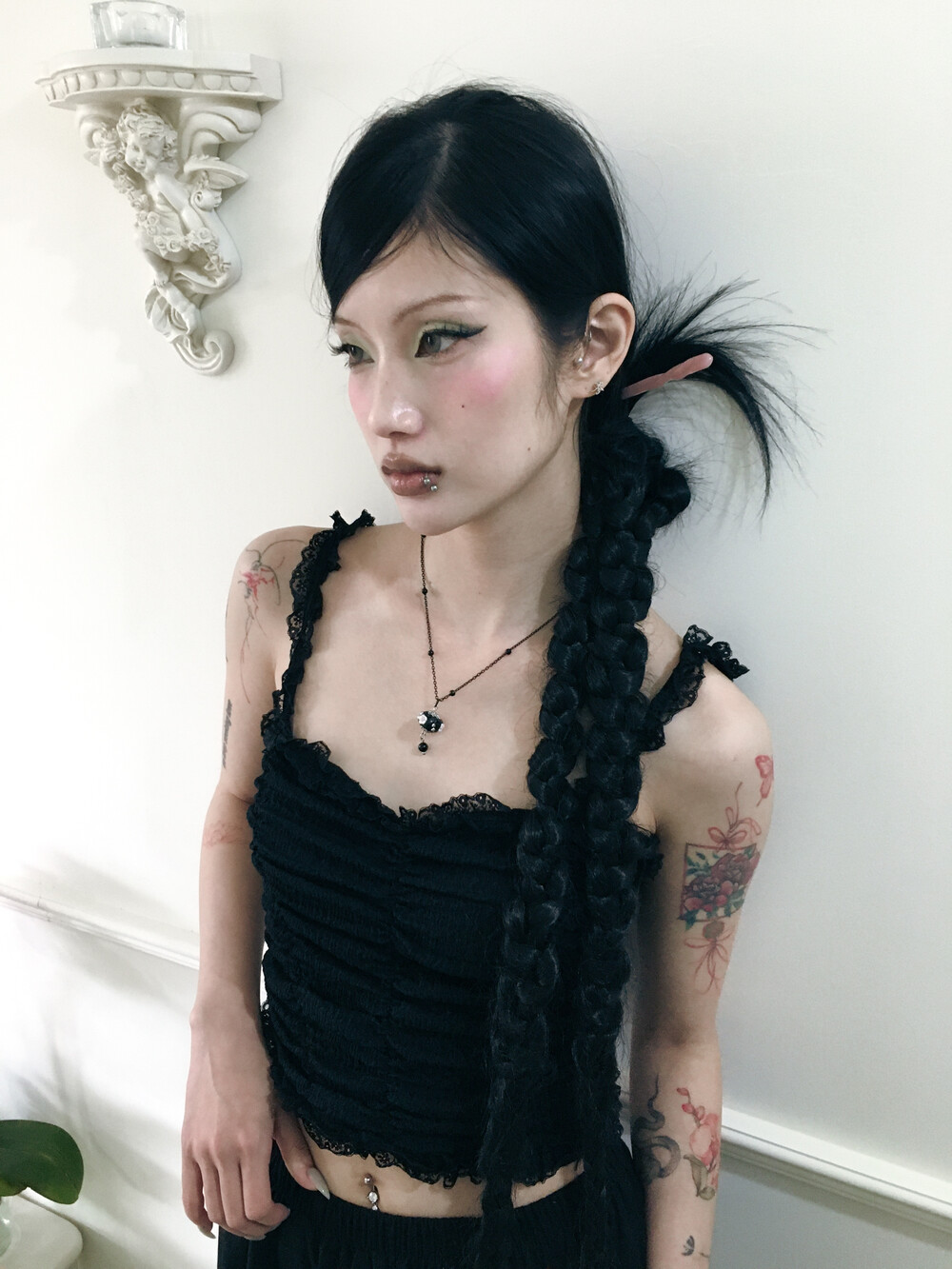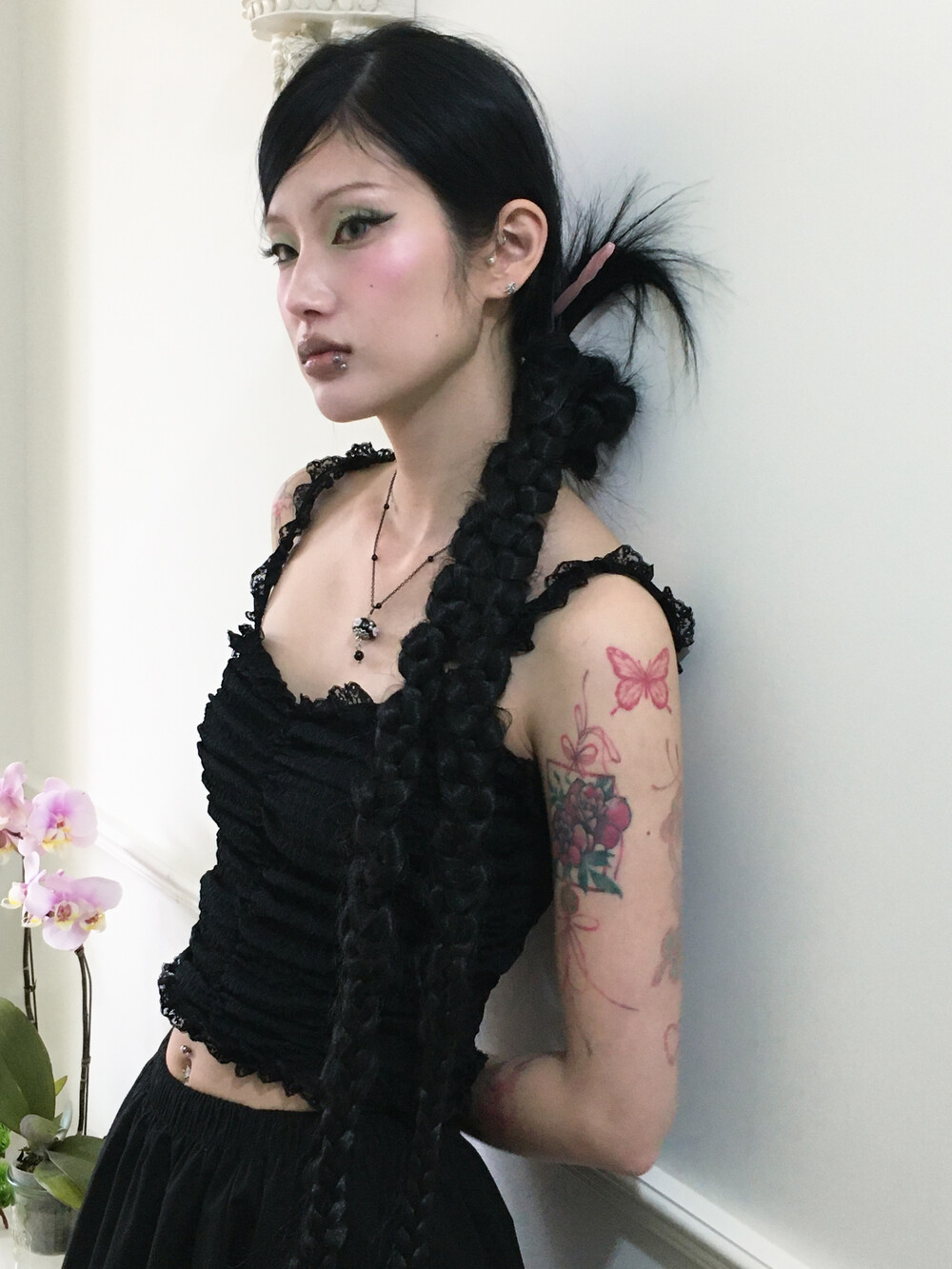[Pink orchid house] Shirring cancan midi skirt (2color) (Black)