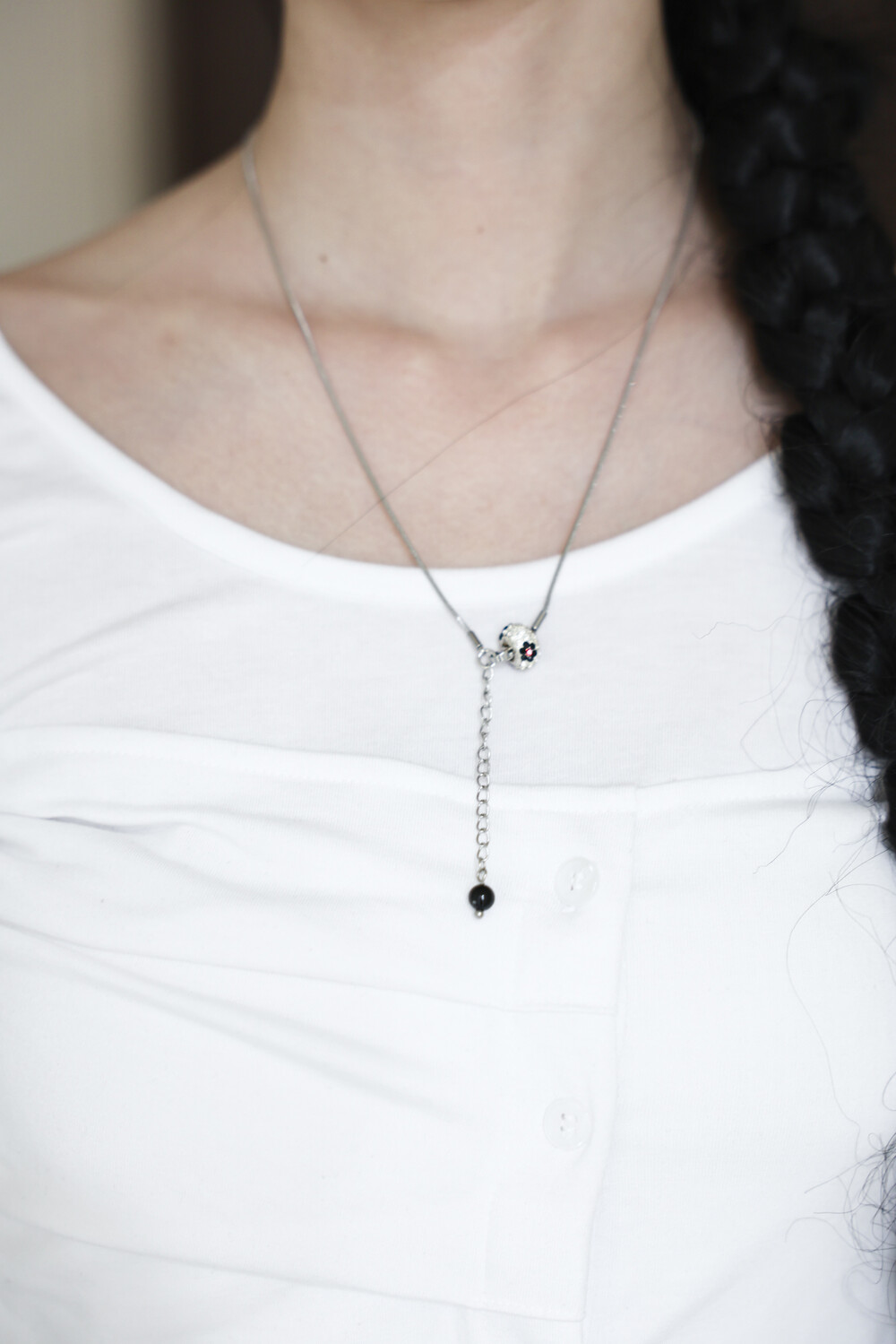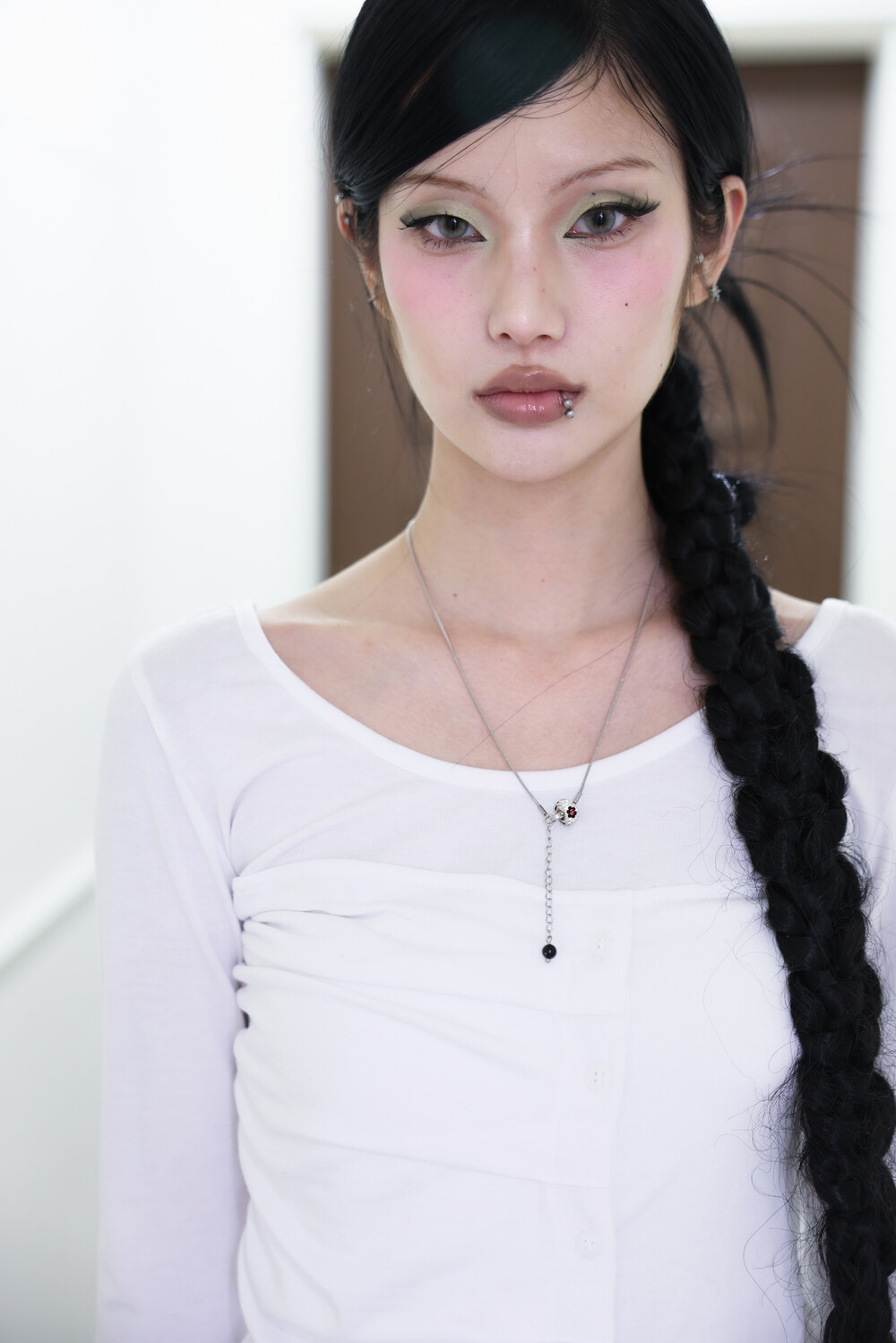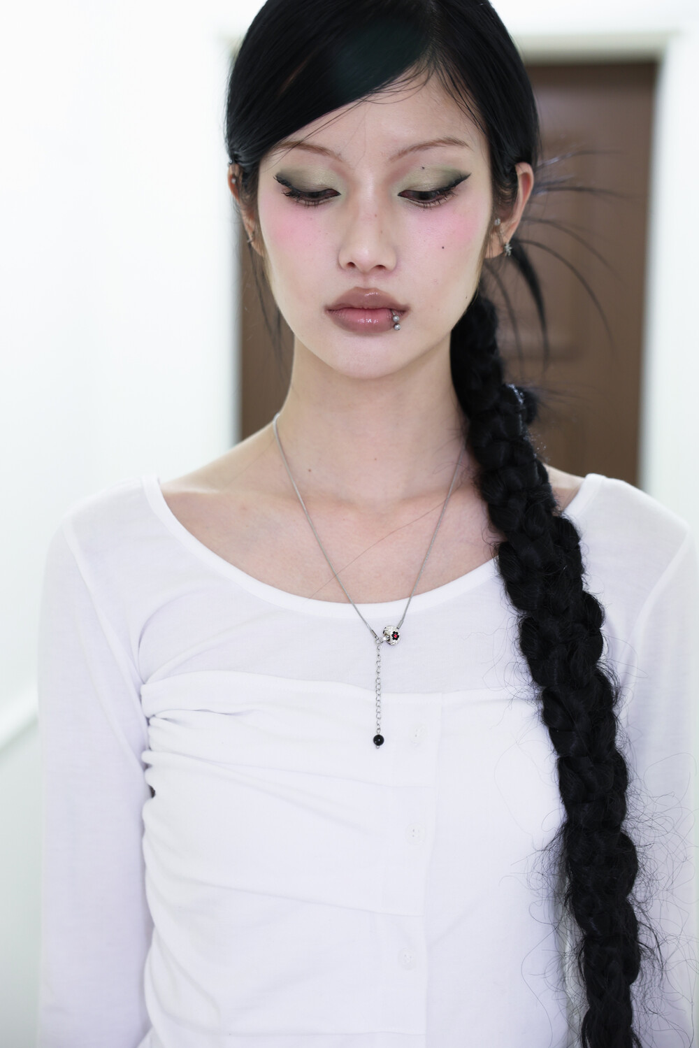 [Pink orchid house] Unbal shirring button T (3color) (White)