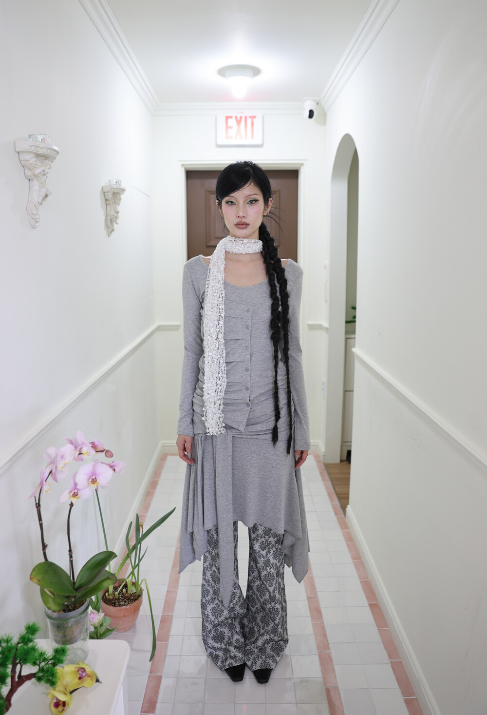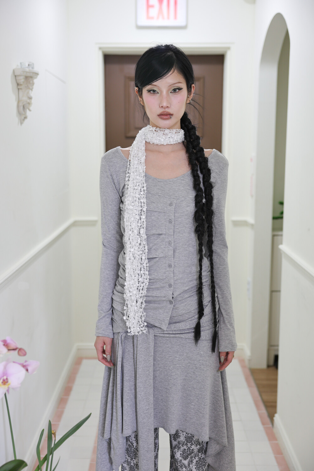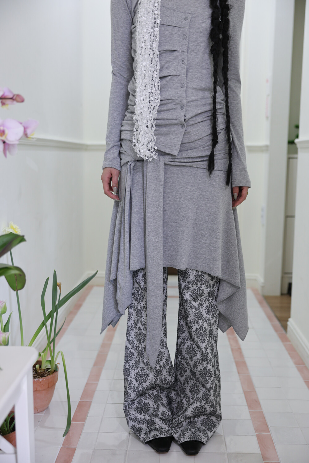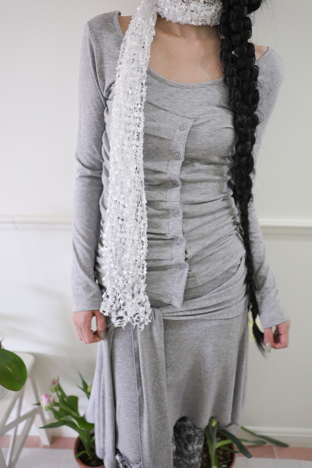 [Pink orchid house] Unbal shirring button T (3color) (Gray)