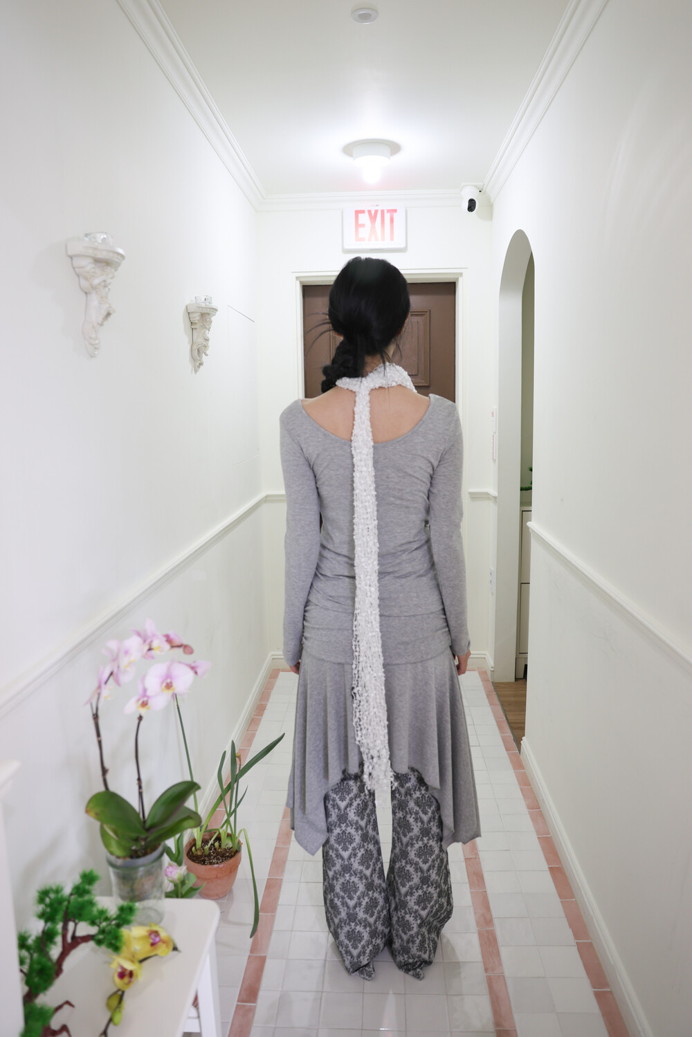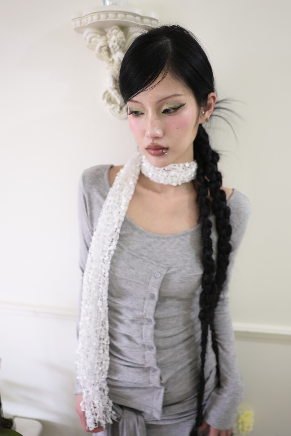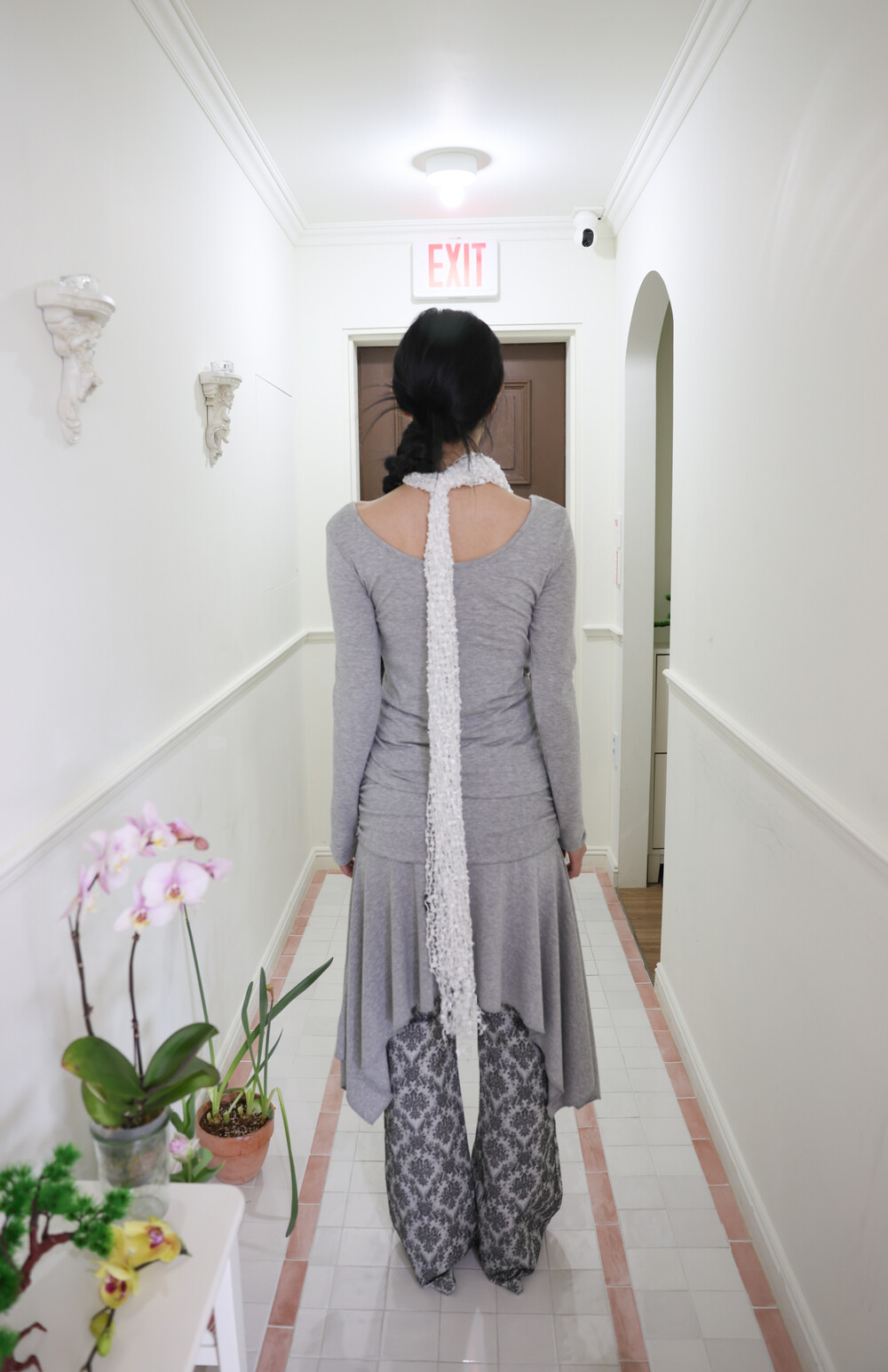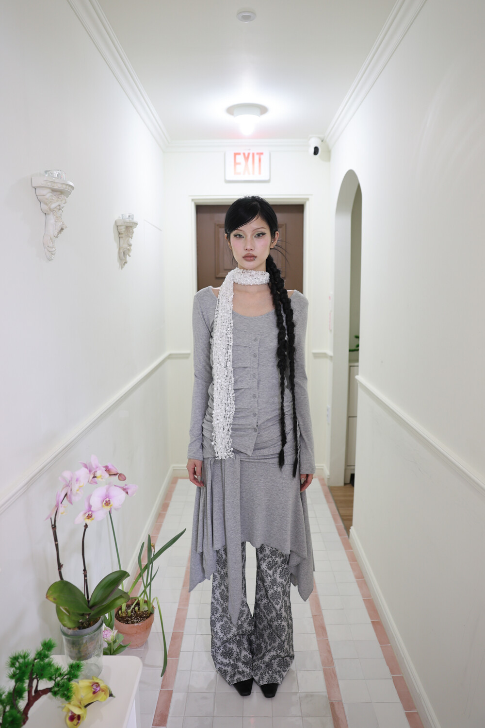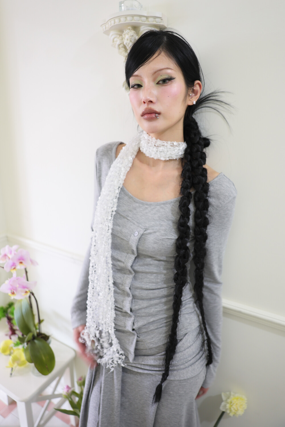 [Pink orchid house] Unbal shirring button T (3color) (Gray)