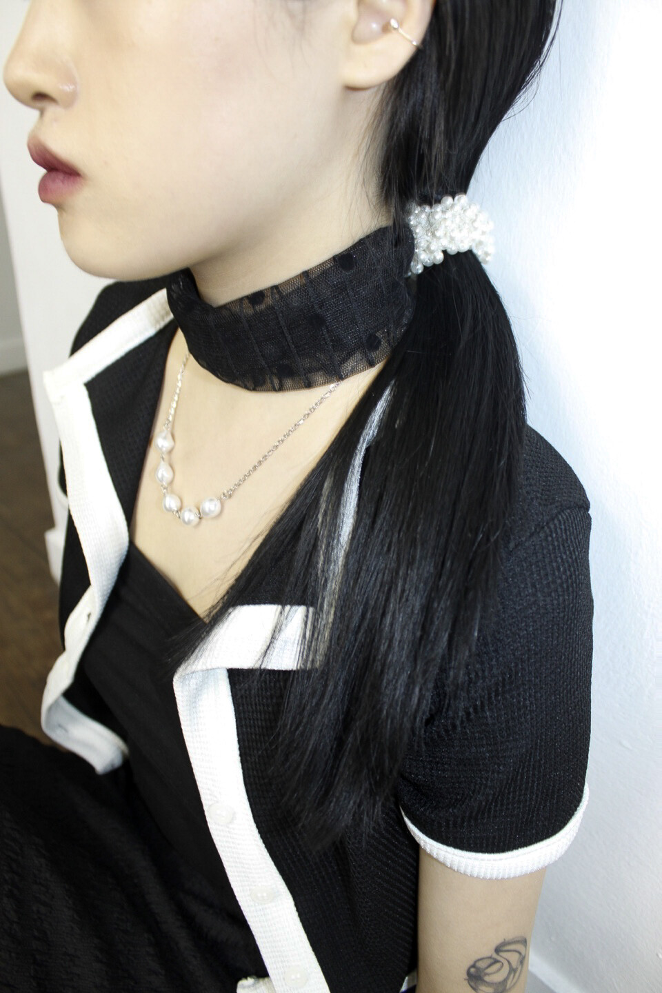 은은한 진주와 실버 체인이 조화를 이룬 써지컬 목걸이 입니다.