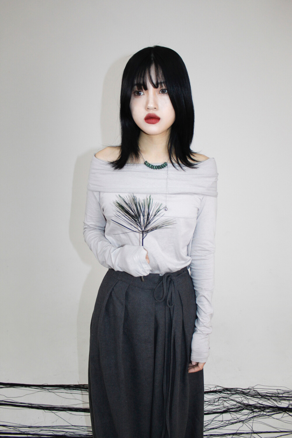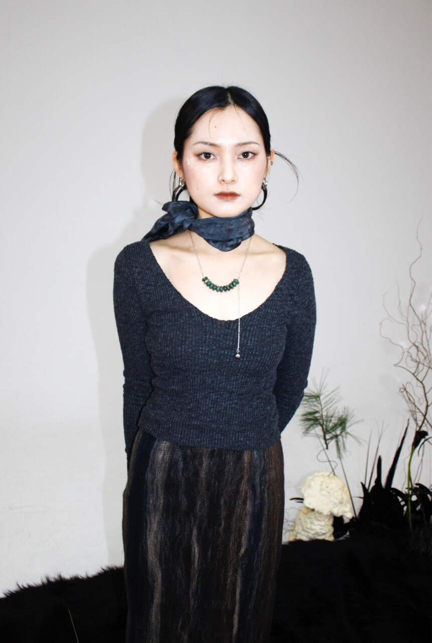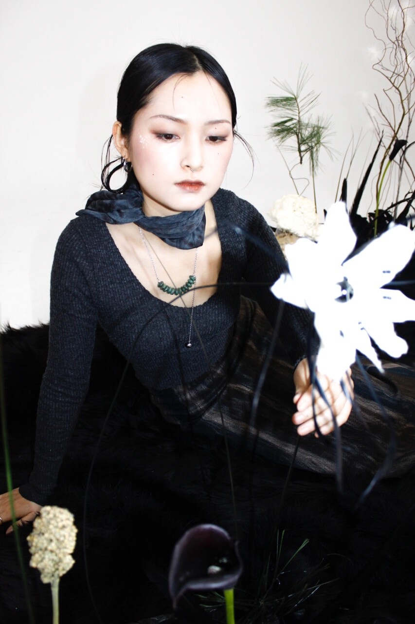 천연 옥이 하나의 줄로 연결된 단아하면서도 유니크한 무드의 만년청 necklace입니다.