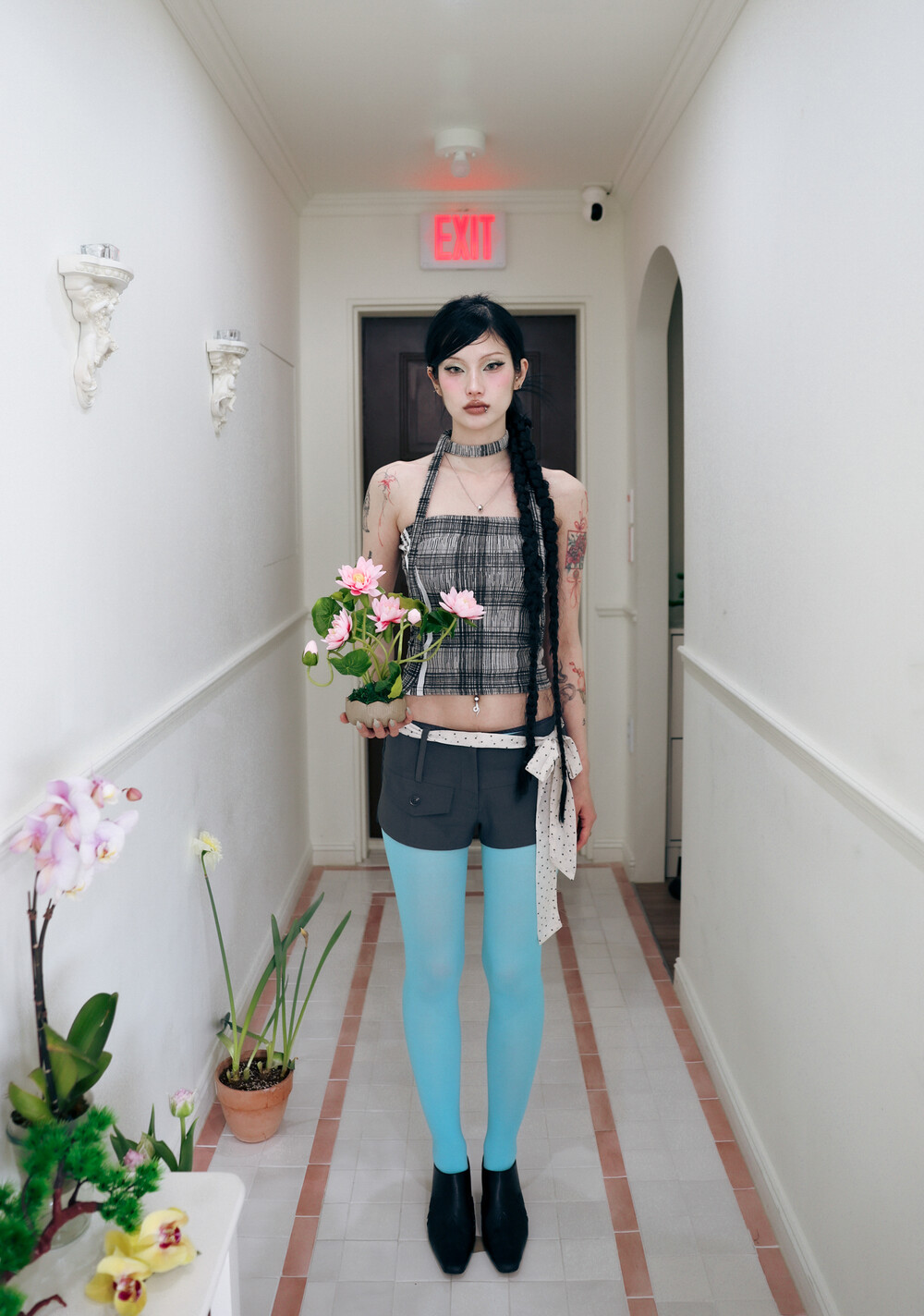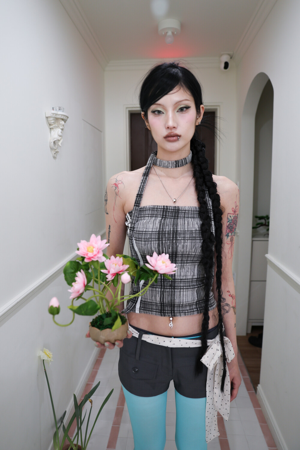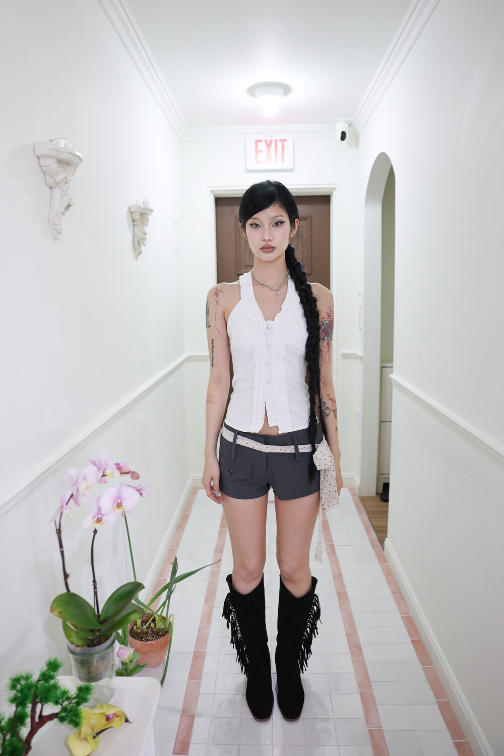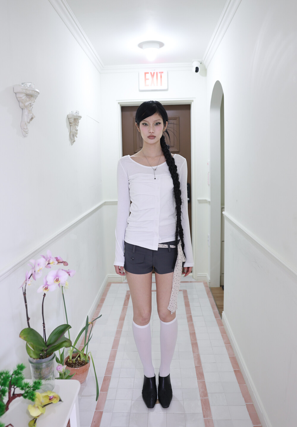 [Pink orchid house] Dot belt shorts (3color) (Gray)