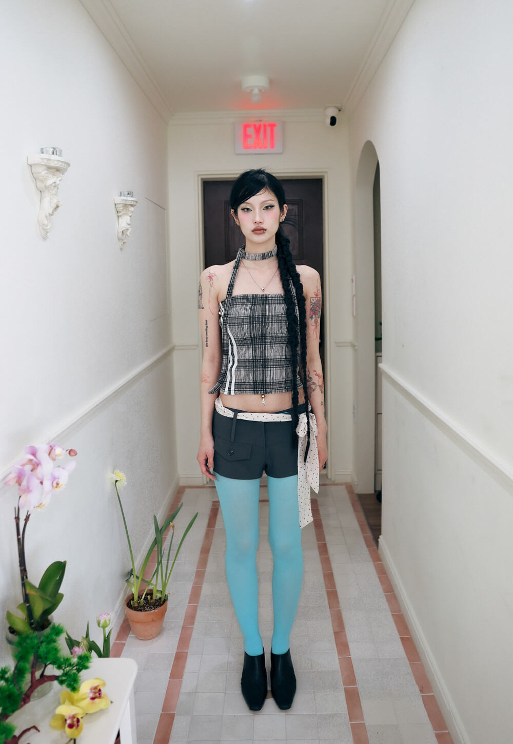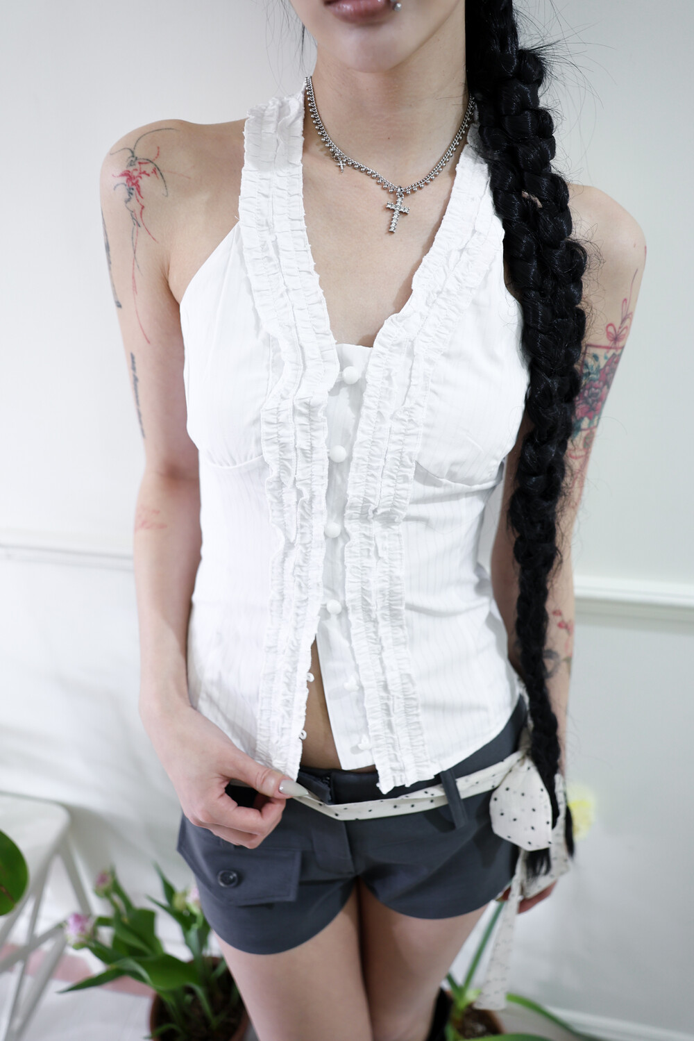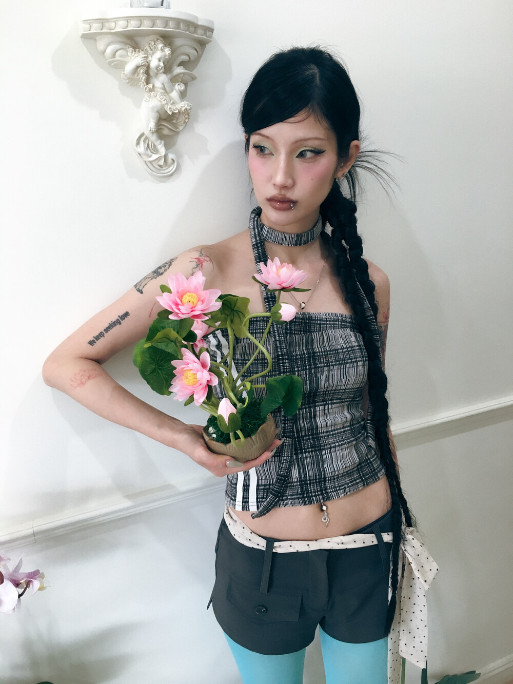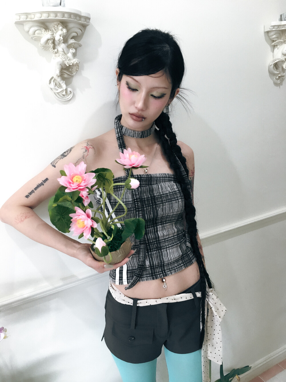 [Pink orchid house] Dot belt shorts (3color) (Gray)