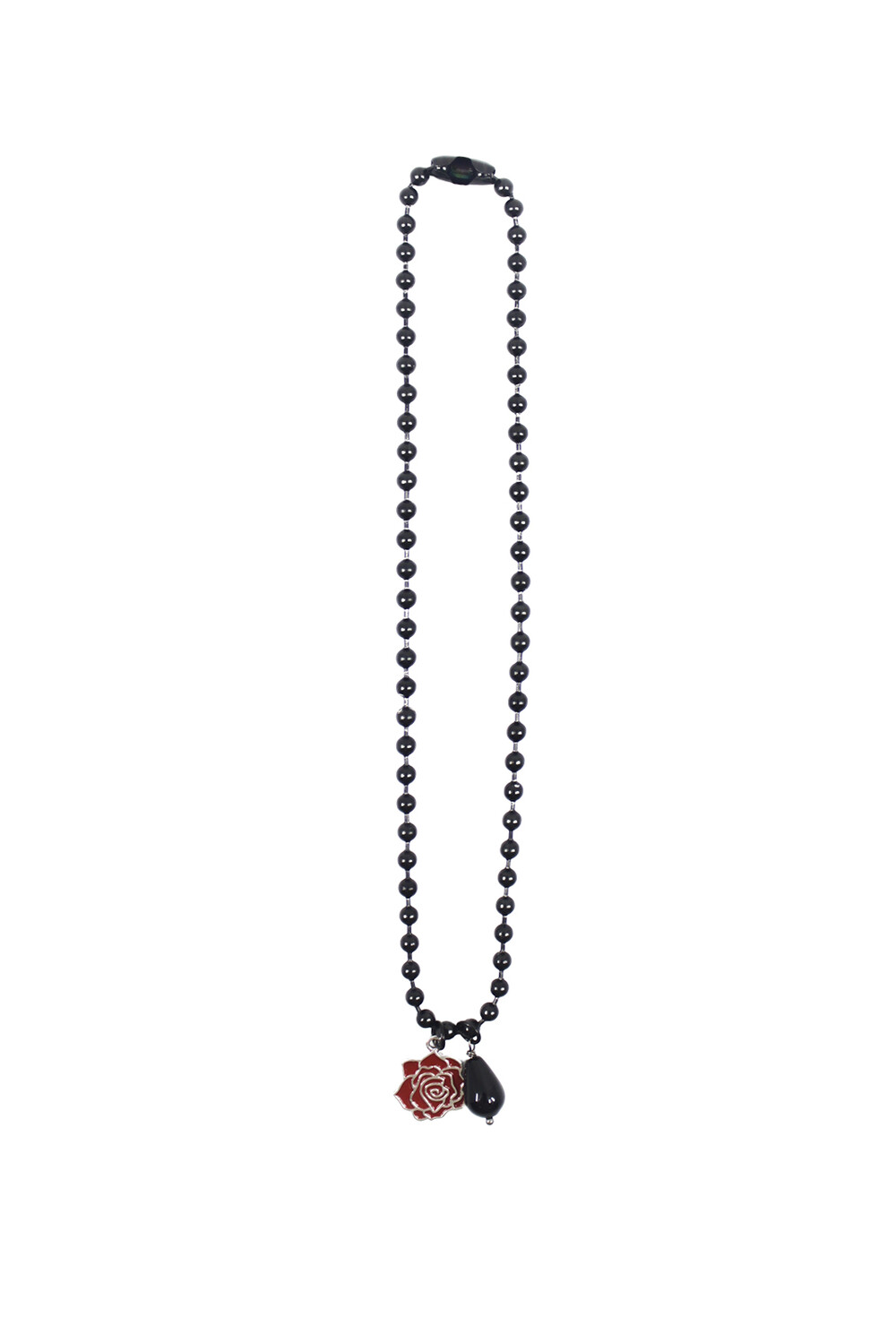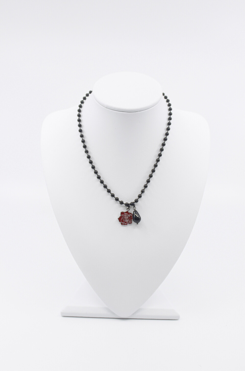 붉은 장미 펜던트와 검은 오닉스 펜던트의 조화가 매력적인 초커로