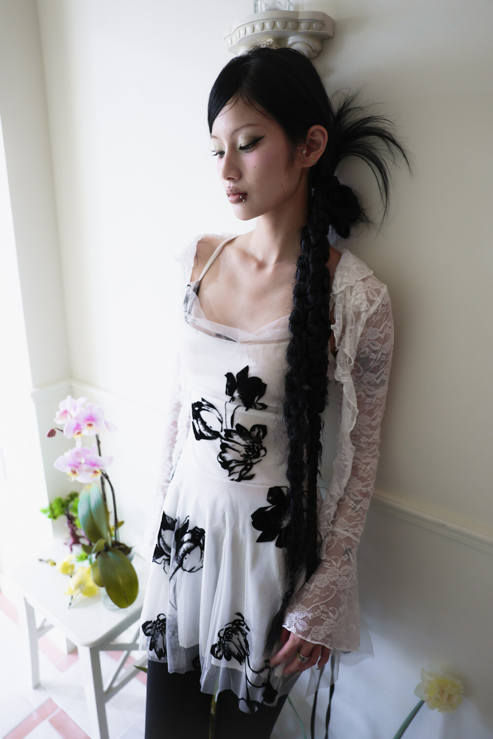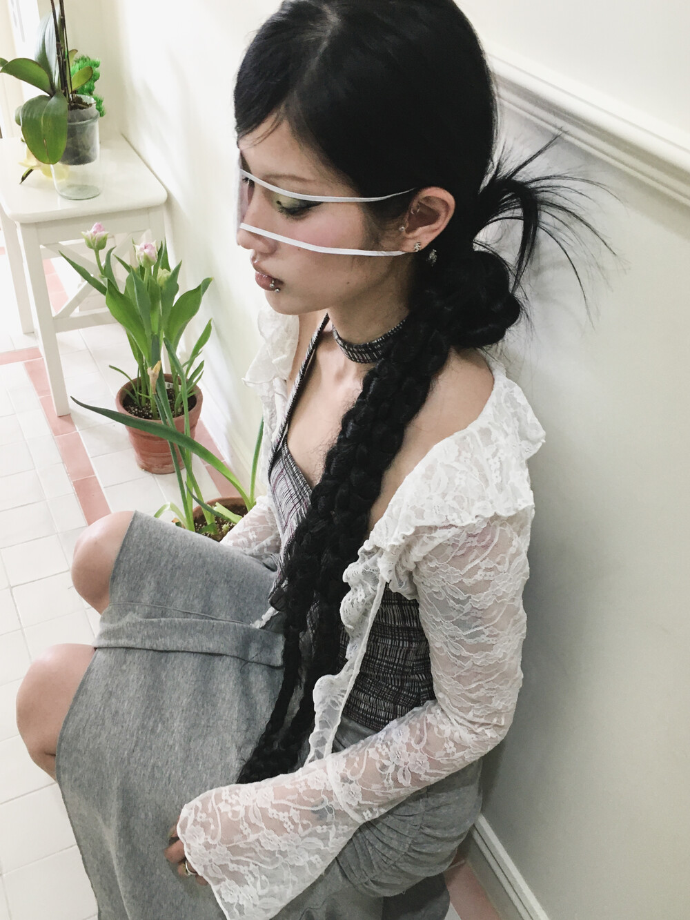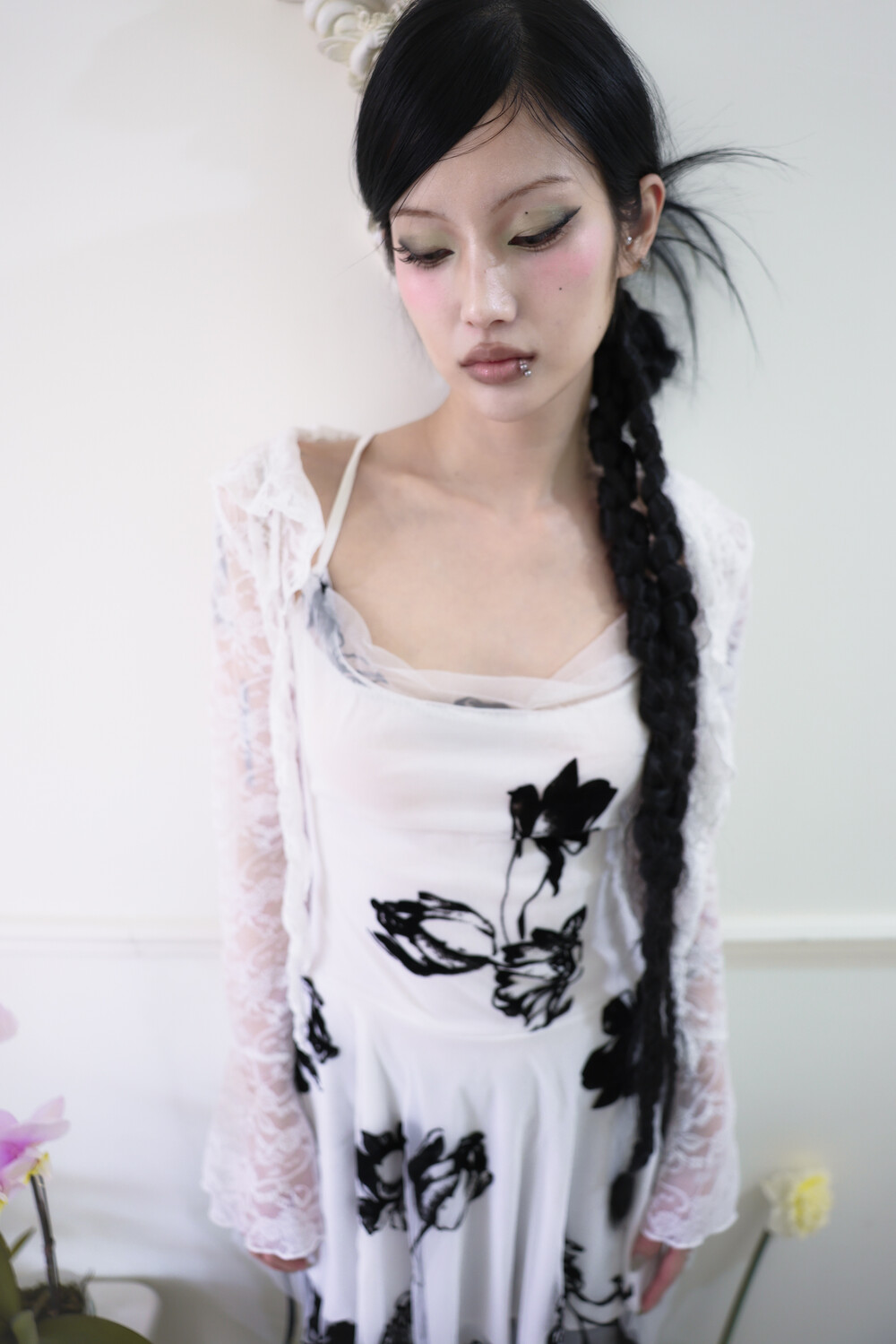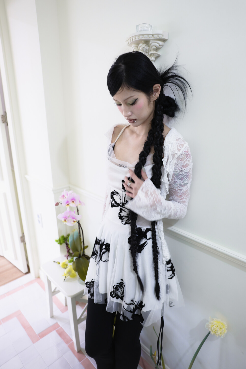 [Pink orchid house] Frill lace bolero (2color) (White)