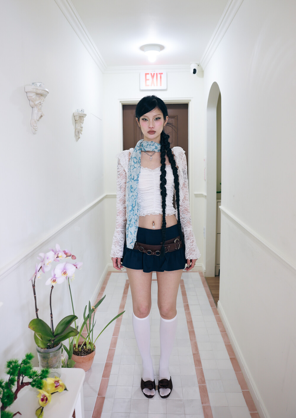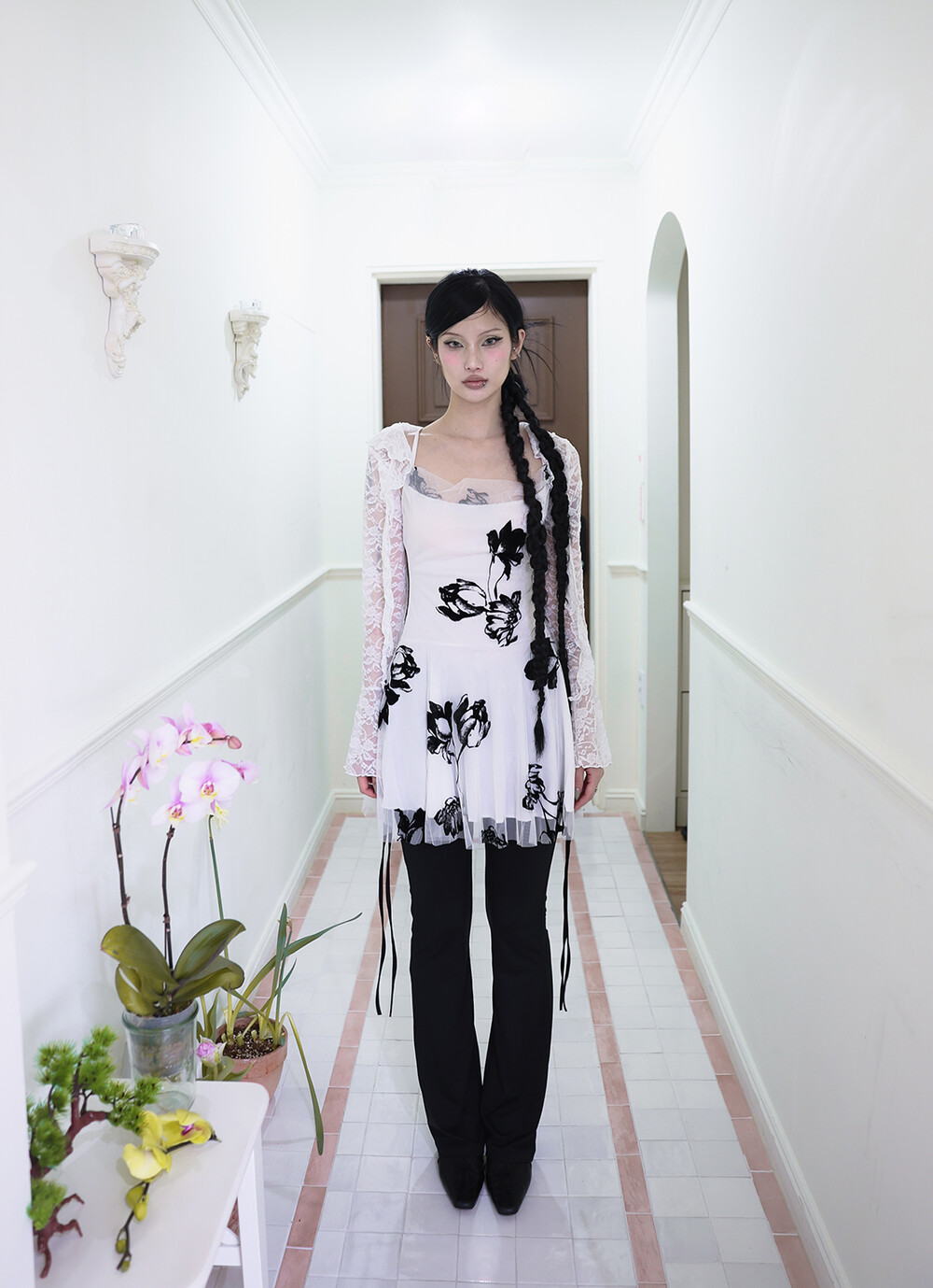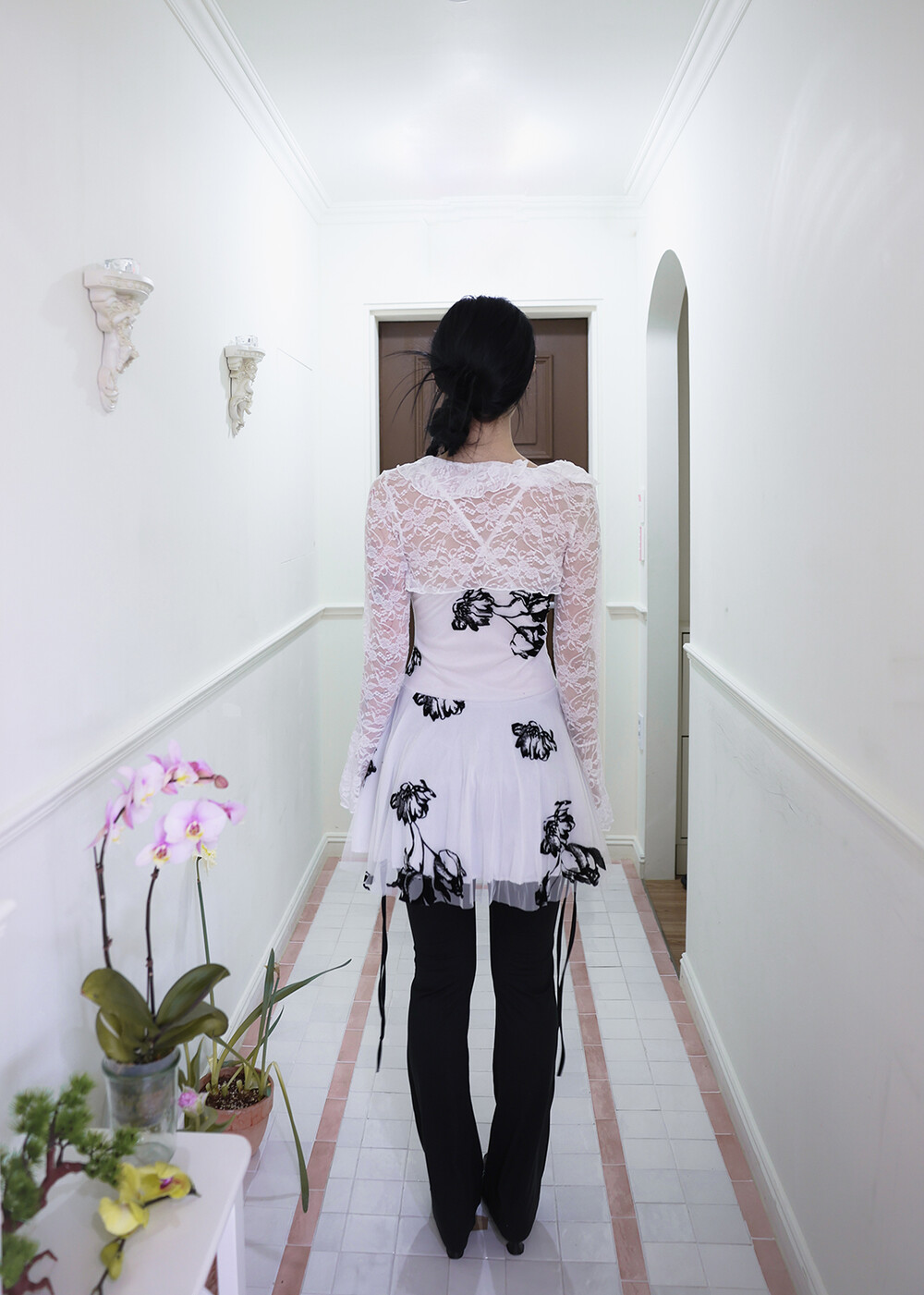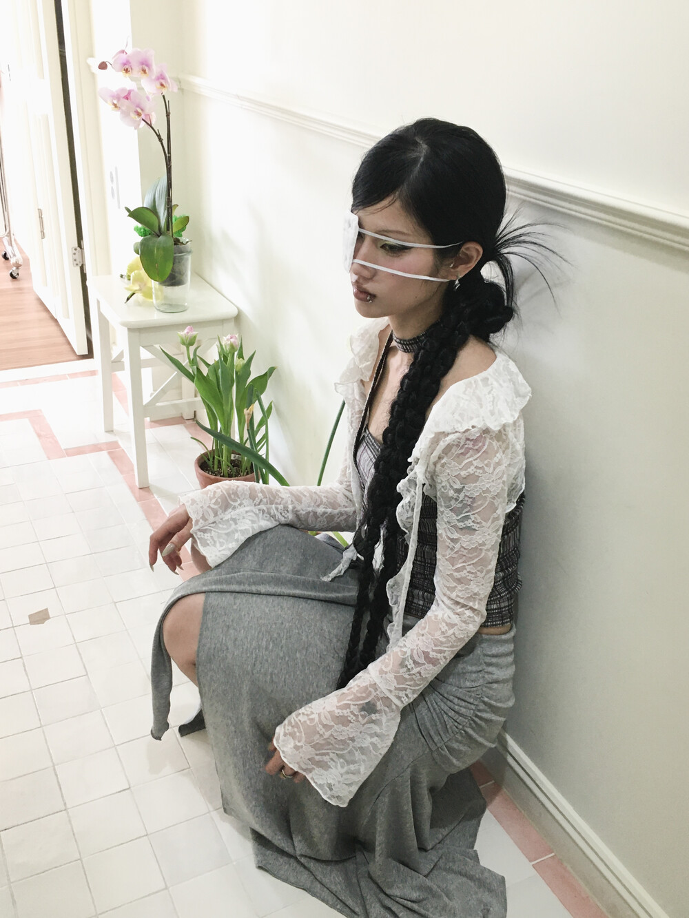 [Pink orchid house] Frill lace bolero (2color) (White)