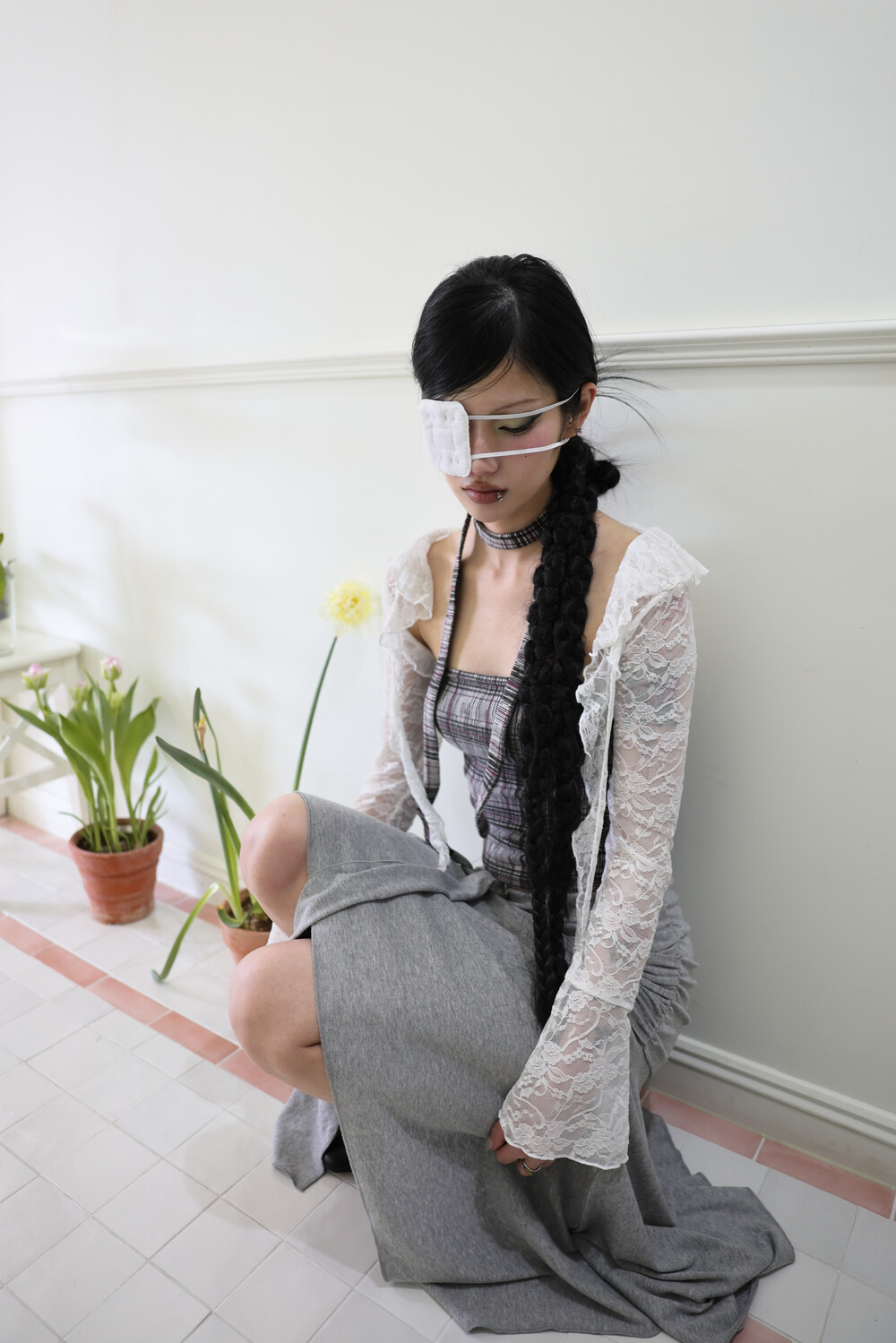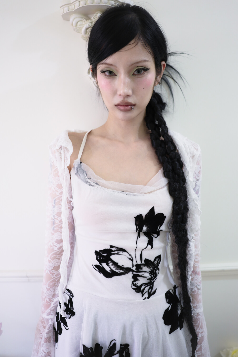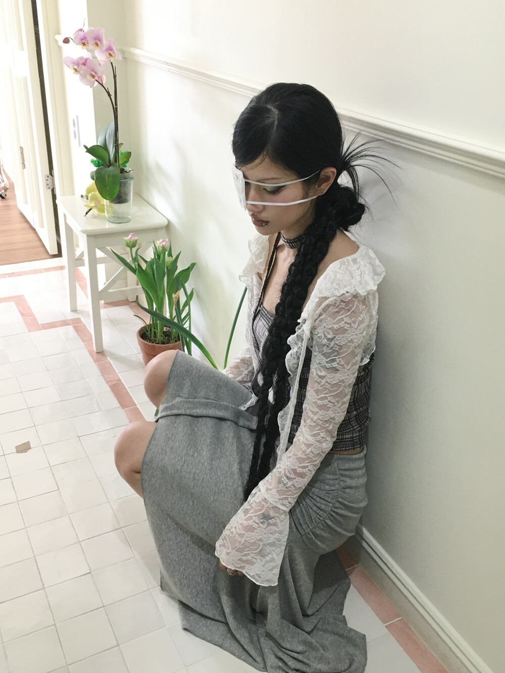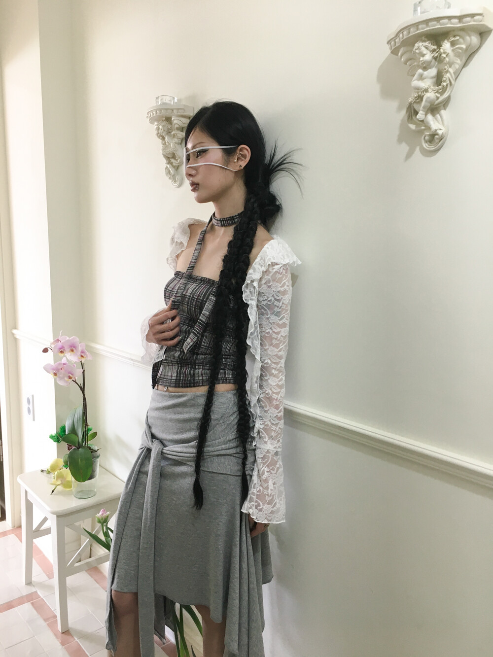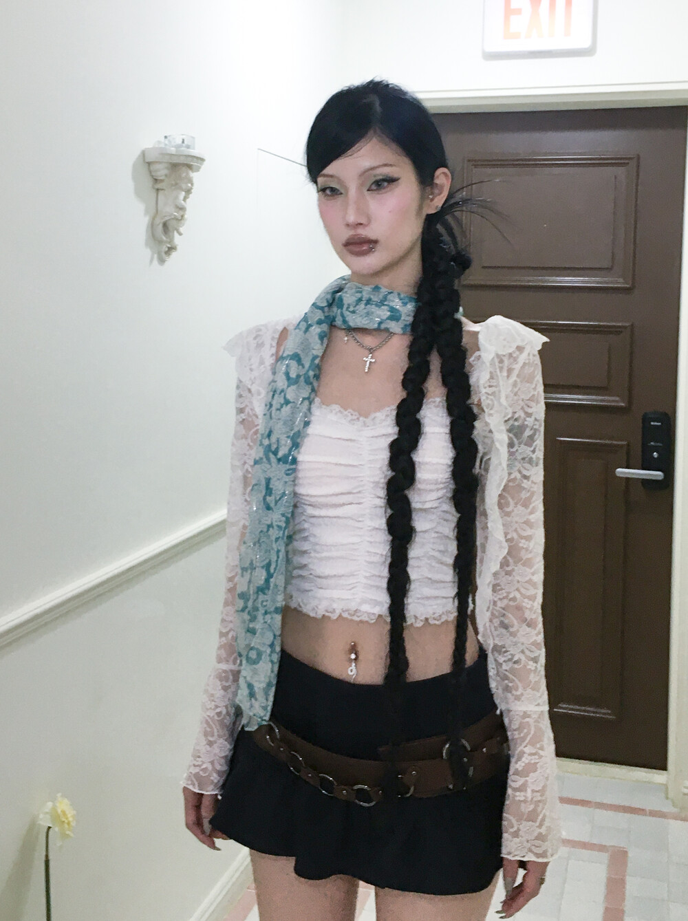 [Pink orchid house] Frill lace bolero (2color) (White)