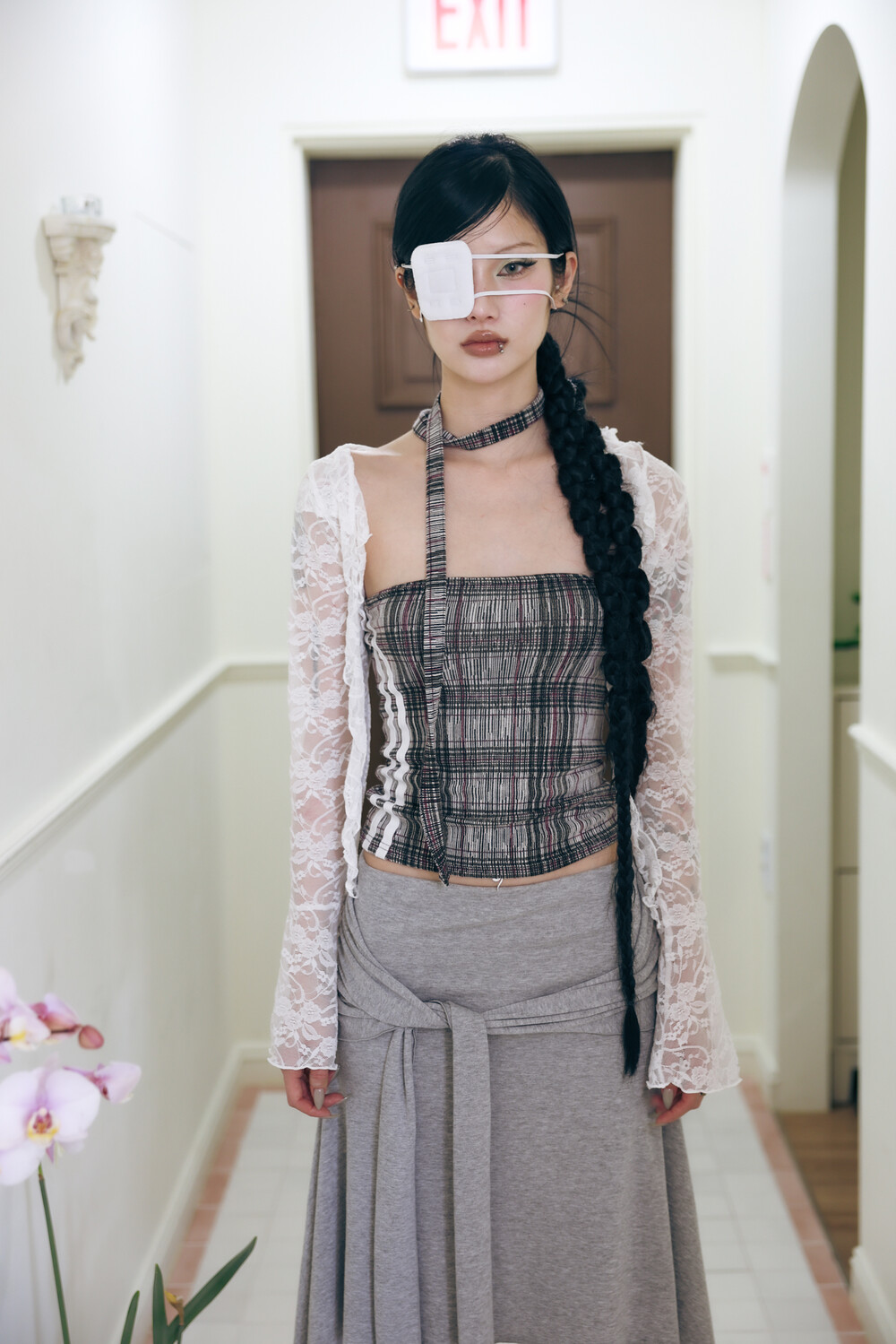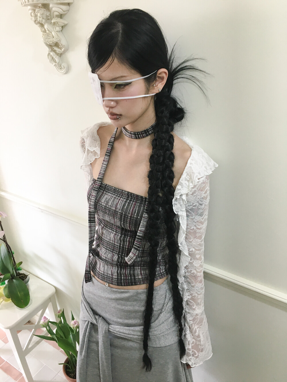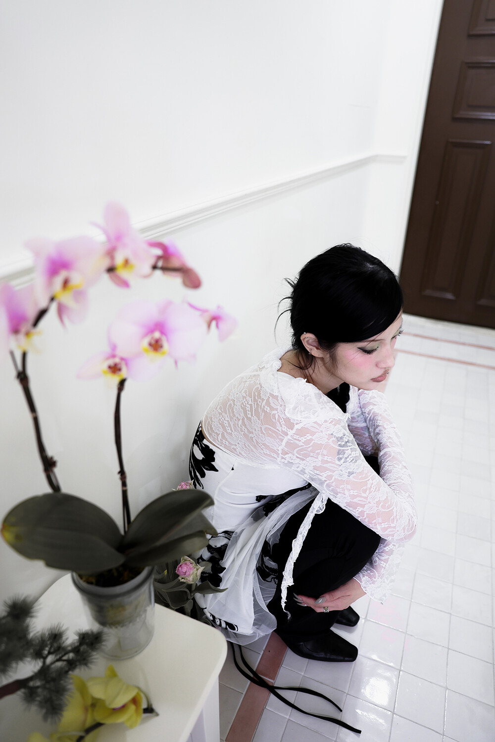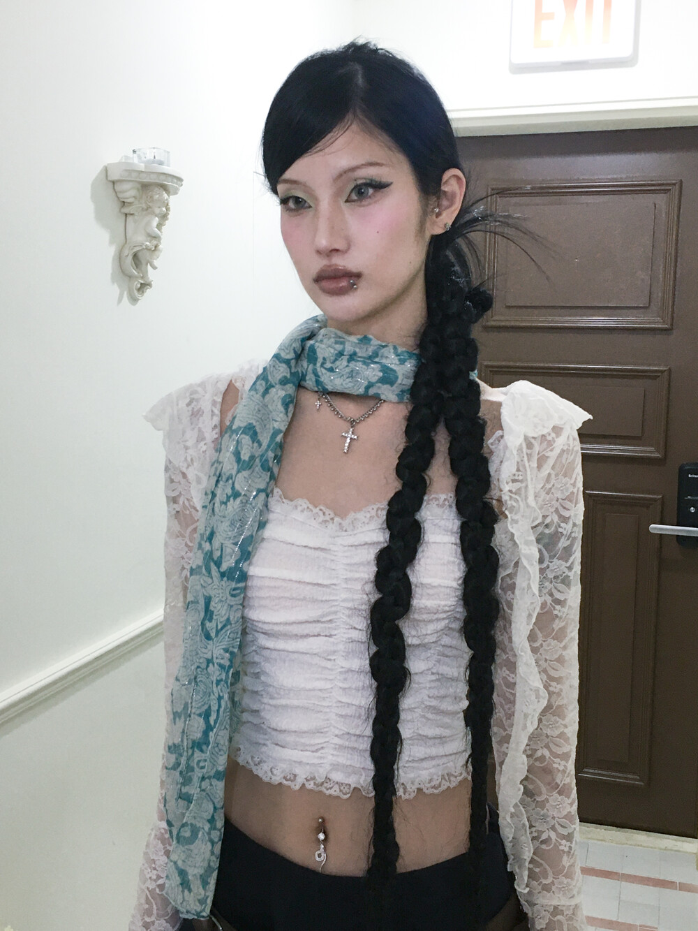 [Pink orchid house] Frill lace bolero (2color) (White)