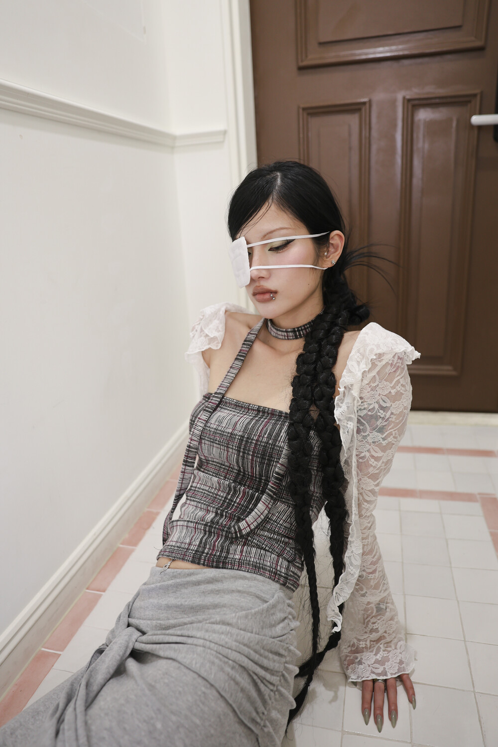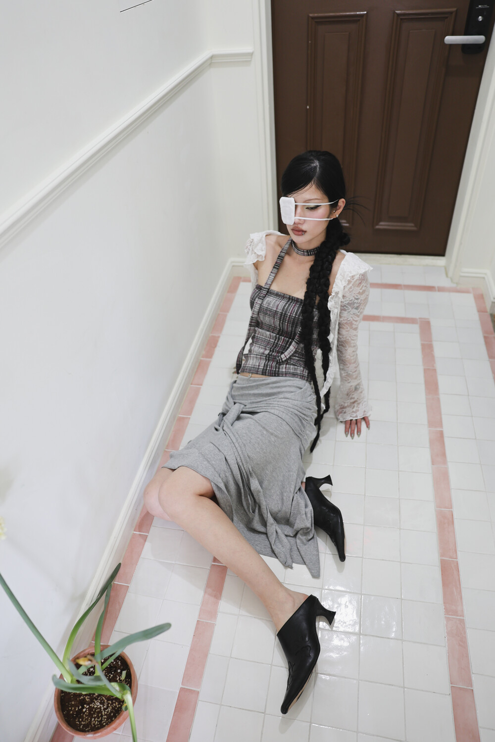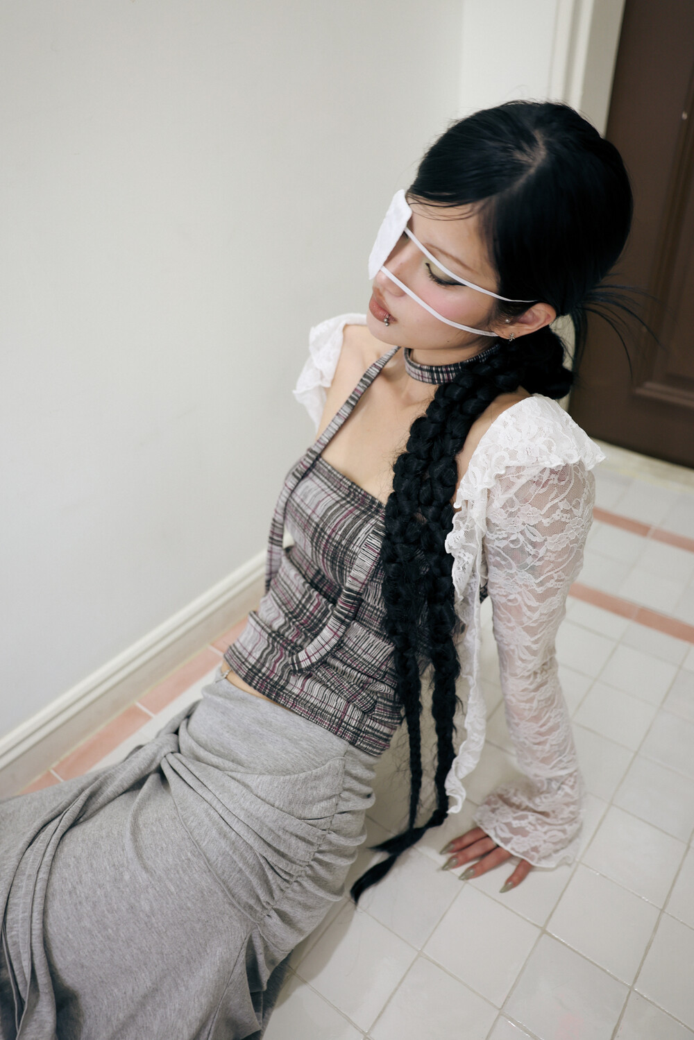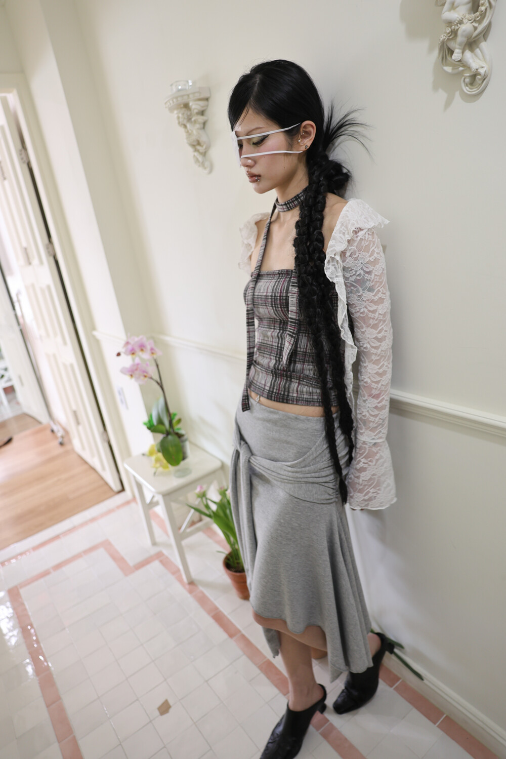 [Pink orchid house] Frill lace bolero (2color) (White)