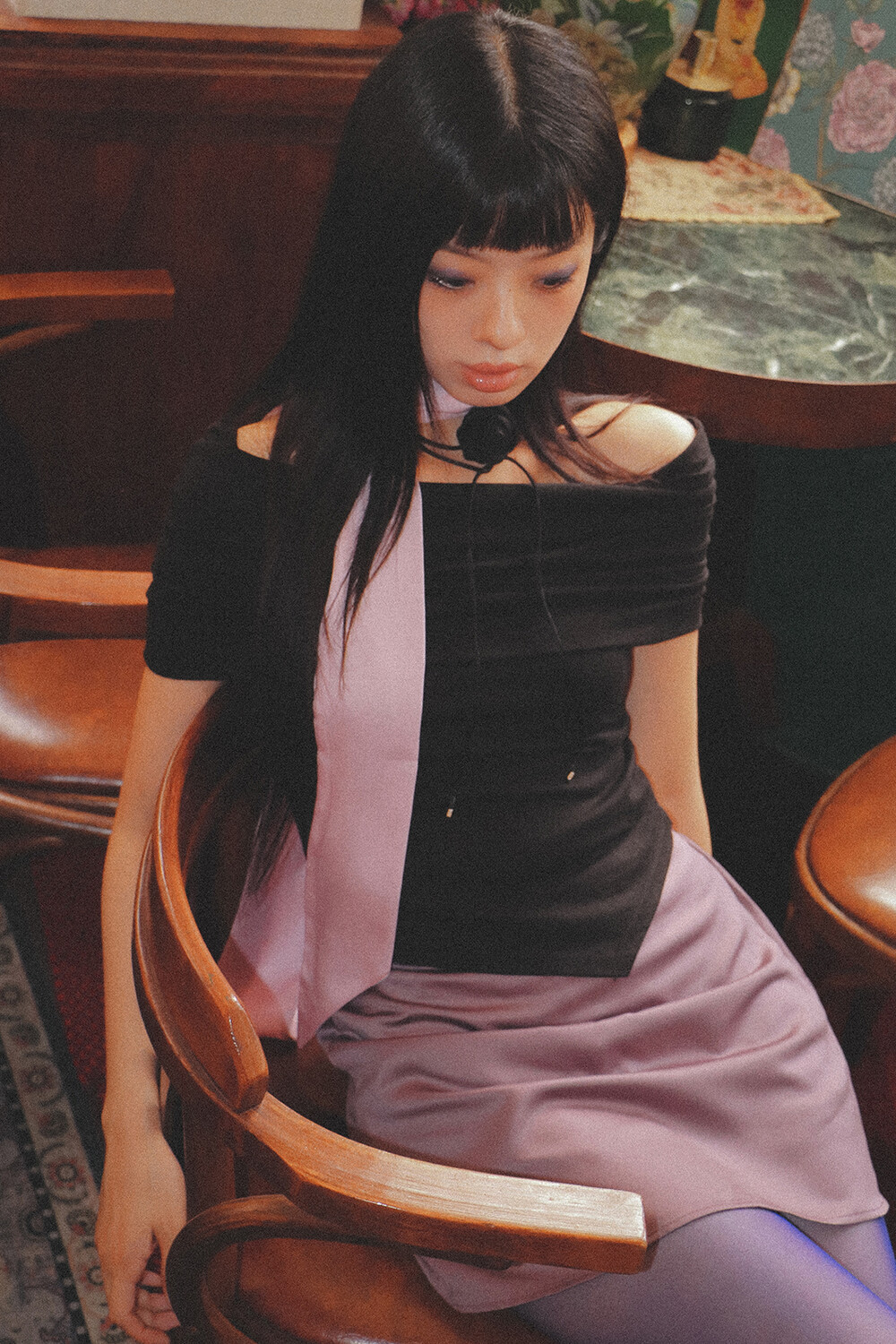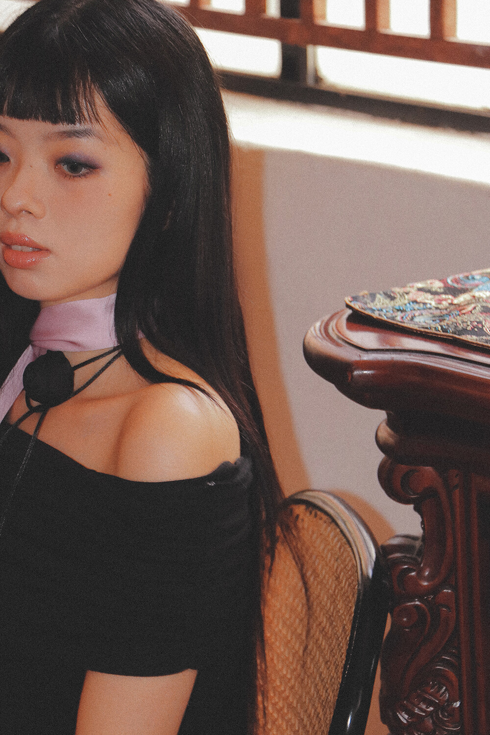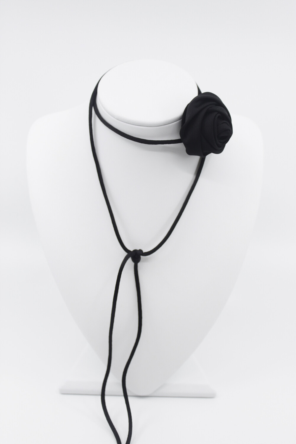 은은한 광택감이 매력적인 장미 코사지 초커입니다.