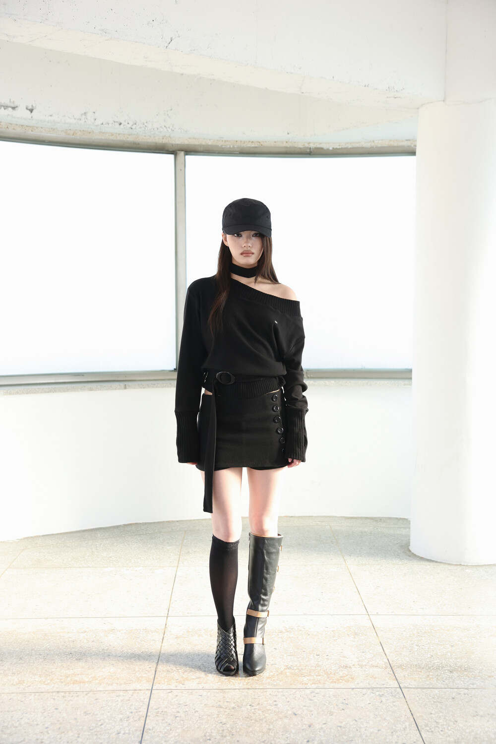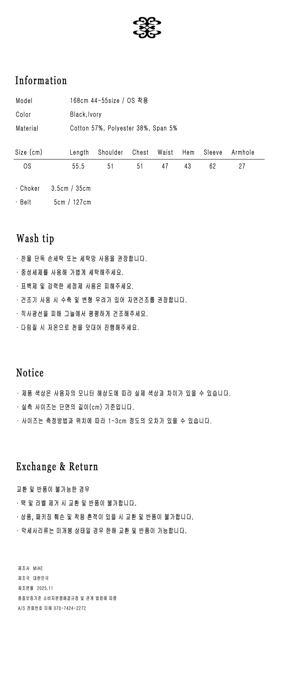 .초커 세트 구성 상품이며, 넥라인과 소매단, 밑단에 니트 시보리 원단을 적용해