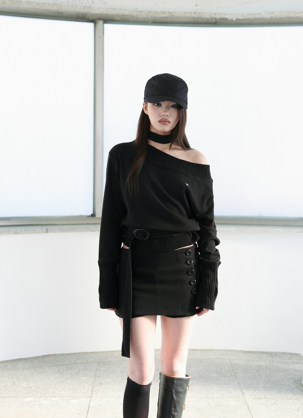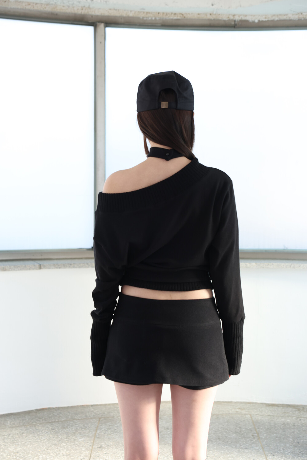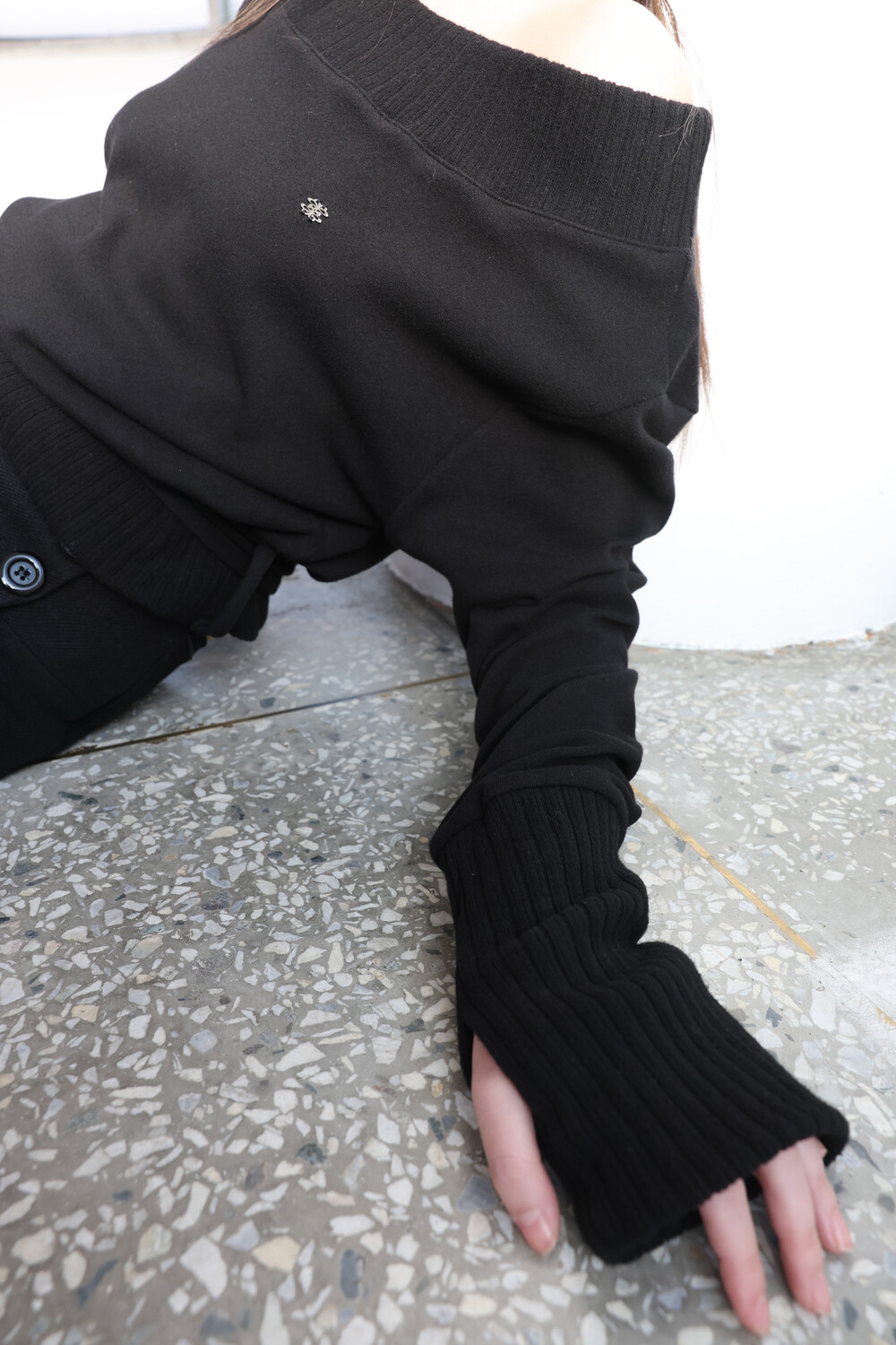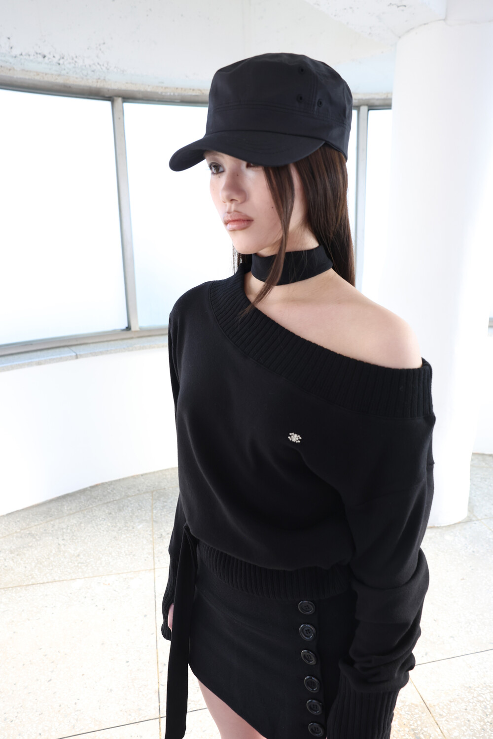 [ID] Logo Off-Shoulder Sweatshirt (Choker Set) (Black) * 12/8 예약 발송