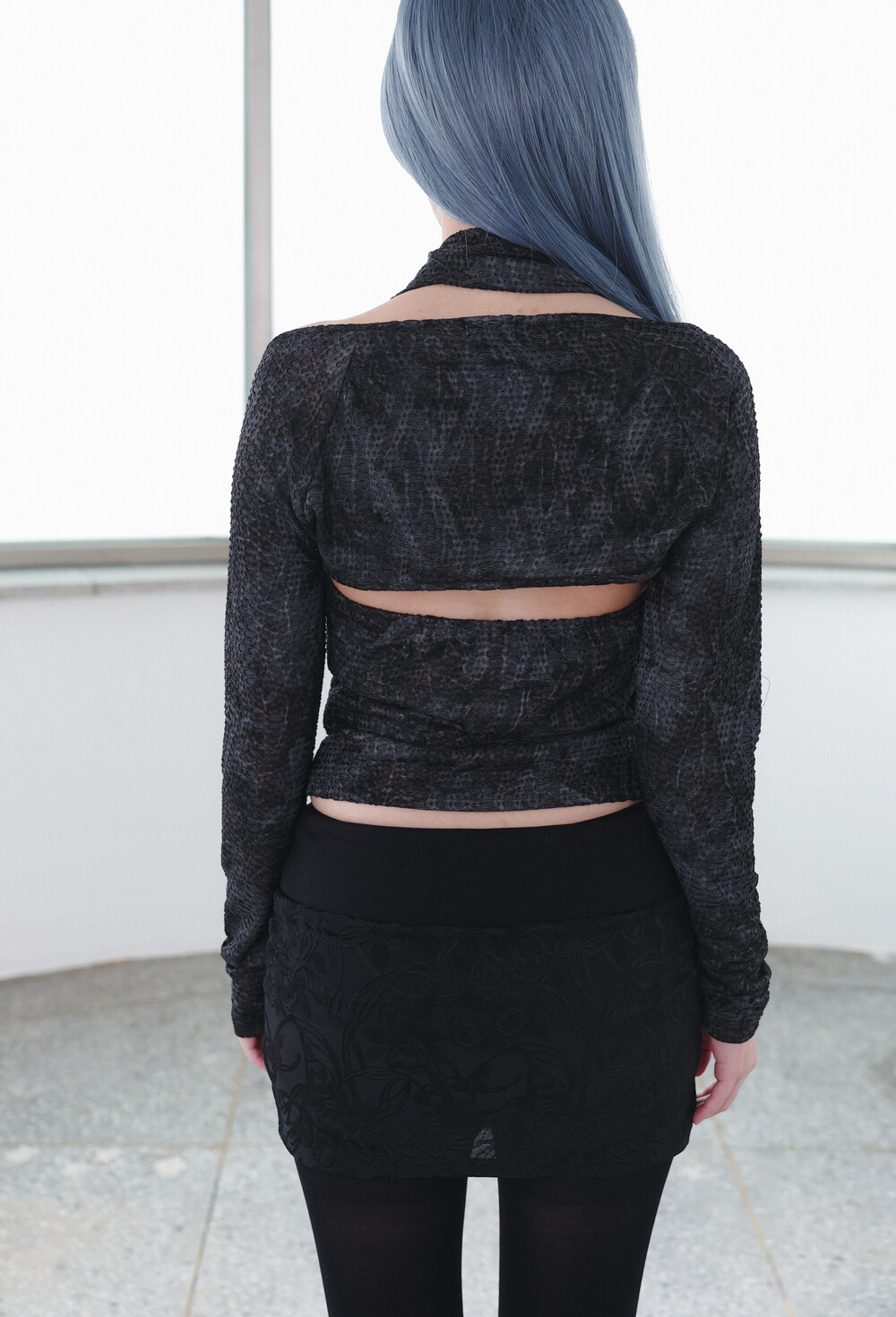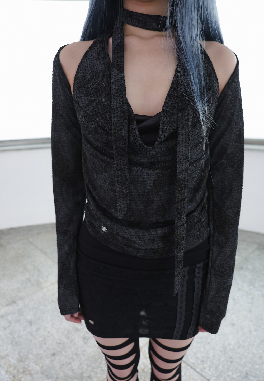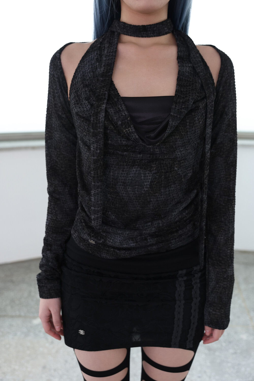 [ID] Distressed Halter Top & Bolero Set (Dark gray)