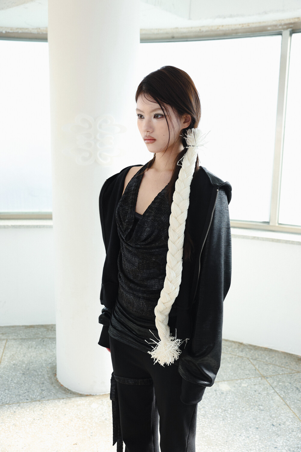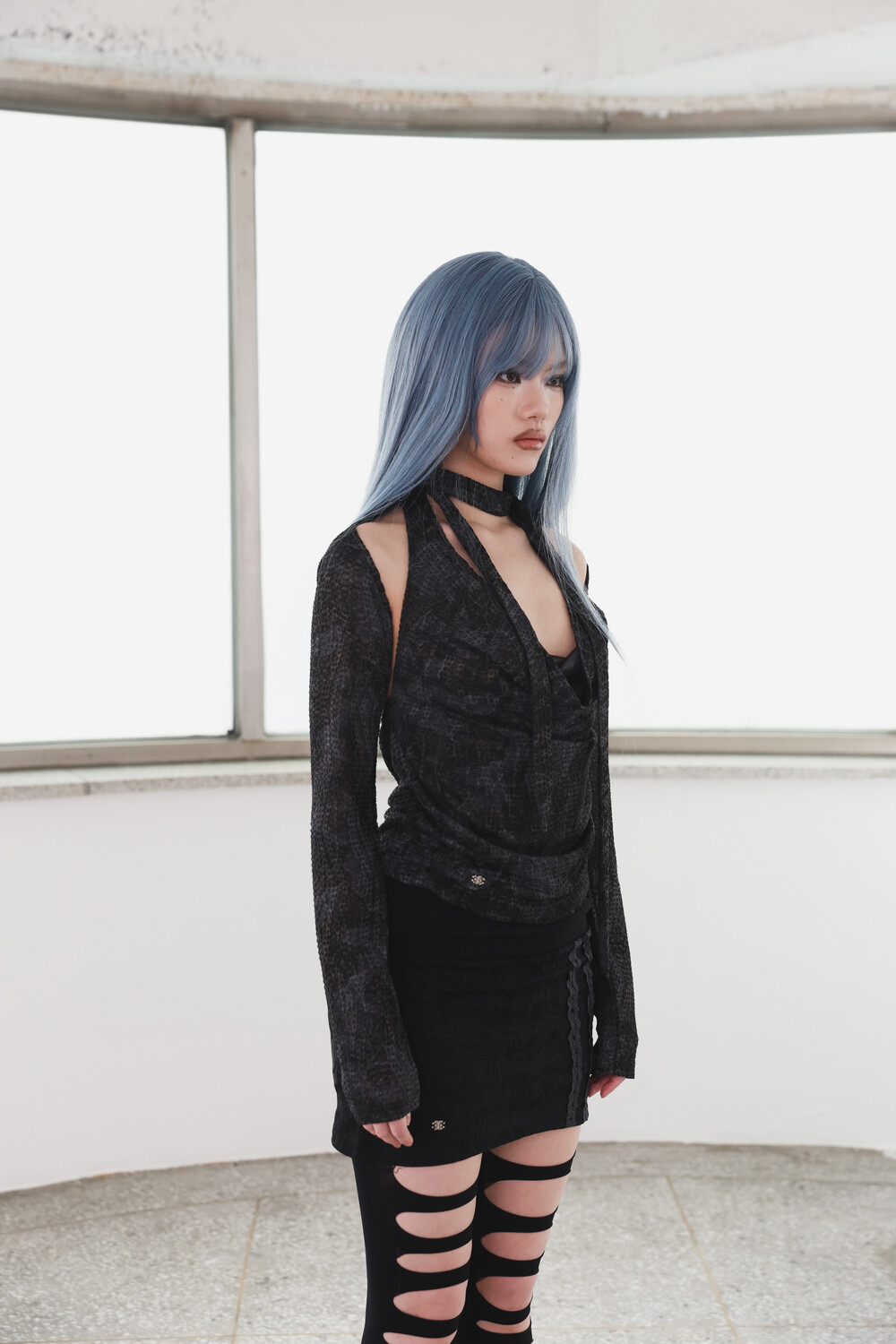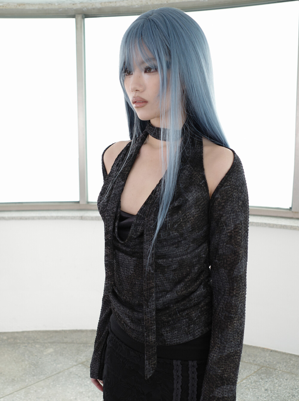 [ID] Distressed Halter Top & Bolero Set (Dark gray)