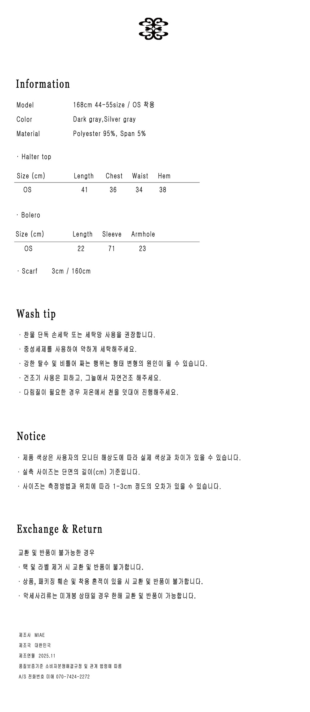 고급스러운 입체 패턴이 돋보이는 홀터 나시 & 스카프와 볼레로 세트입니다.