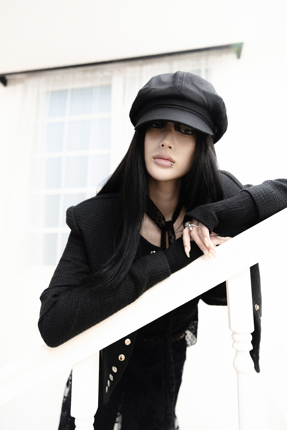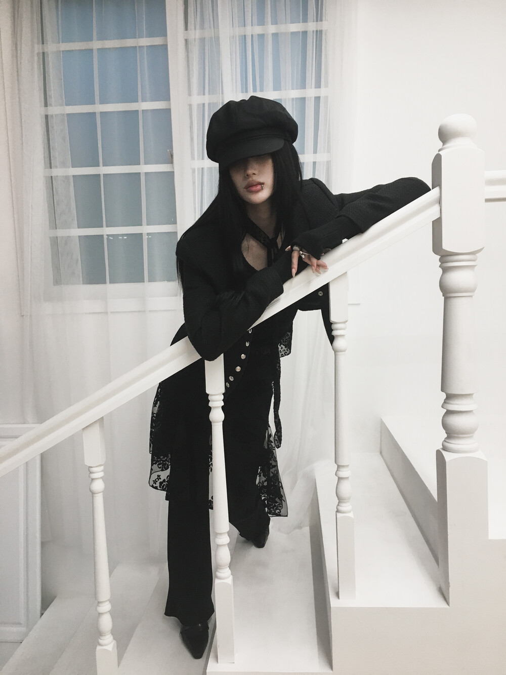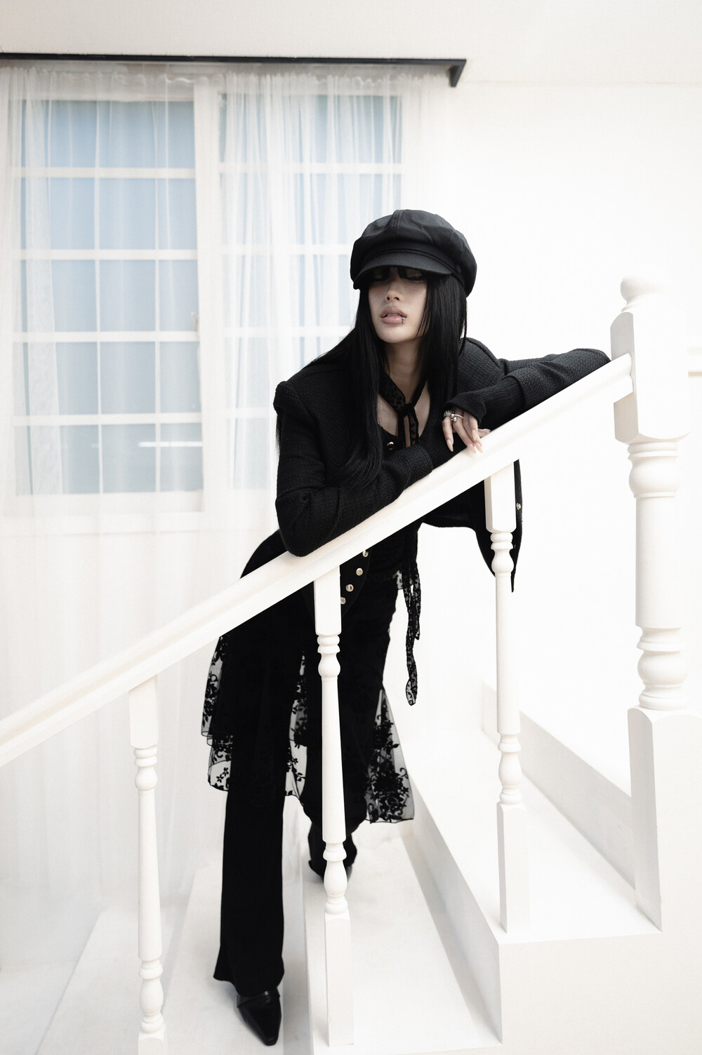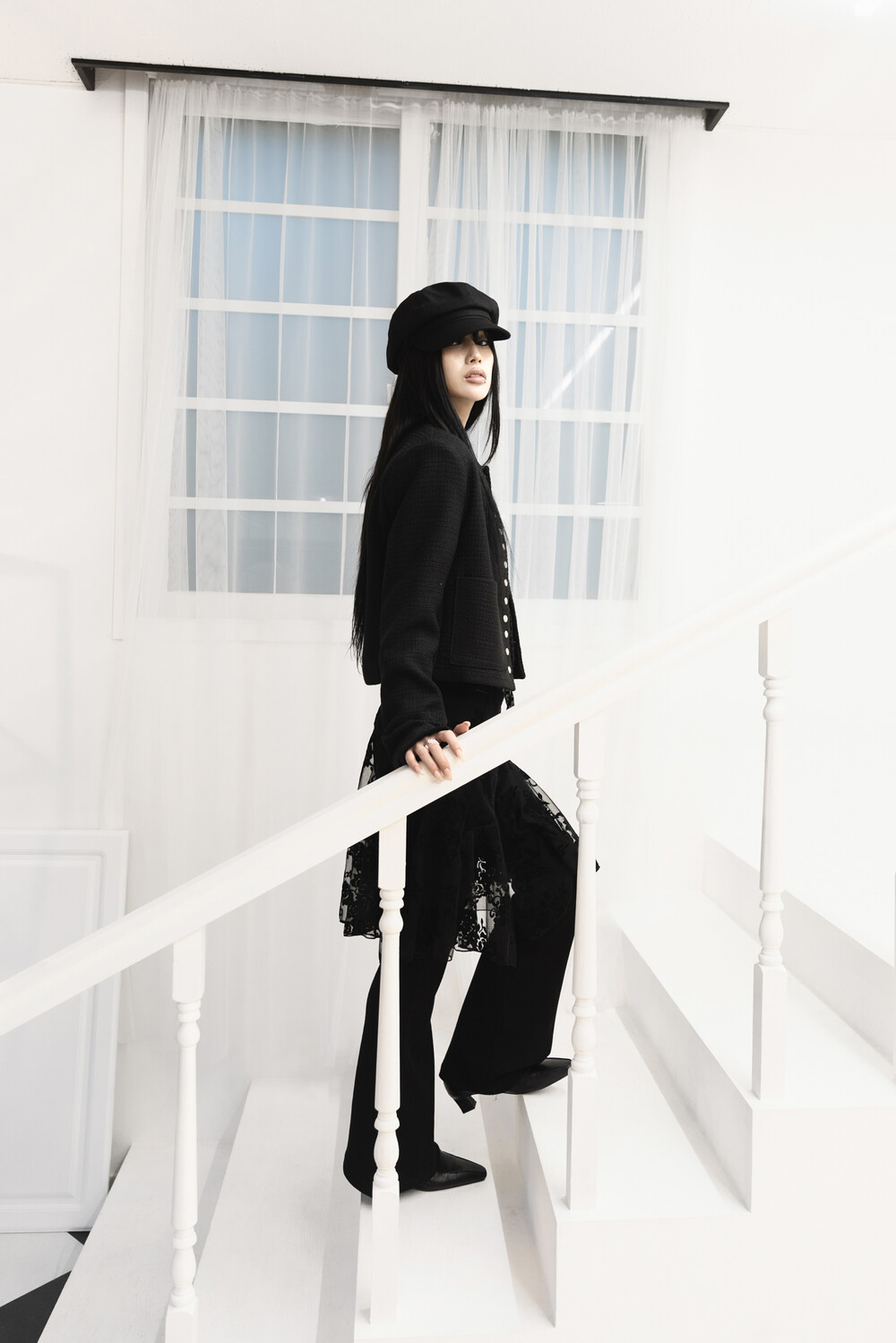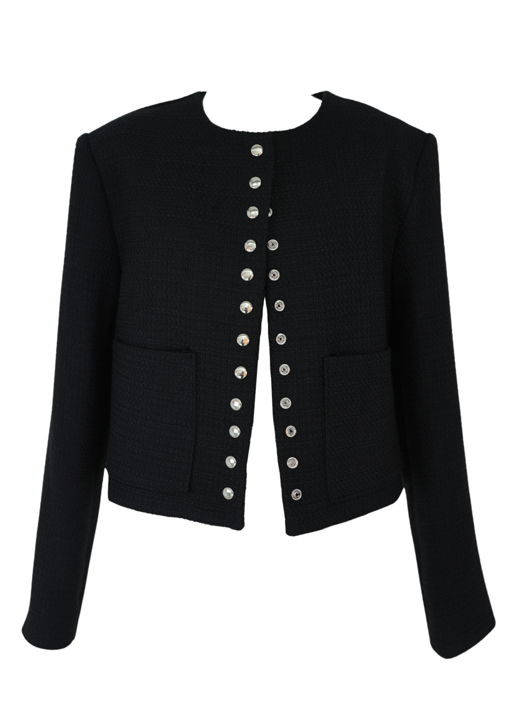 [Sepia] Line button tweed jacket (Black)