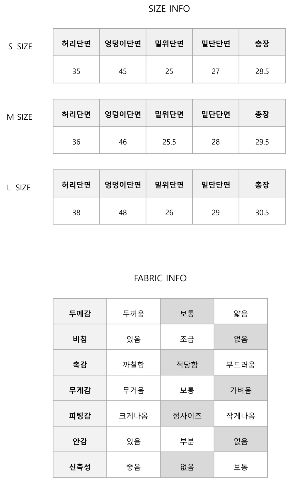 (로우 라이즈 로 착용 시에는 한 사이즈 업 권장)