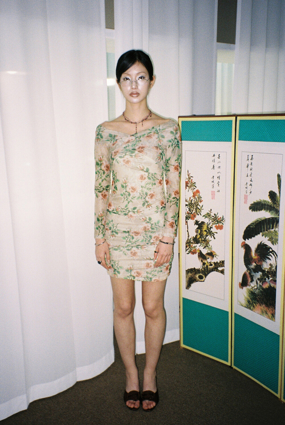 붉은 장미 프린팅이 매력적인 원피스입니다.