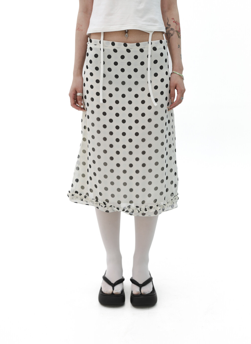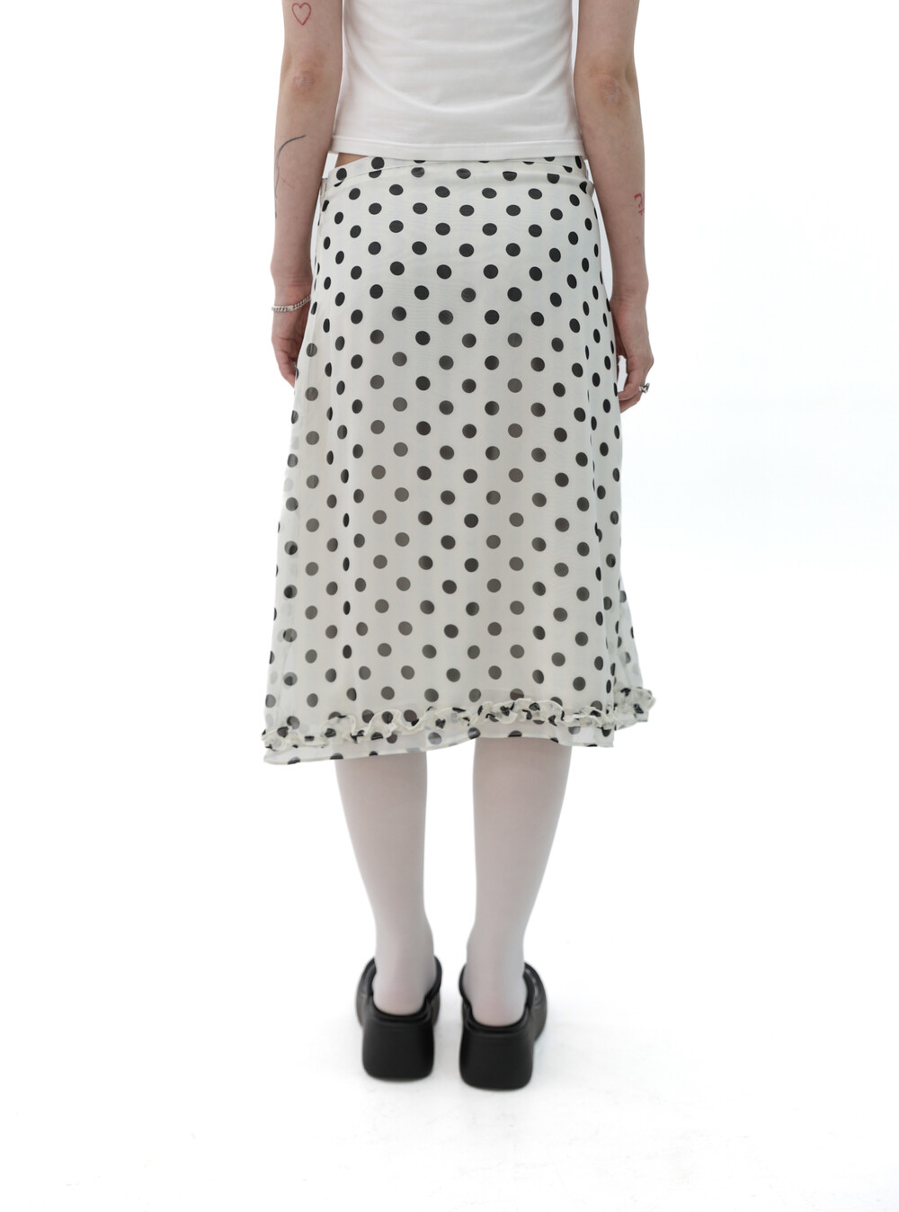 [Gerbera] Dot frill midi skirt