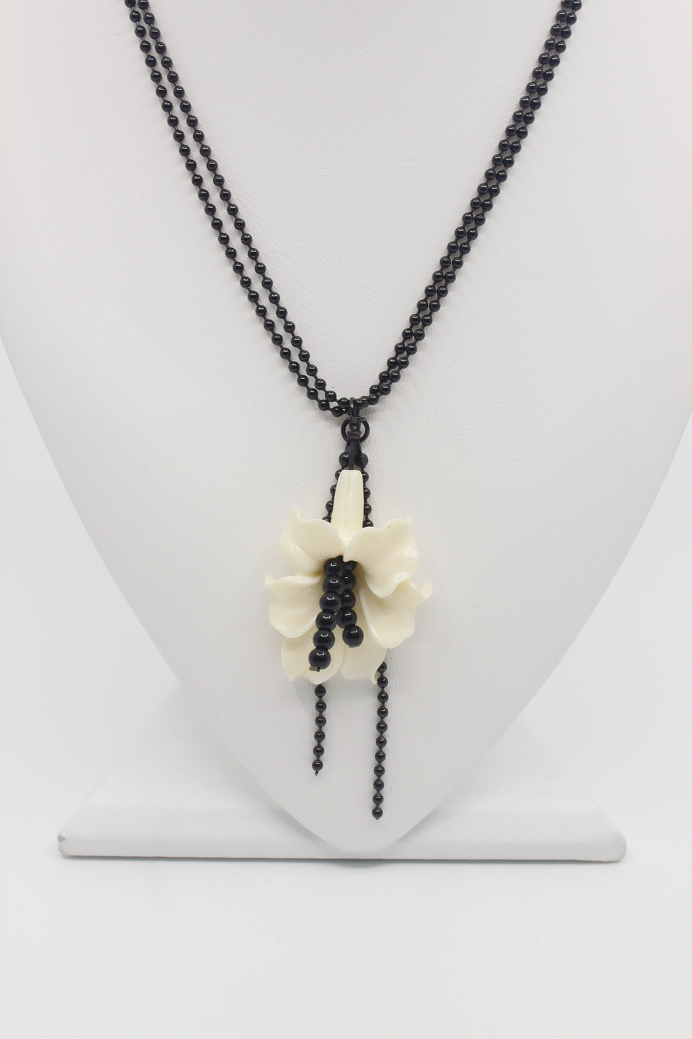 [Pink orchid house] Tropical flower necklace (Ivory)