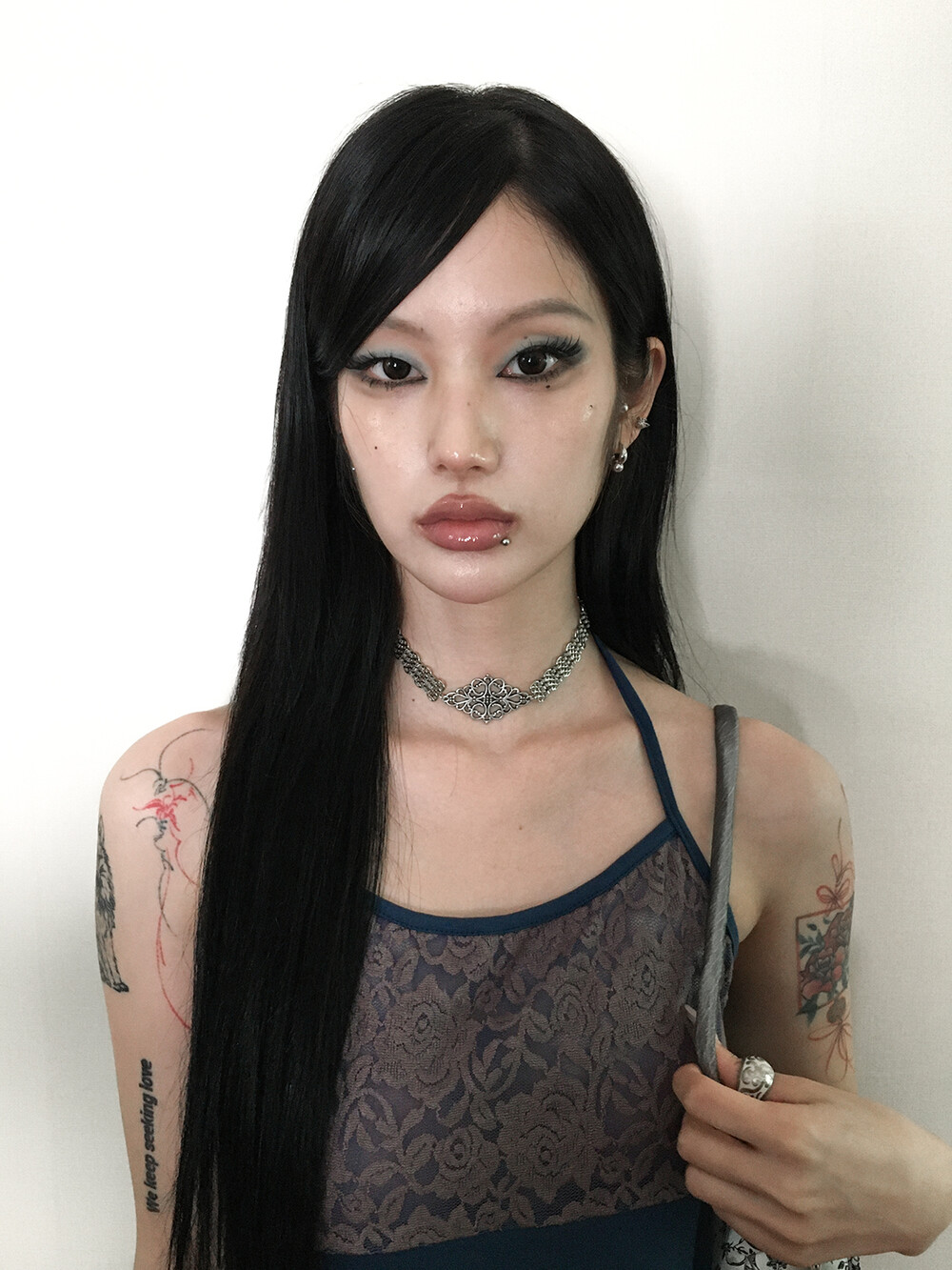 짧은 초커 기장감으로 길이감이 긴 체인 목걸이와 레이어드 해줘도 잘 어울립니다.