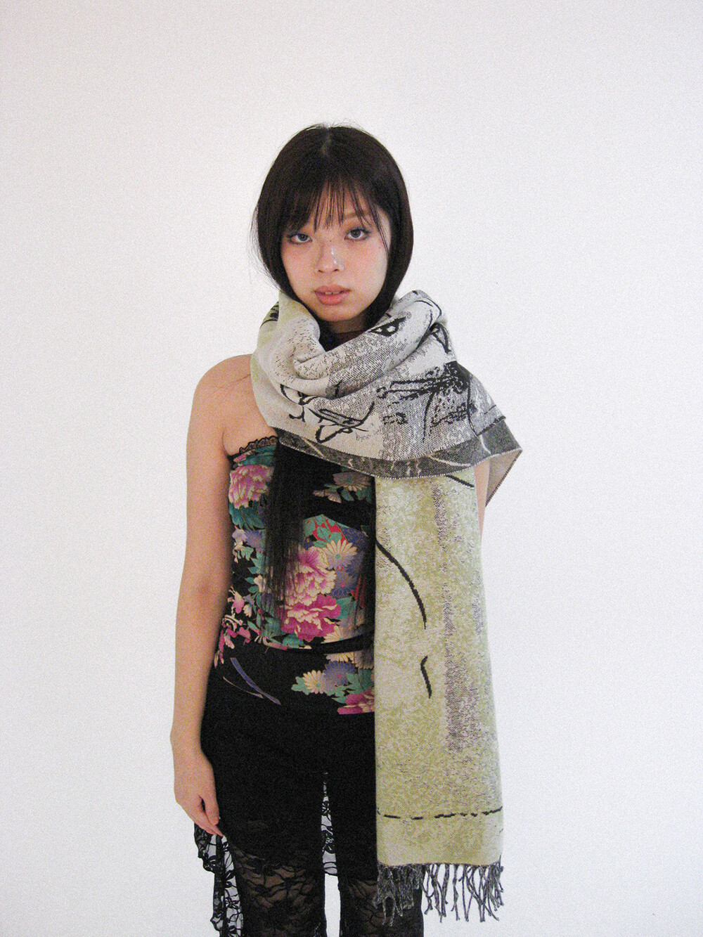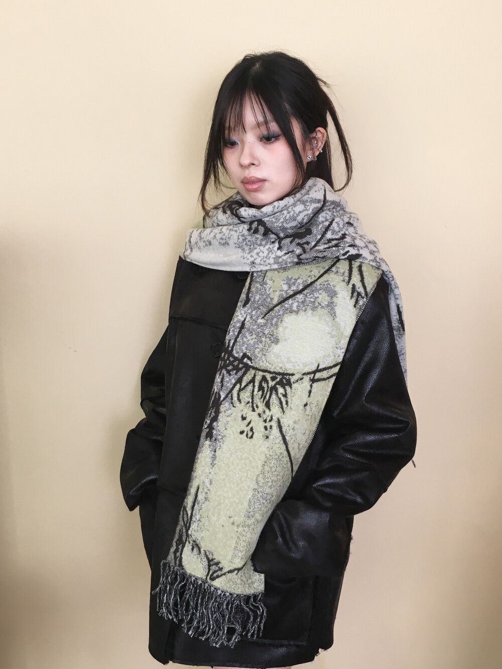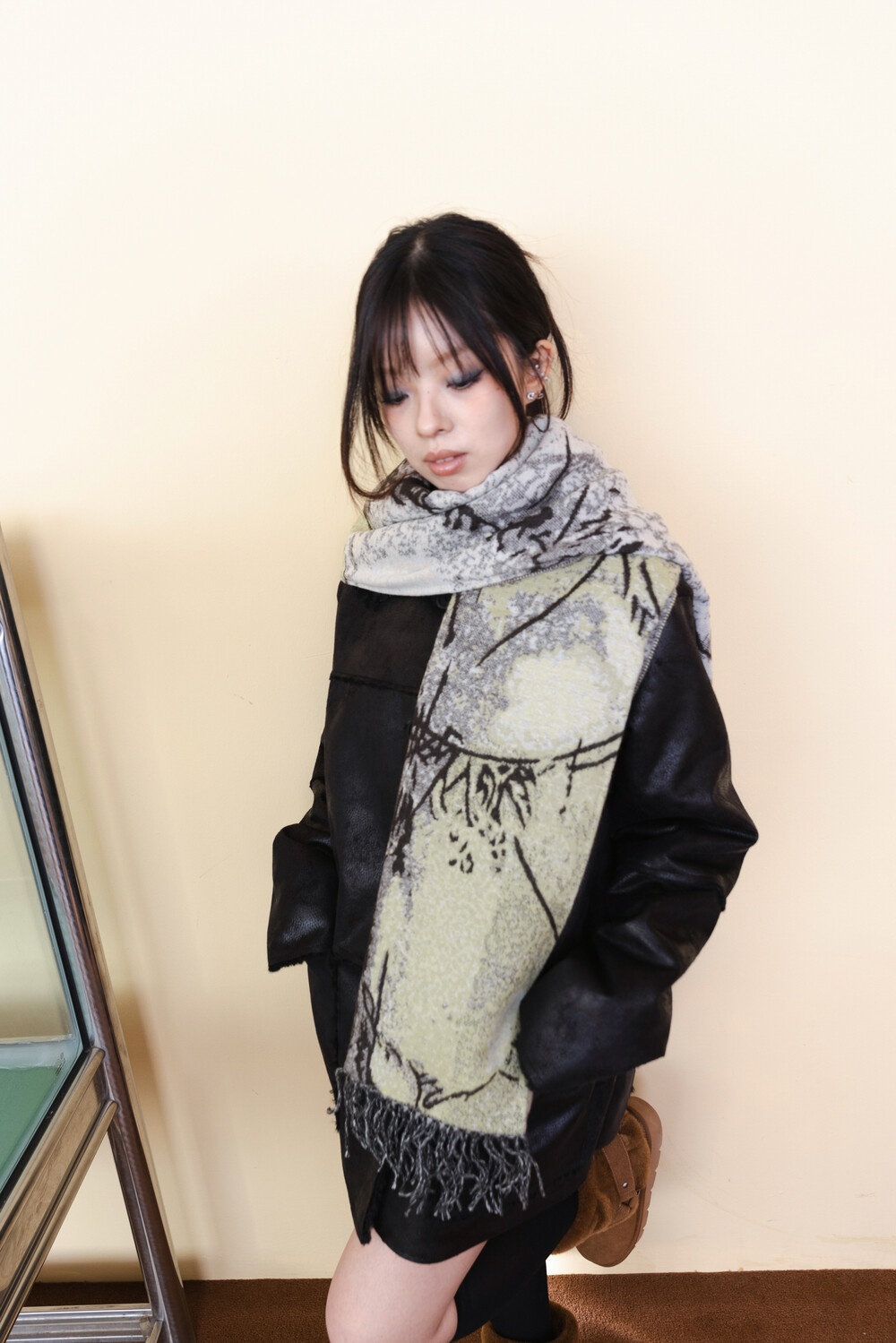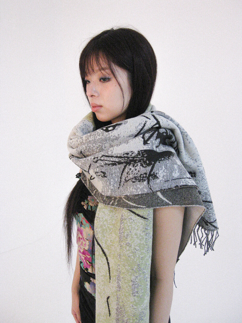 붓으로 그린듯한 패턴이 매력적인 유니크한 디자인의 미애 무드 가득한 머플러 입니다.