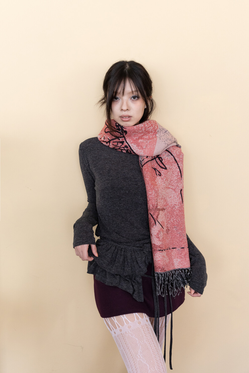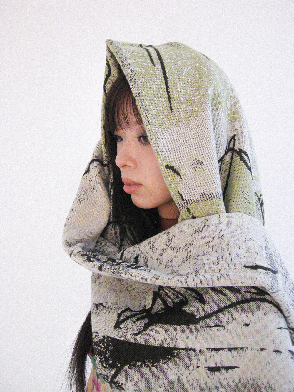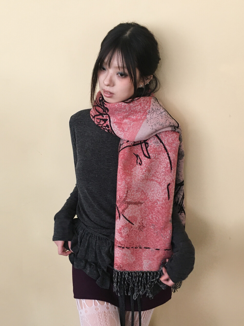 붓으로 그린듯한 패턴이 매력적인 유니크한 디자인의 미애 무드 가득한 머플러 입니다.