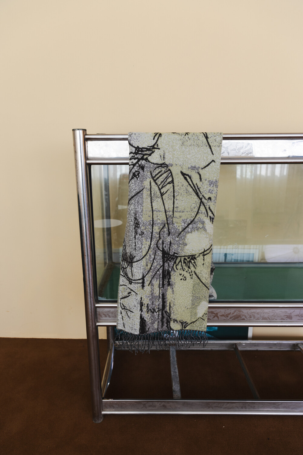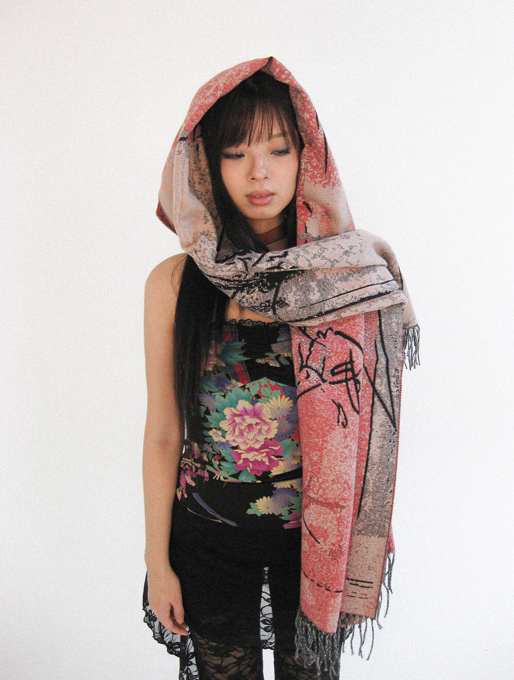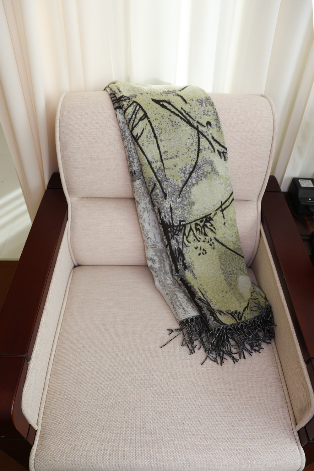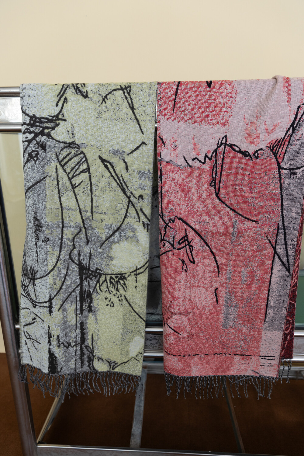 붓으로 그린듯한 패턴이 매력적인 유니크한 디자인의 미애 무드 가득한 머플러 입니다.