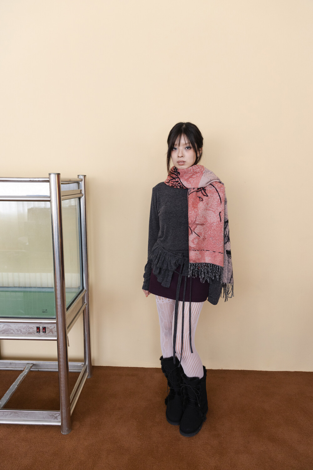 폭이 넓고 길이가 길어서 탑으로도 연출 할 수 있으며, 어깨에 둘러 망토로도 연출 할 수 있습니다.