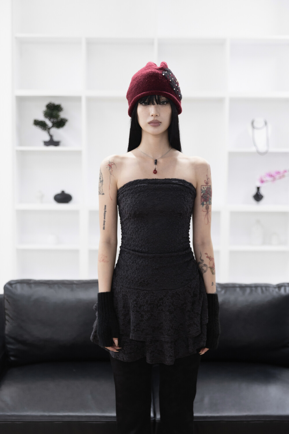 붉은 열매가 아래로 떨어지는 듯한 디자인으로 초커 기장의 목걸이와 레이어드해도 잘 어울리며,