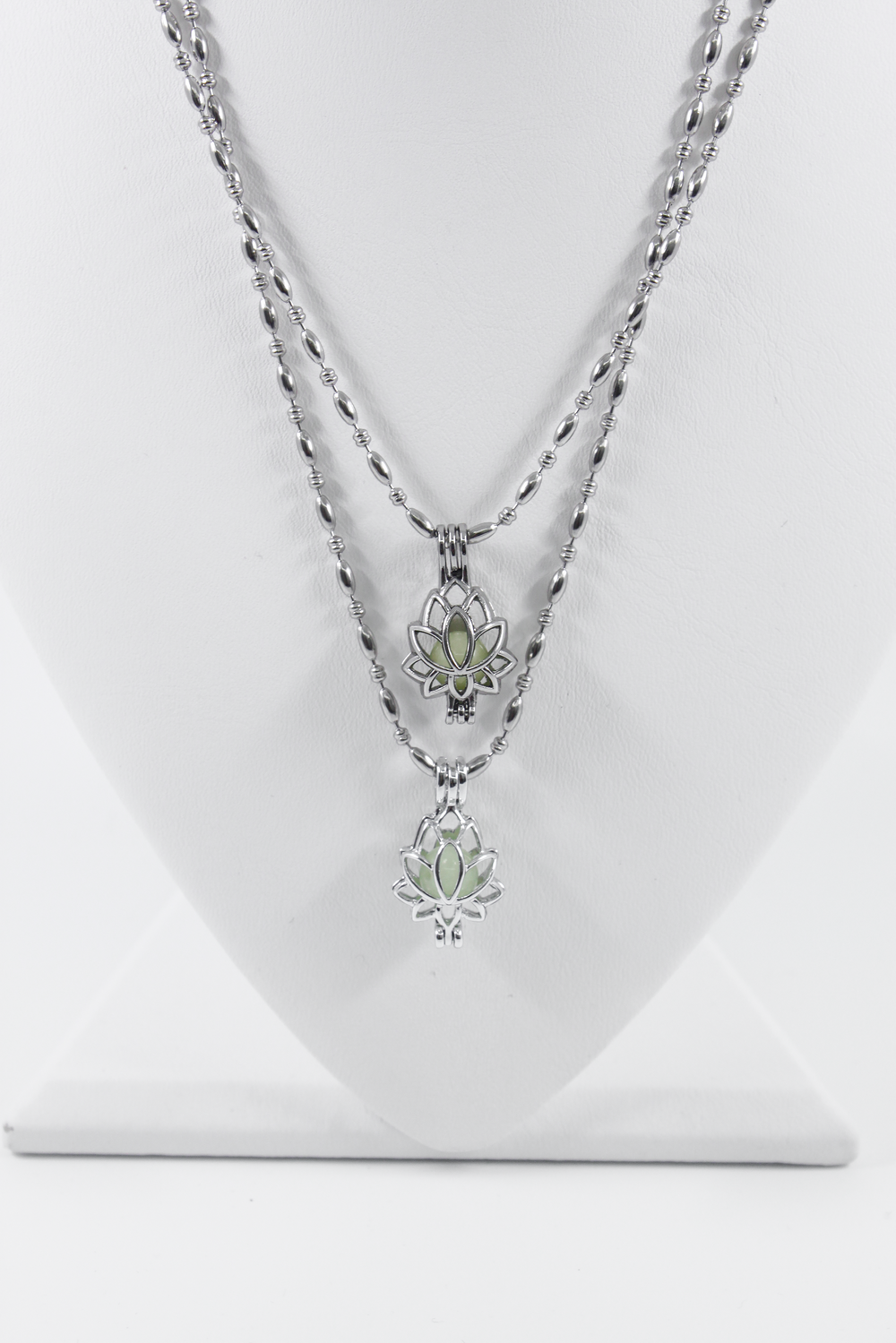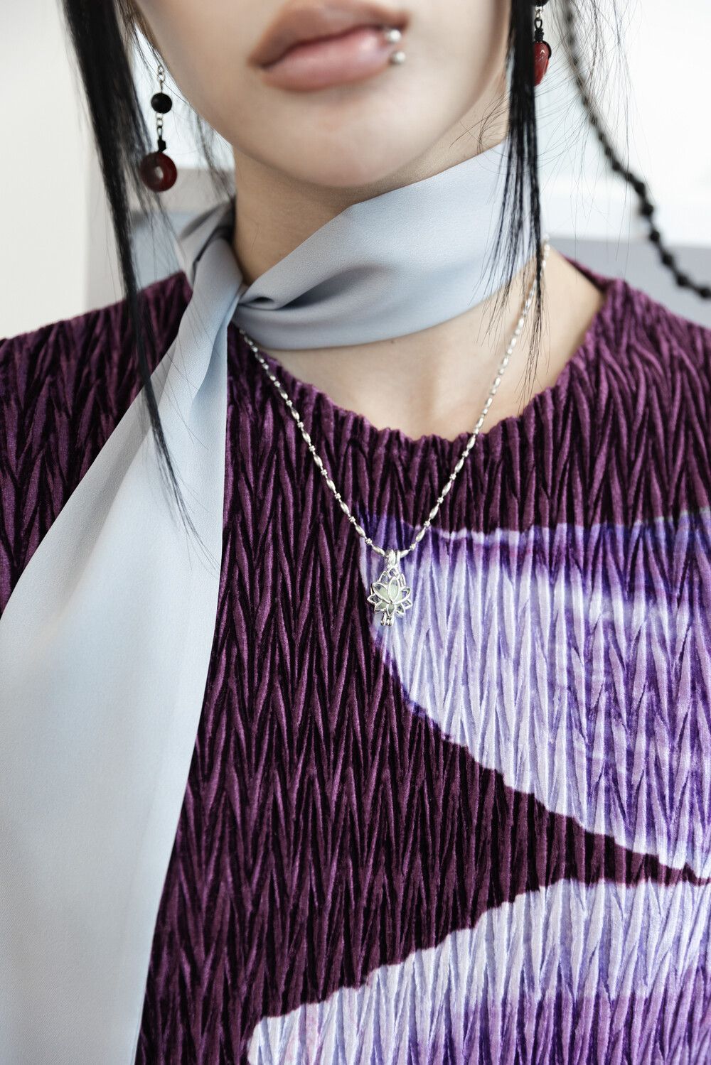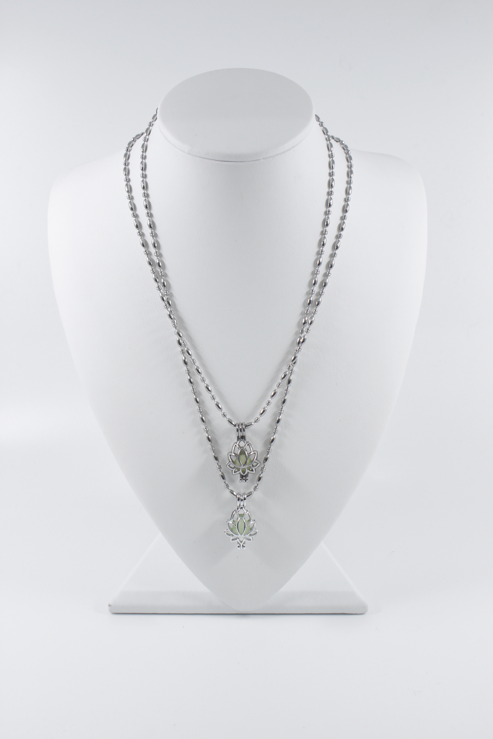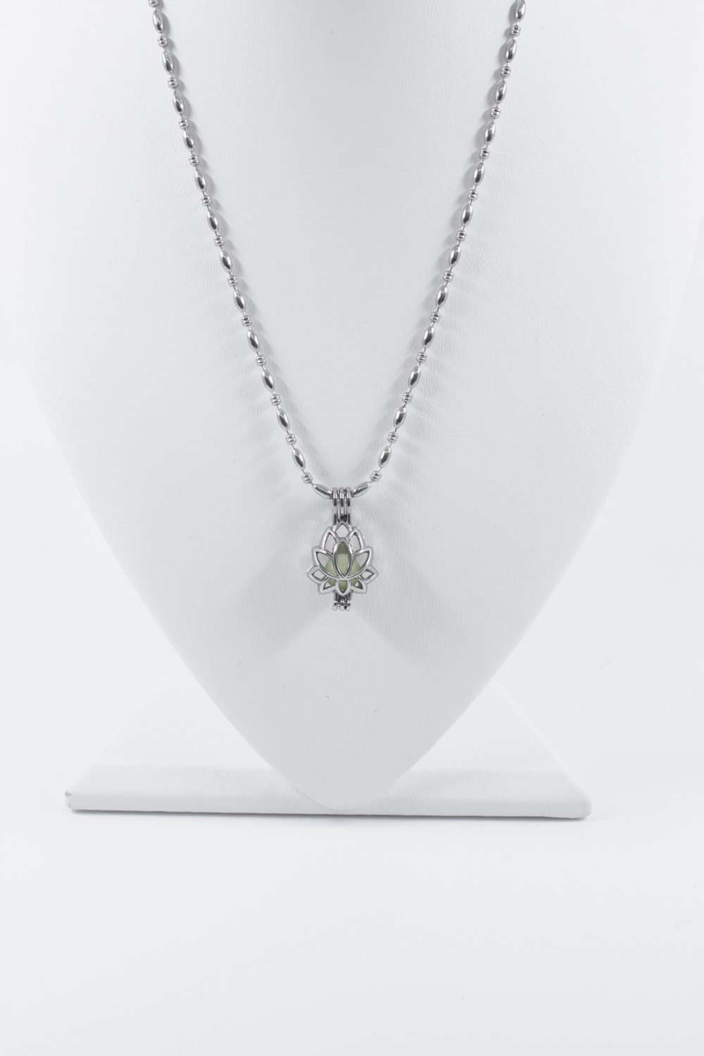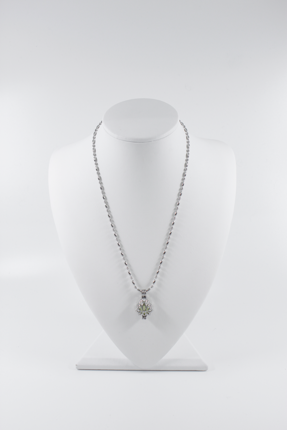옥색 원석을 품고 있는 입체적인 연꽃 펜던트가 매력적인 상품입니다.
