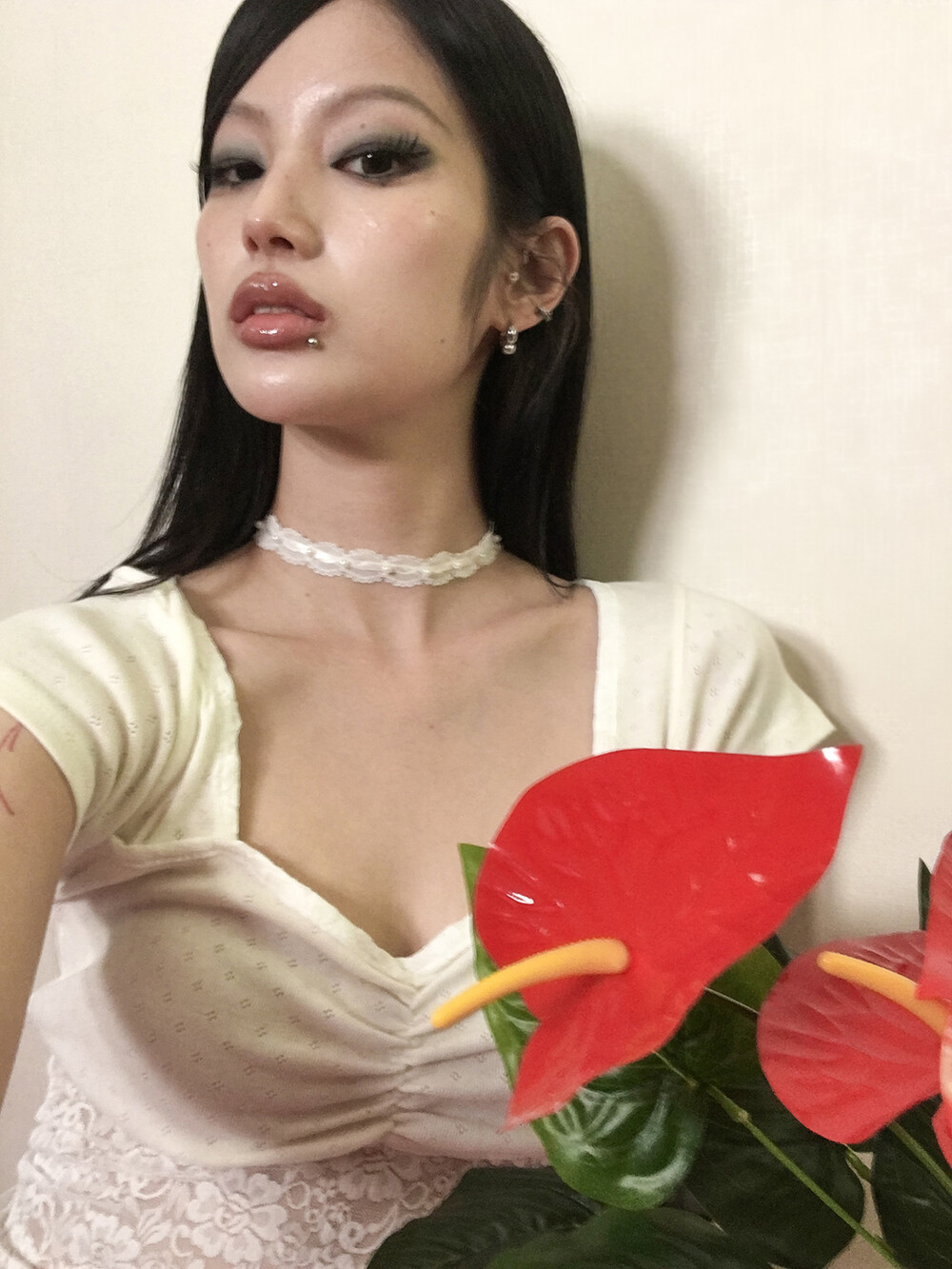 Me愛 - Pearl lace choker (WHITE)
