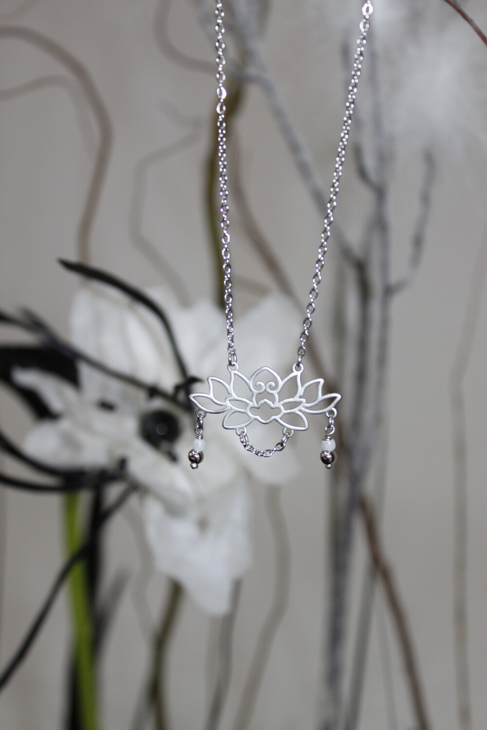 연꽃 모양을 형상화한 실버 펜던트의 목걸이입니다.