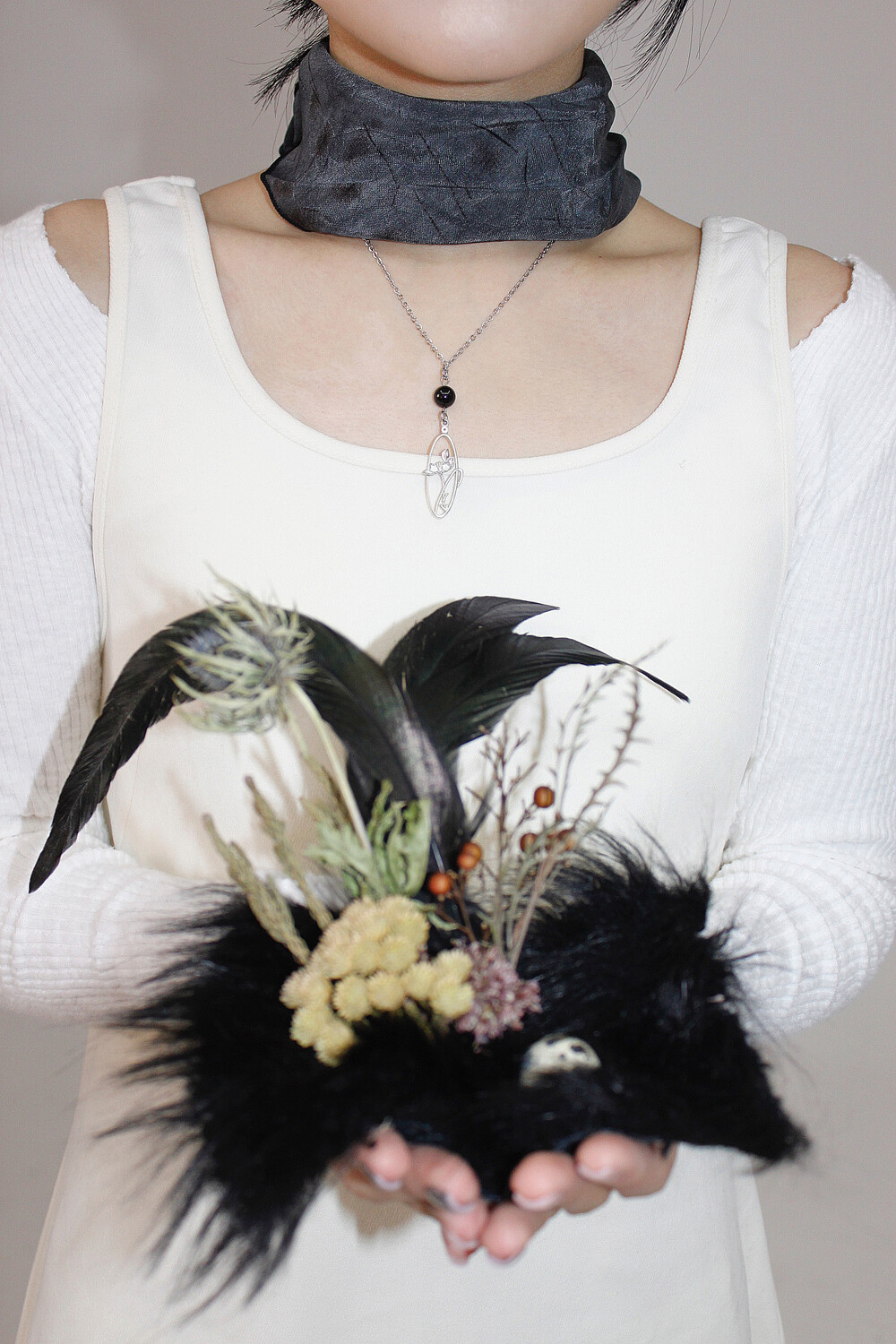 초커 길이의 목걸이와 레이어드 해도 좋으며,