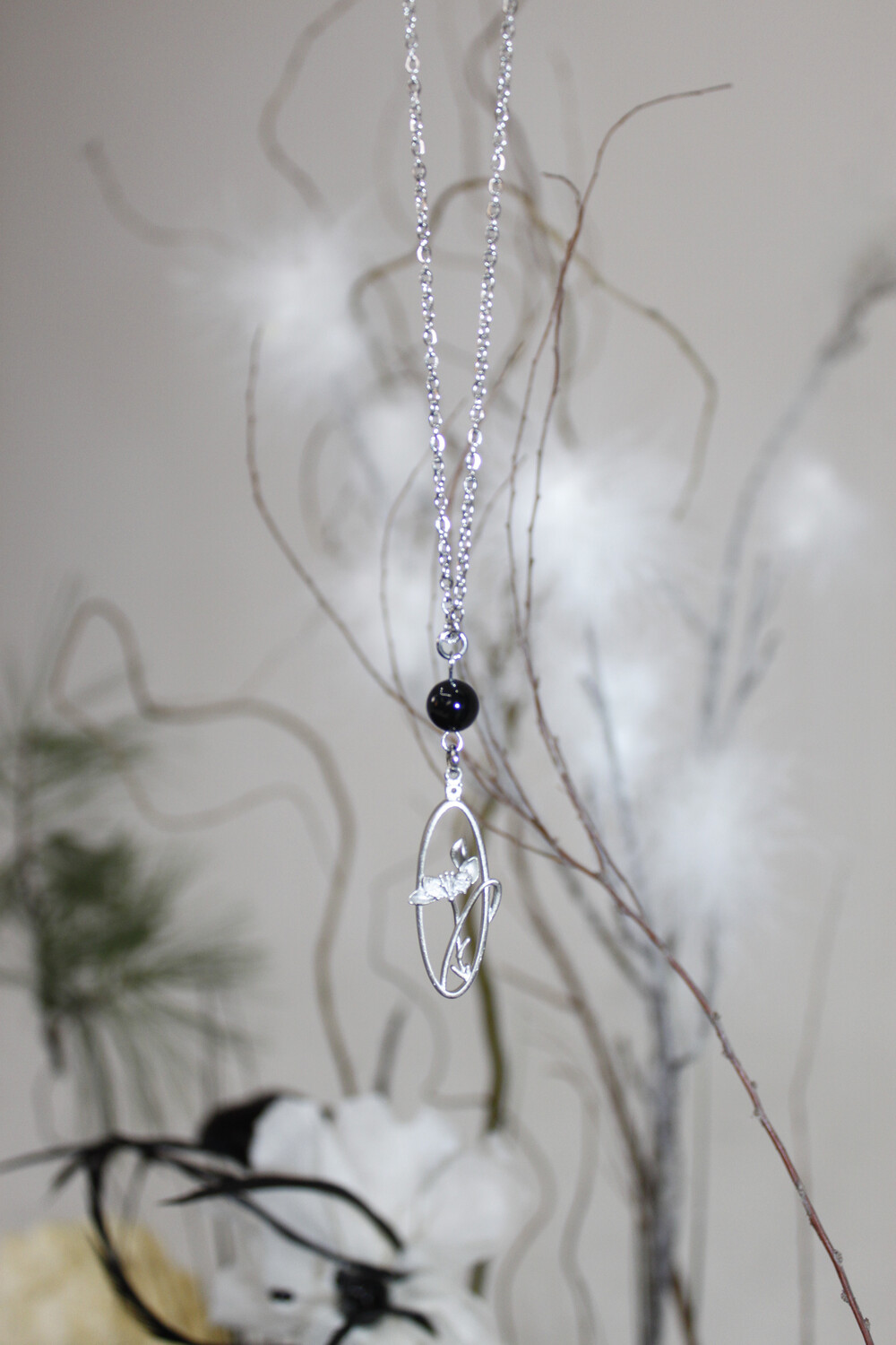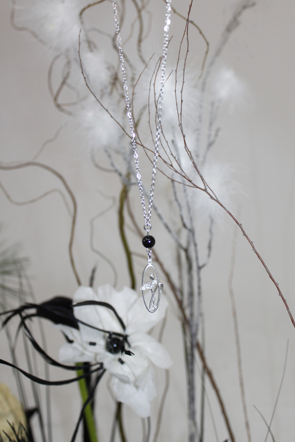 써지컬 체인 줄로 심플하면서도 동양적인 무드의 붓꽃 체인 necklace입니다.