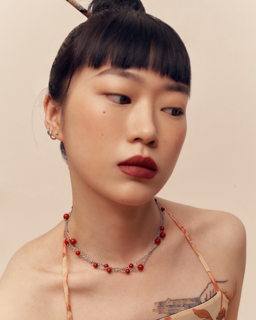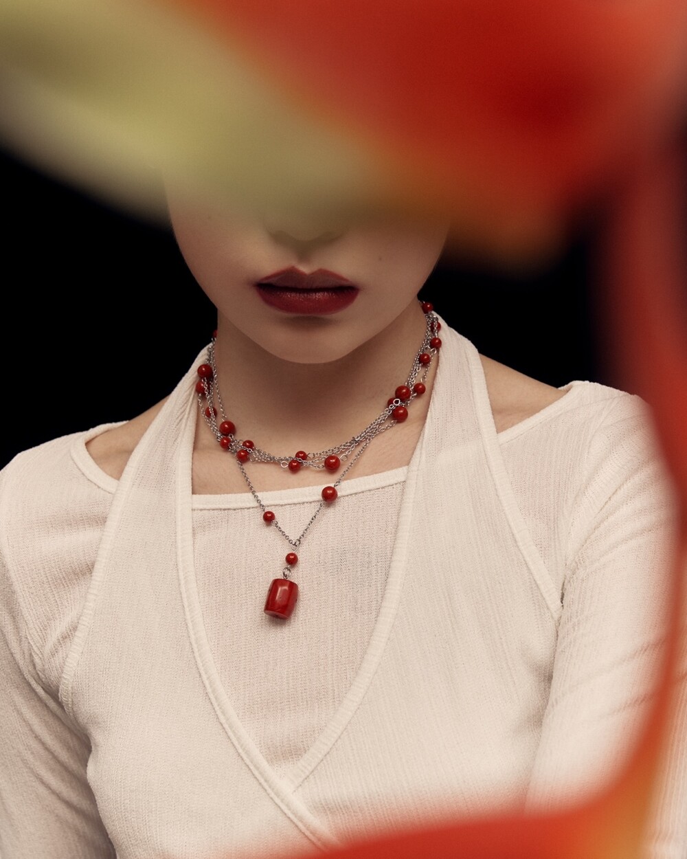 컬러감이 매력적인 붉은 빛의 오닉스 원석을 사용하여 여름에 착용하기 좋은 아이템입니다.