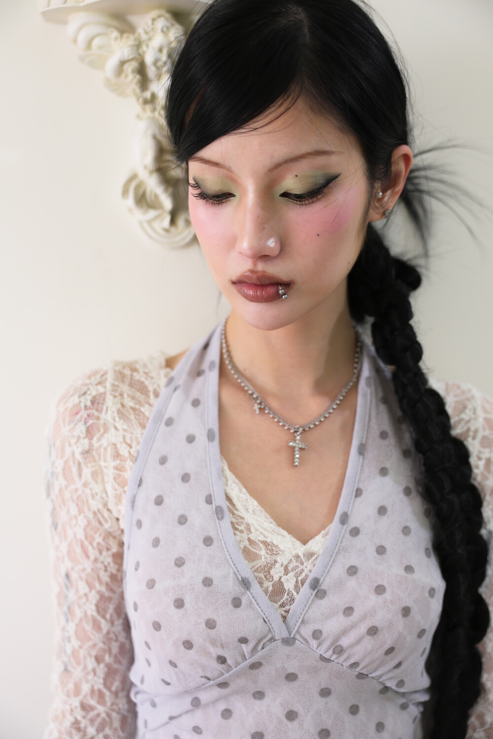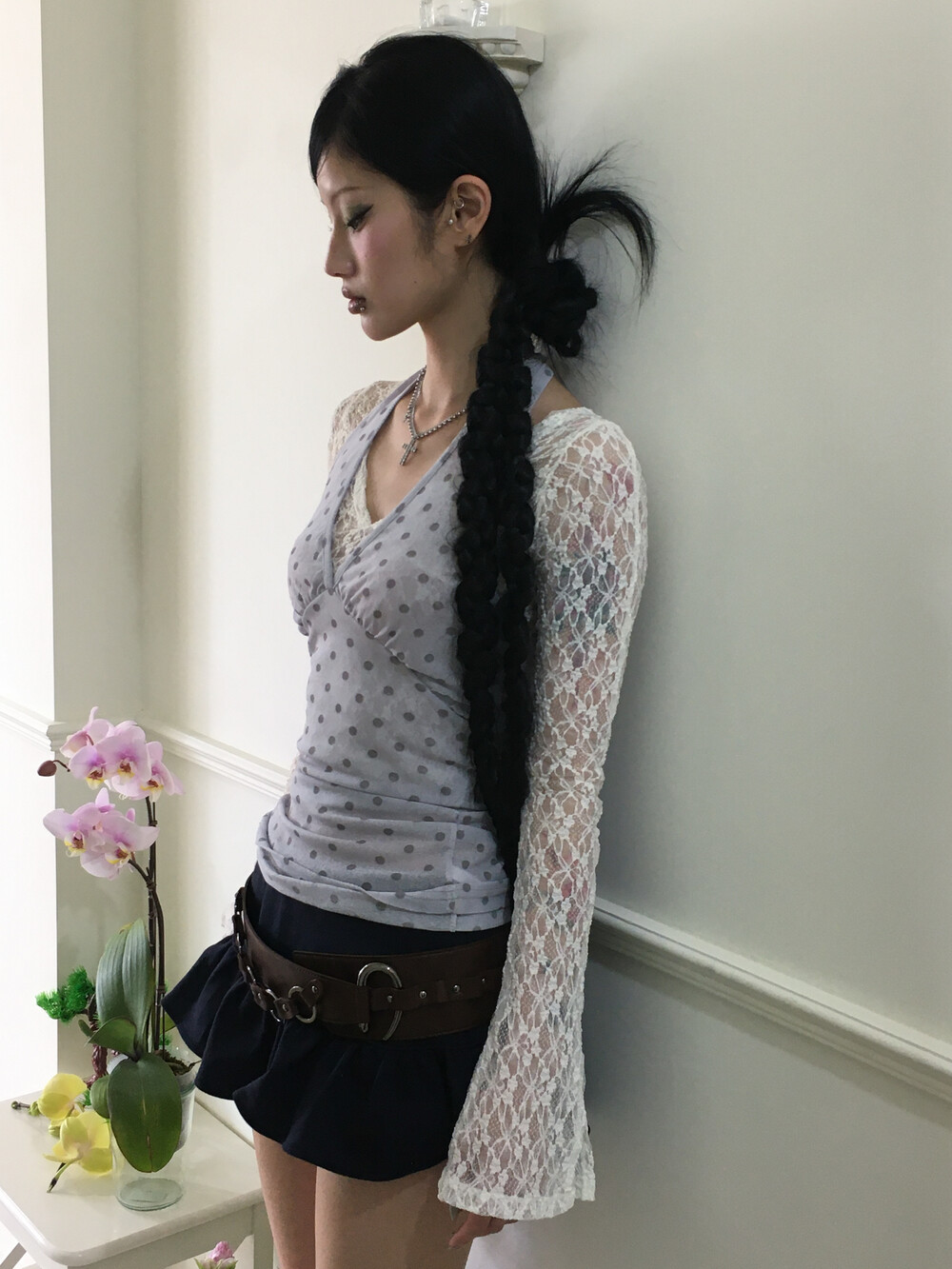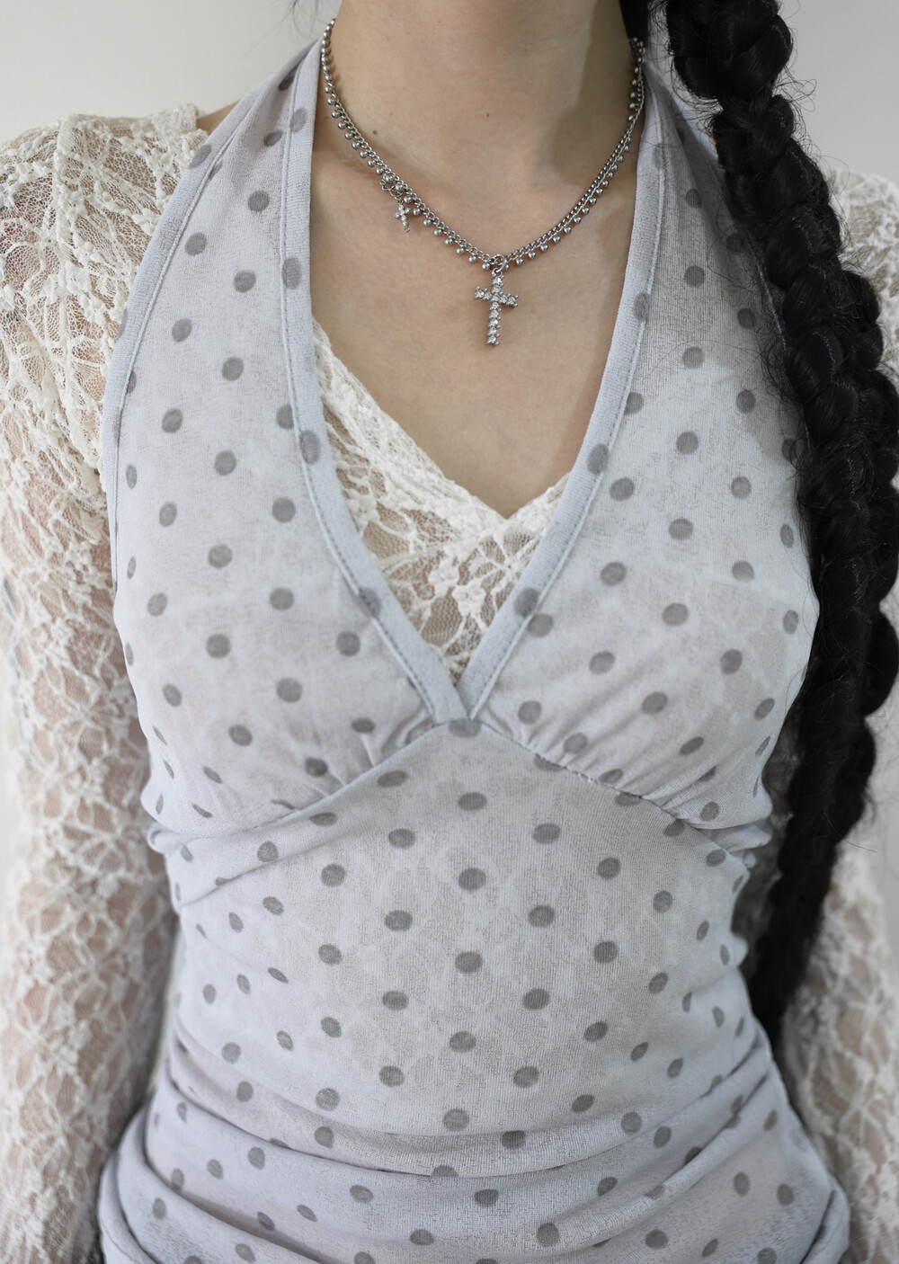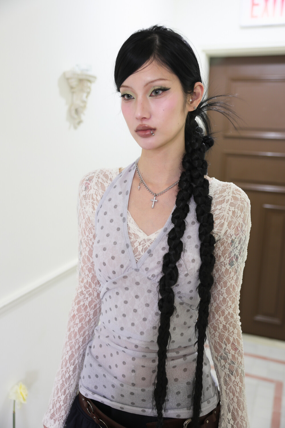 [Pink orchid house] Dot halter top (2color) (Light purple)