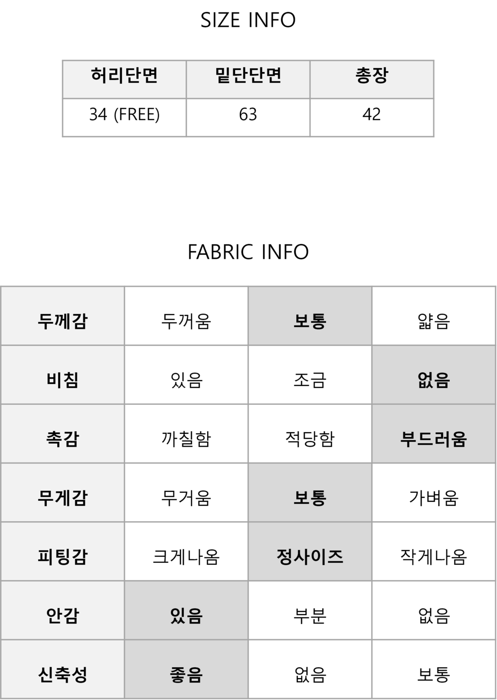 텐션감이 좋고 착용감이 편한 스커트입니다.