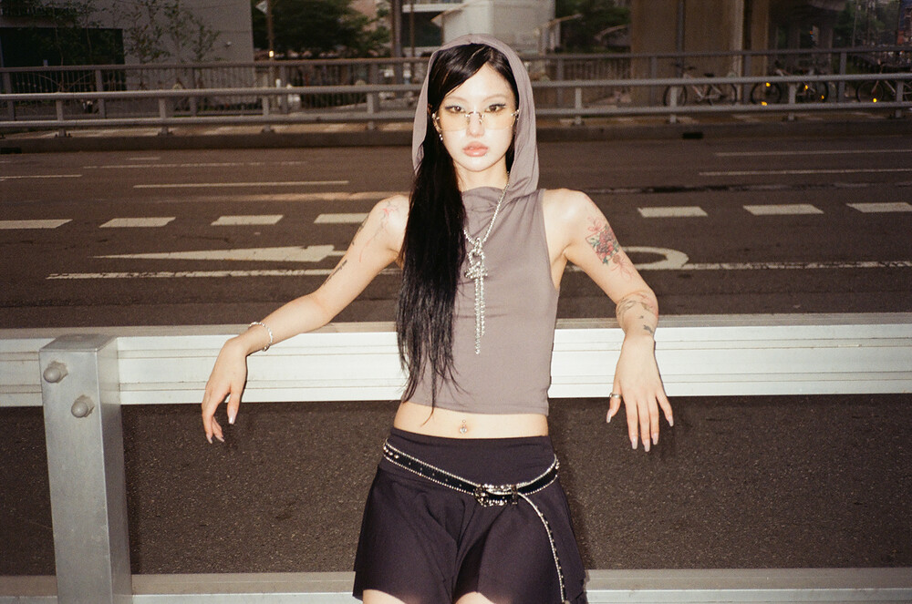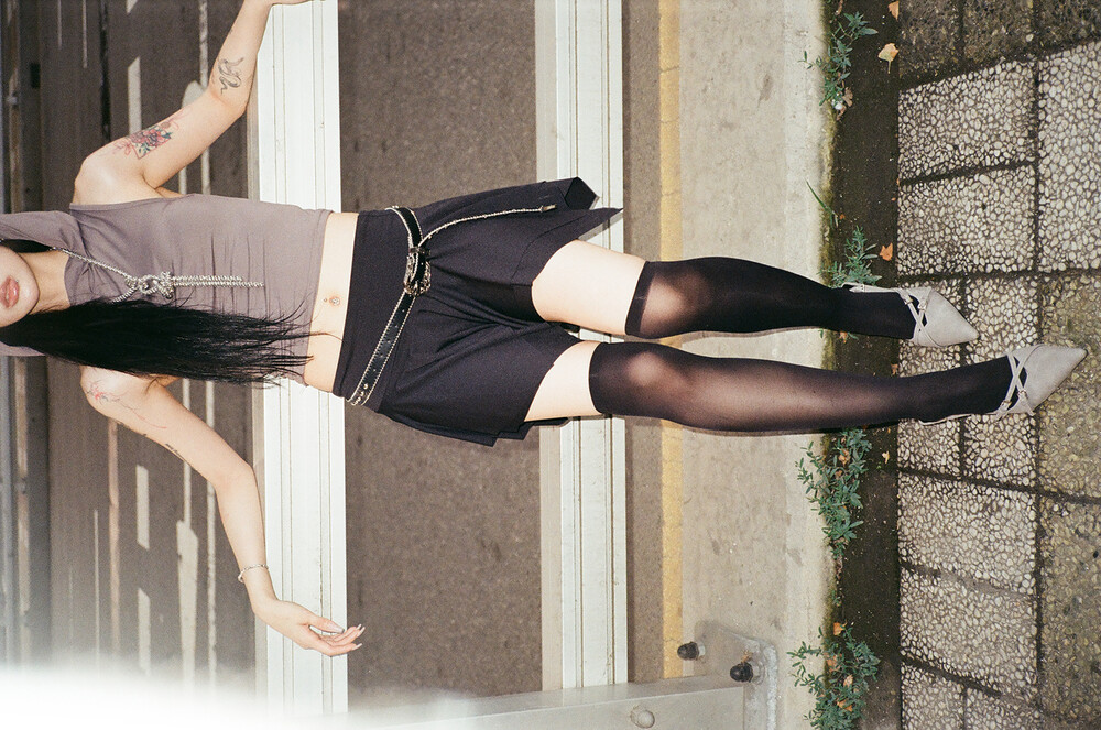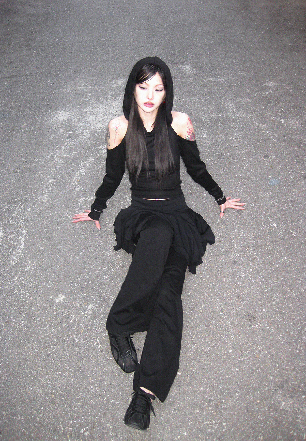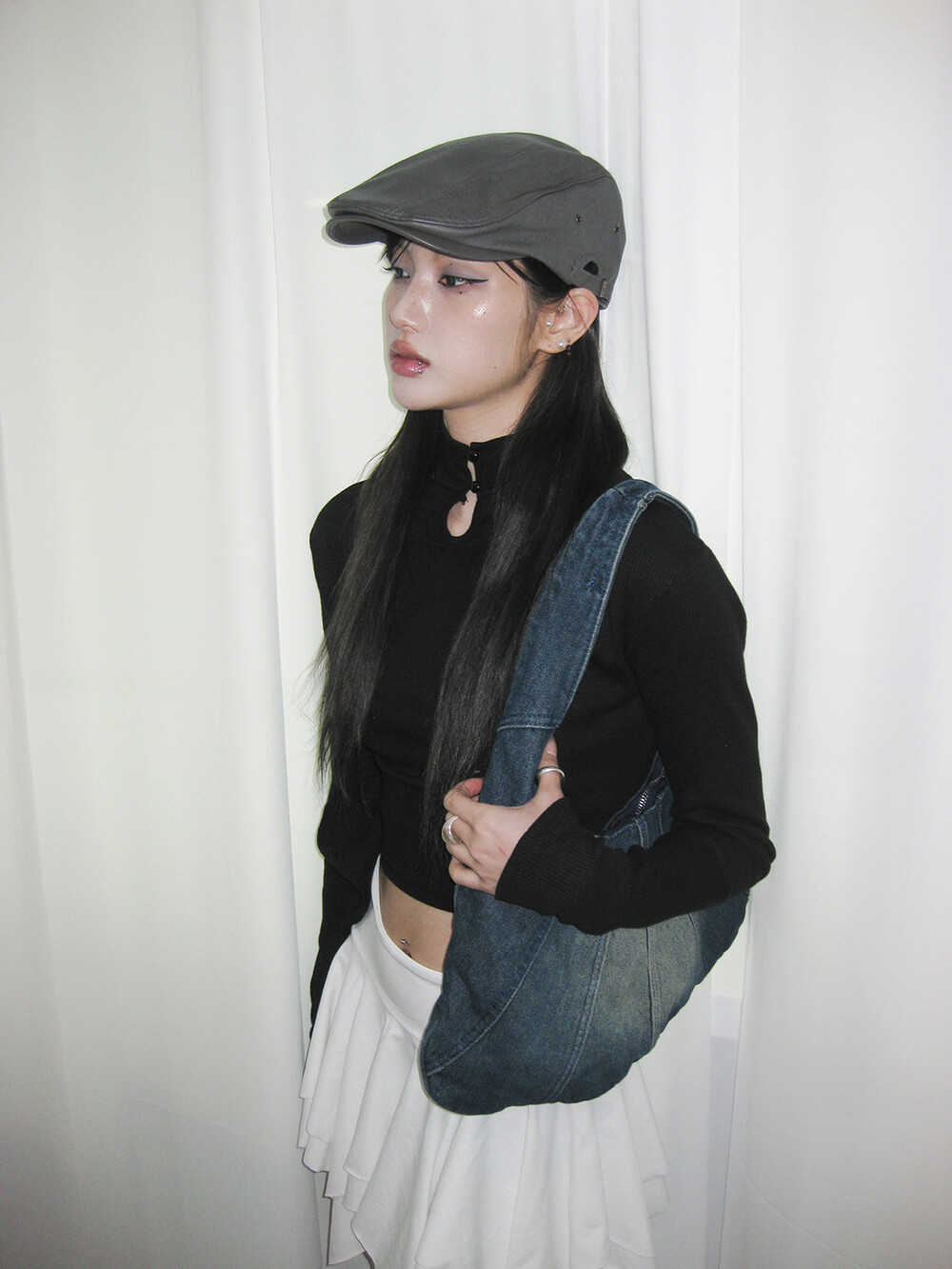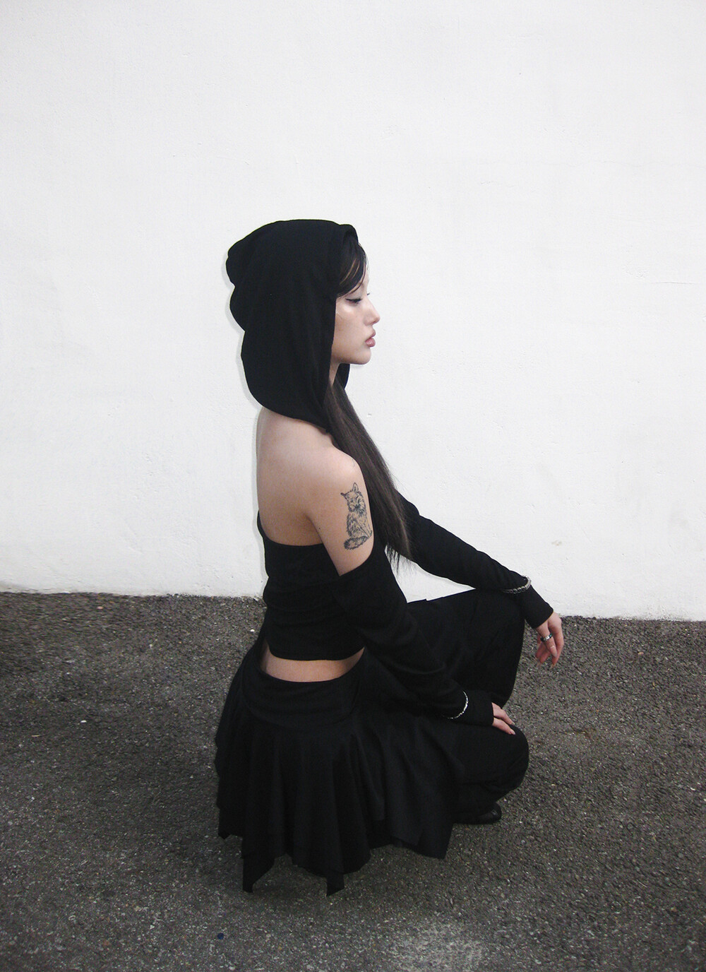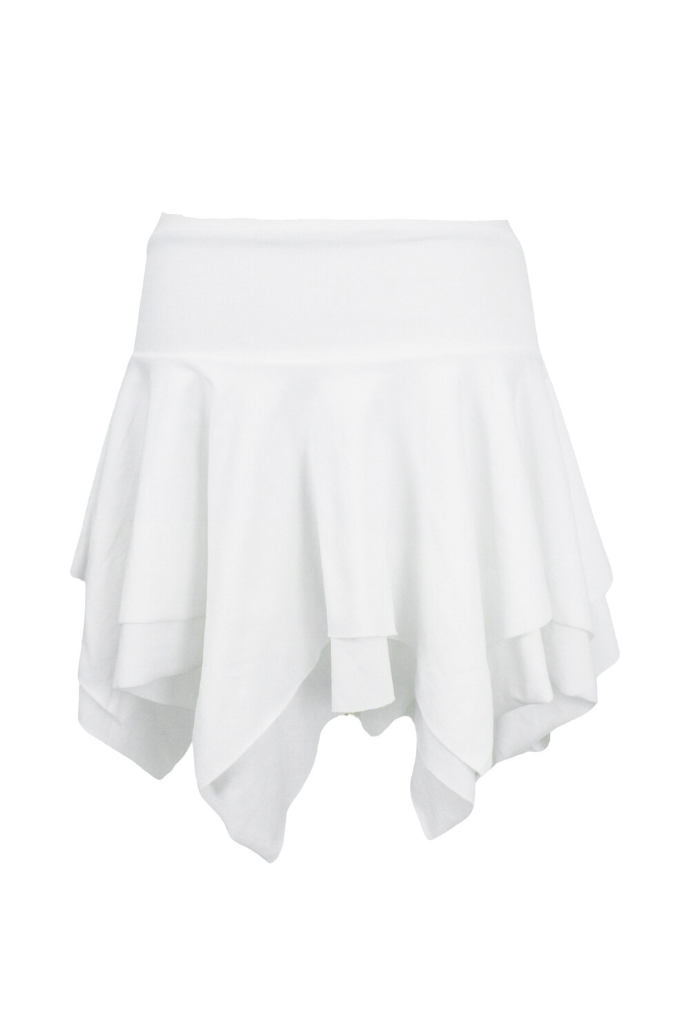 2겹의 원단이 언발 느낌으로 겹쳐진 디자인의 로우 라이즈 스커트입니다.