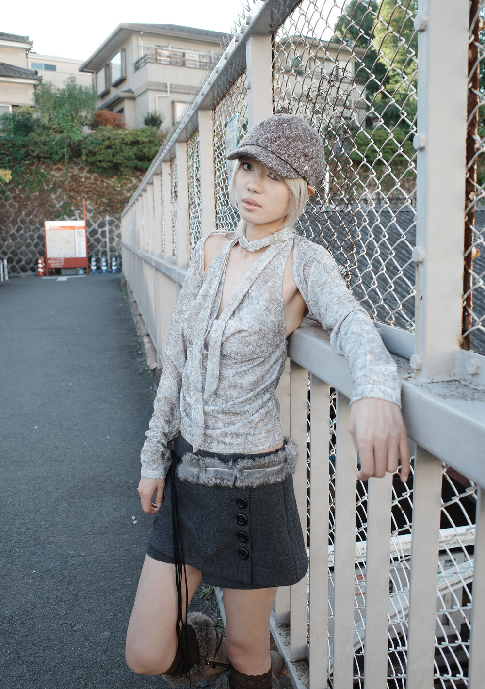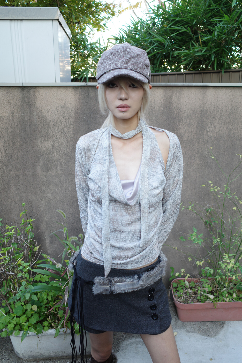 [ID] Distressed Halter Top & Bolero Set (Silver gray)