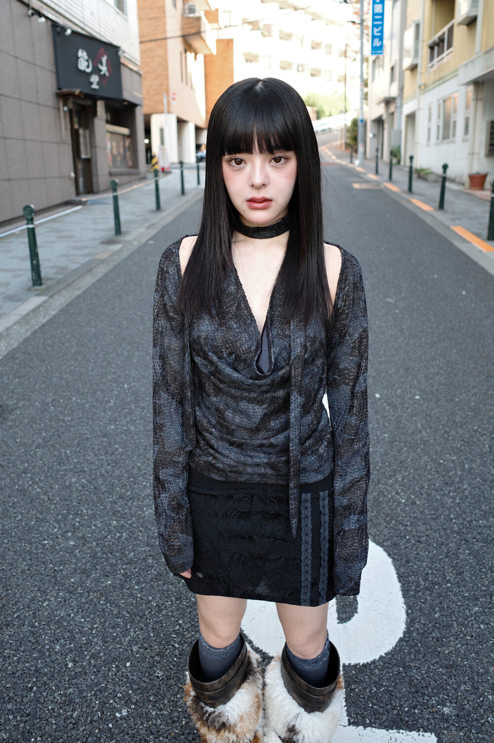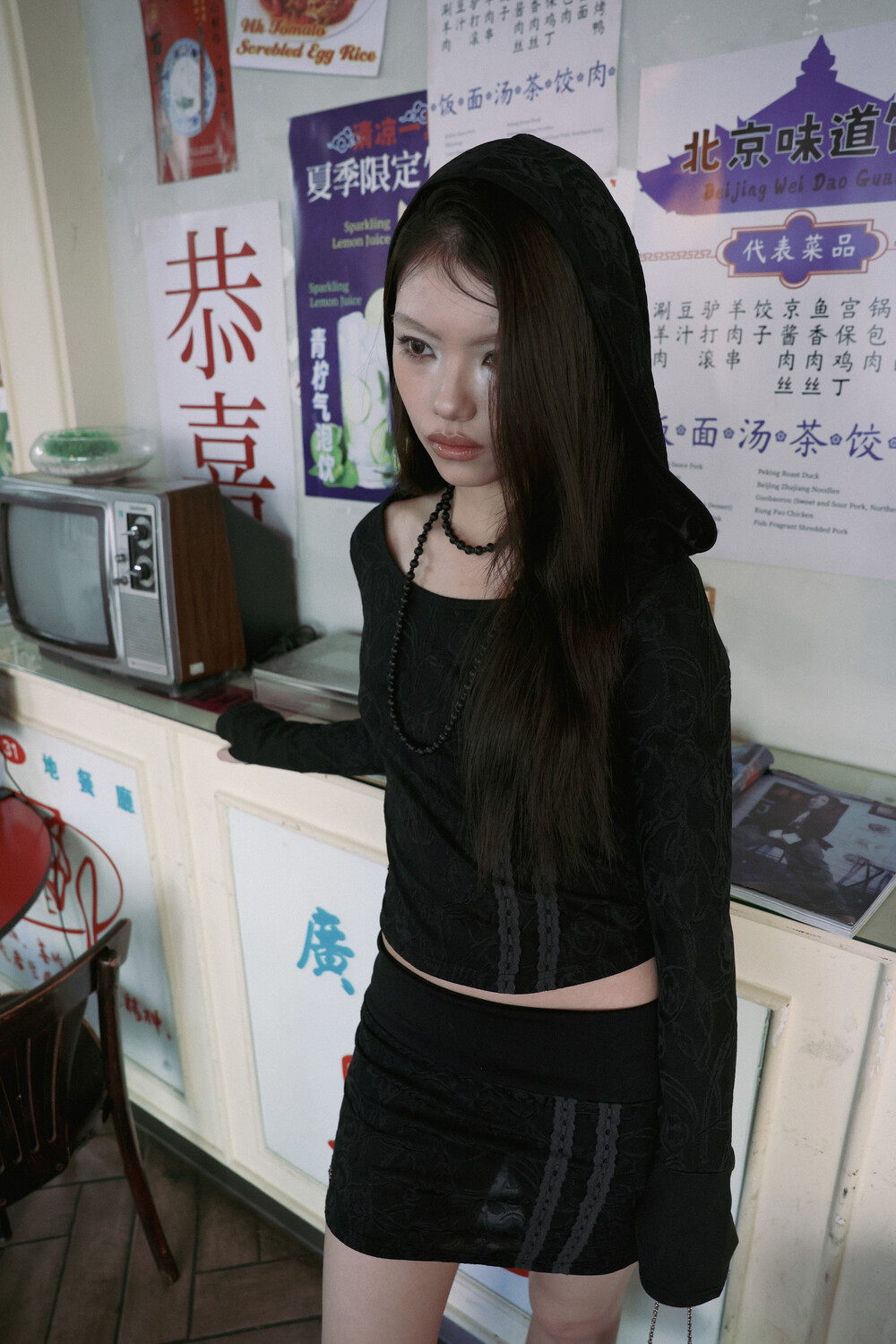 [ID] Floral Jacquard Set-up (Skirt) (Black)