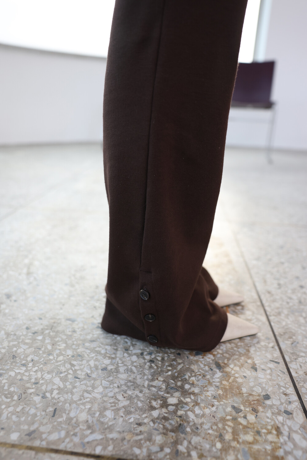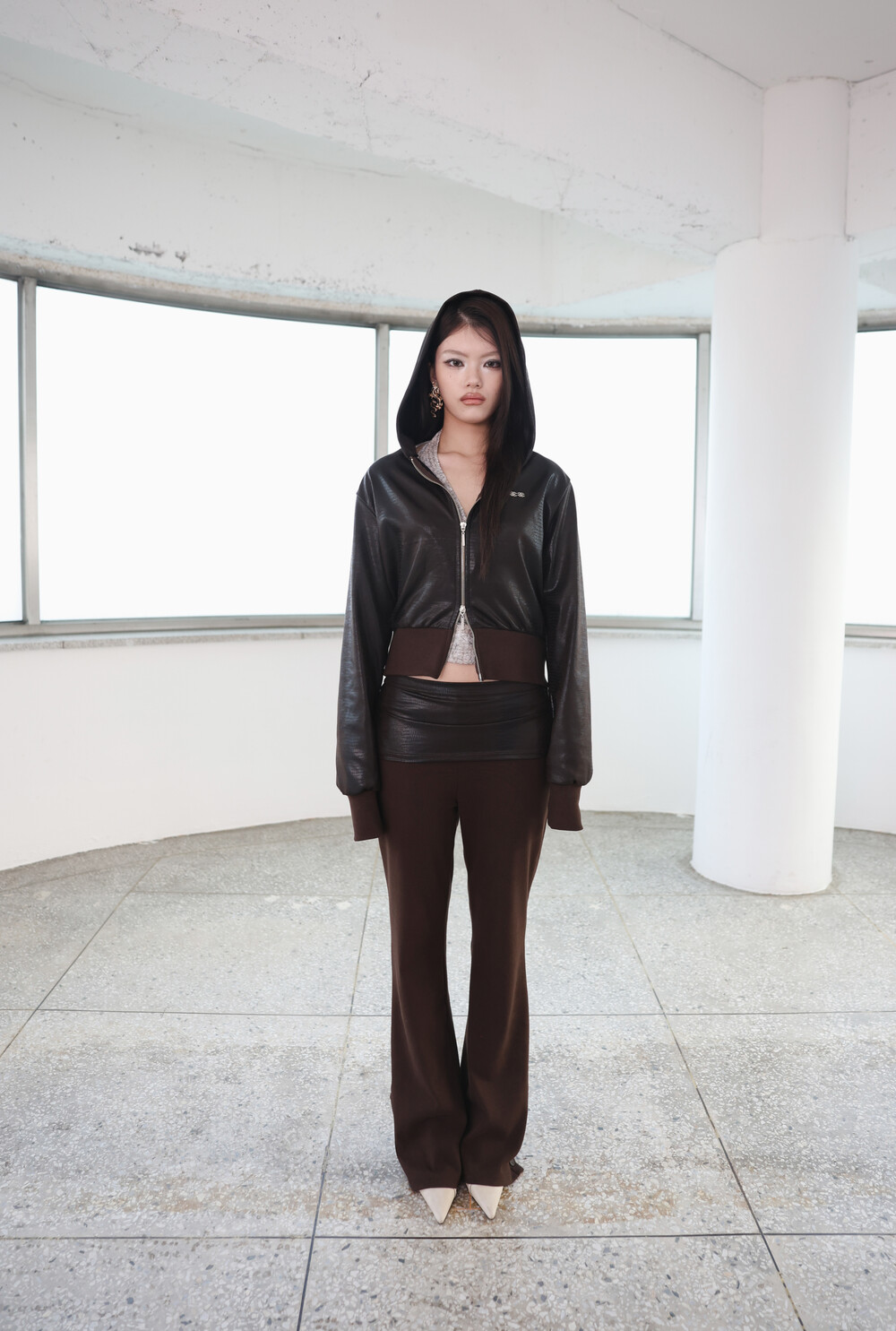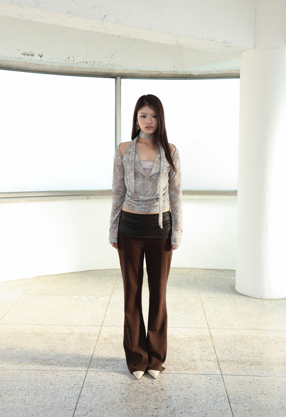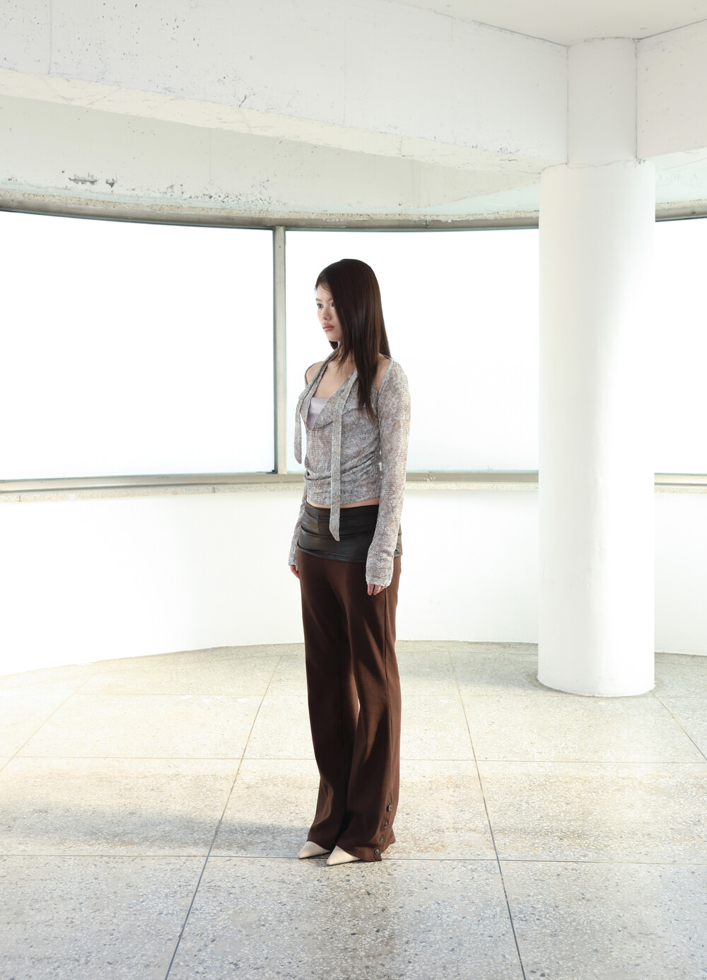 자연스럽게 흐르는 실루엣이 다리 라인을 길고 슬림하게 연출해줍니다.