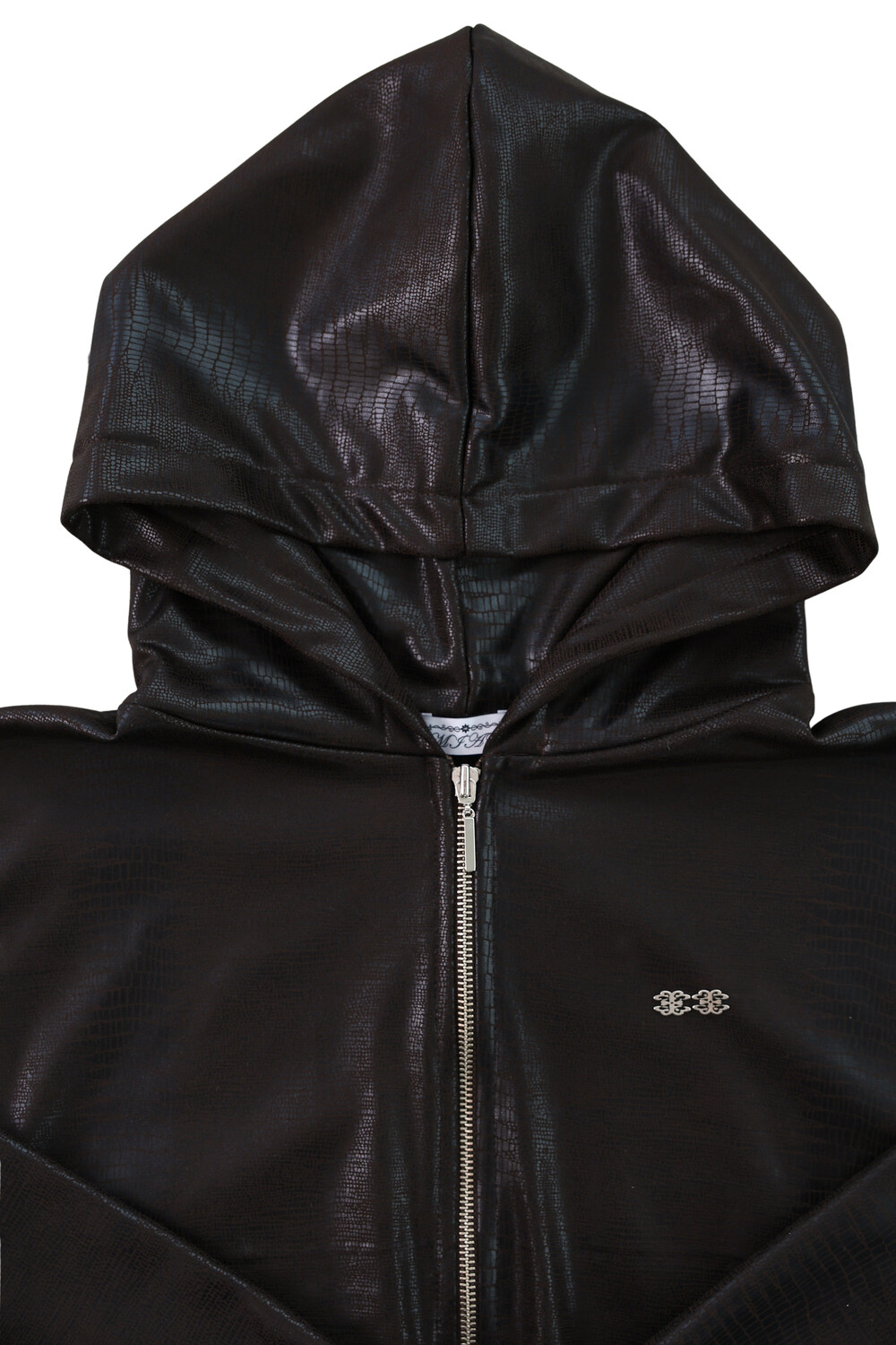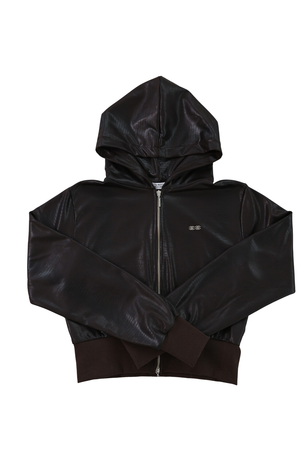 은은한 광택감이 감도는 레더 텍스처로 유니크하면서도 절제된 미감을 지닌 후드 집업입니다.