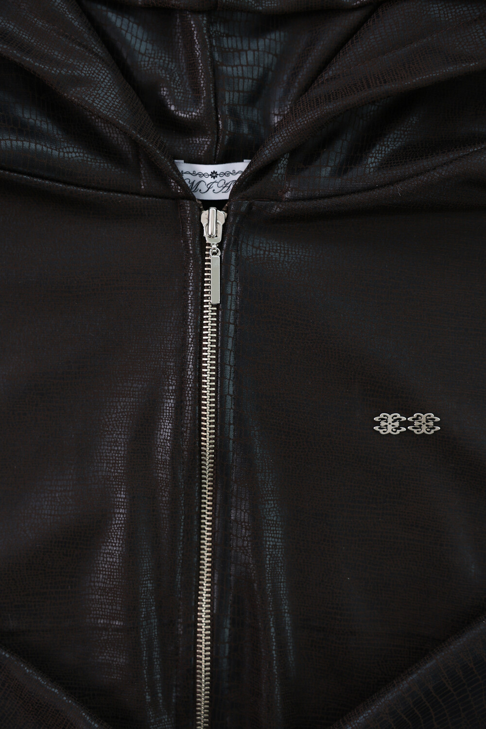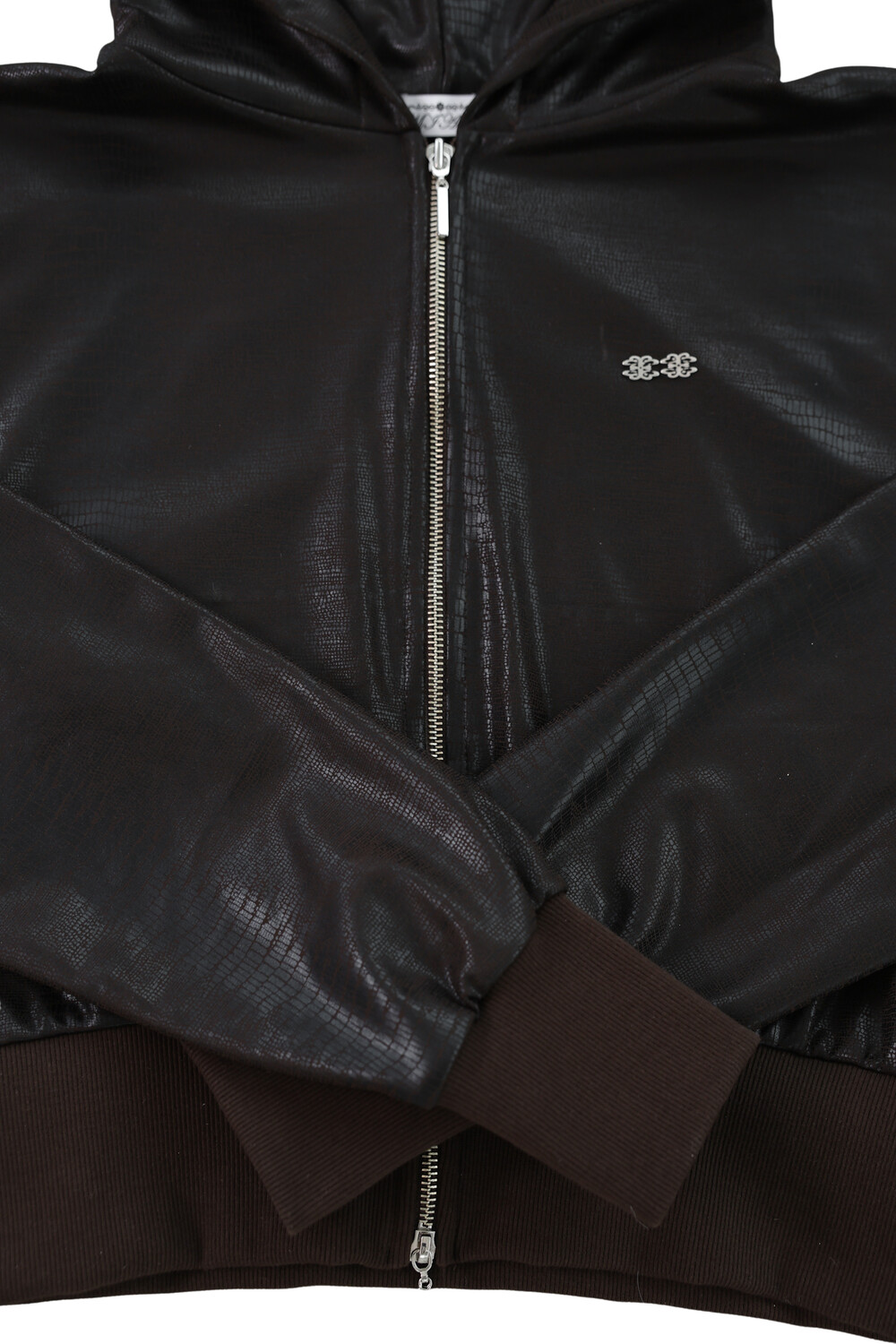 [ID] 2way Leather Logo Hood Zip-Up (Brown)