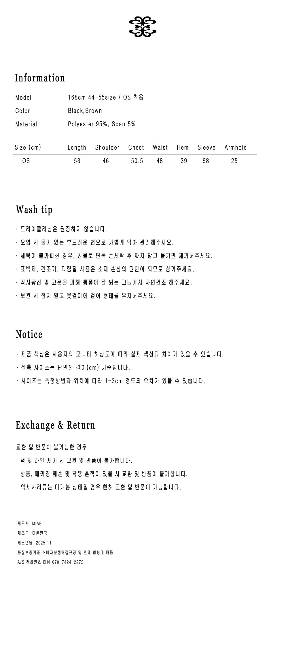 팬츠와 세트 상품으로 착용 시 더욱 완성도 있는 스타일을 연출할 수 있습니다.